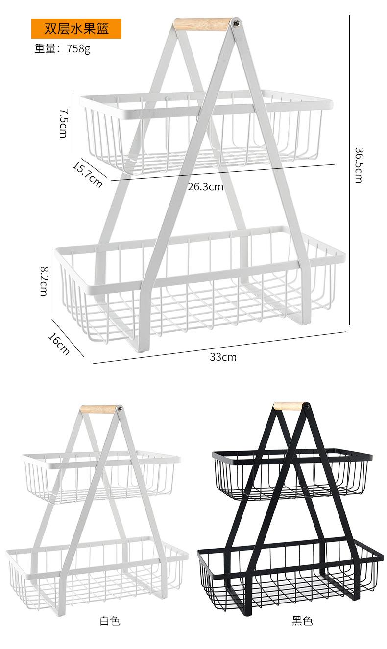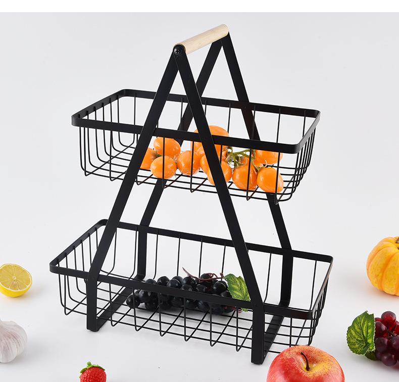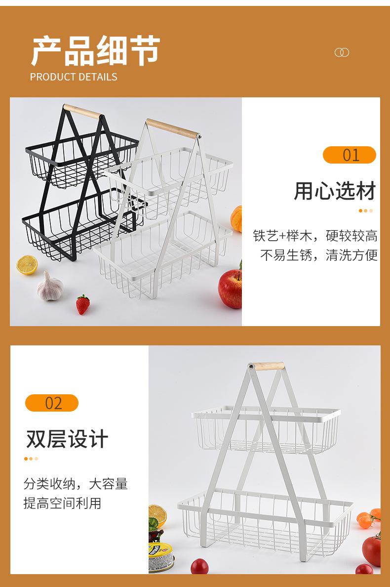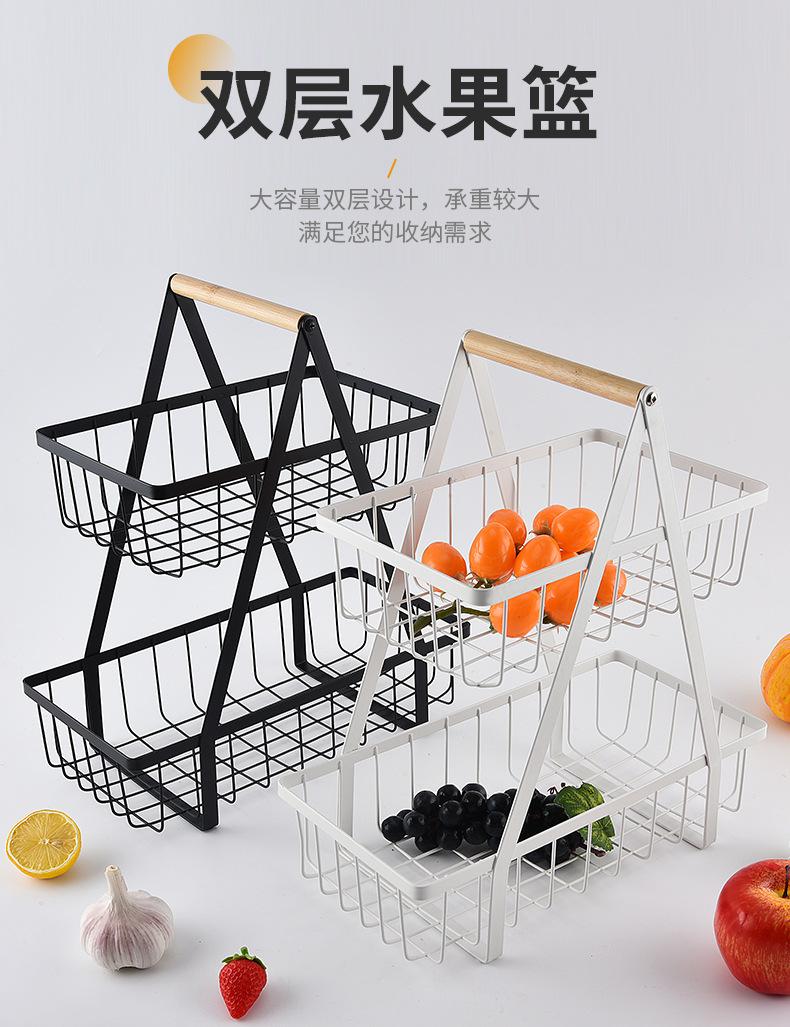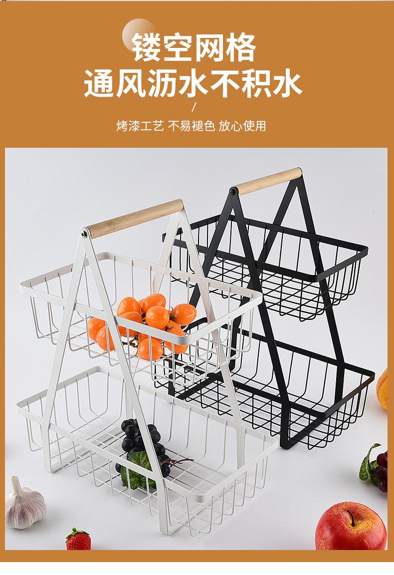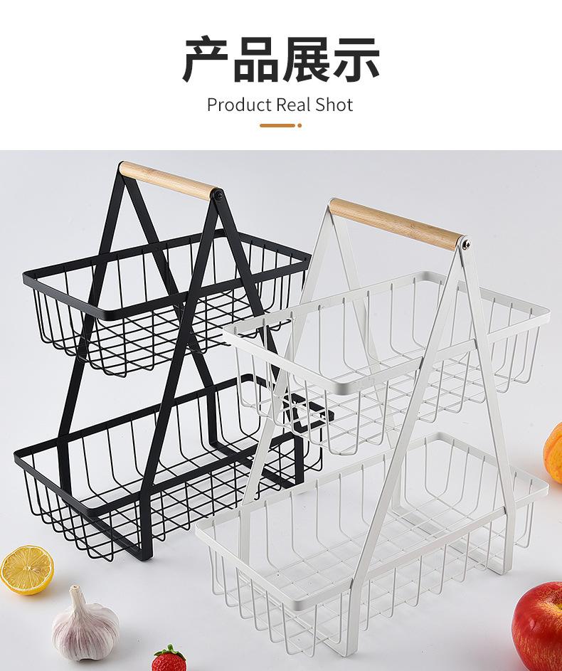 Cesta de Frutas Desmontable de Montaje Transfronterizo Almacenamiento de Doble Capa Cesta con Mango de Madera Estante de Almacenamiento Cesta de Almacenamiento para Cocina Sala de Estar