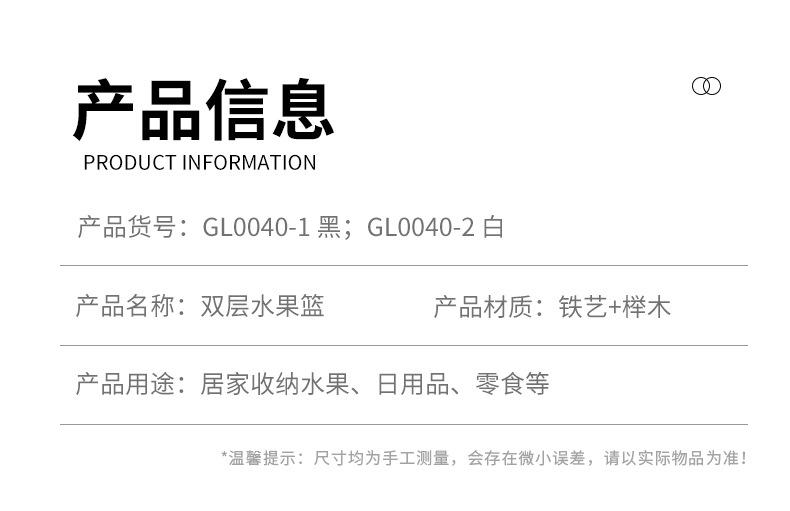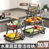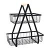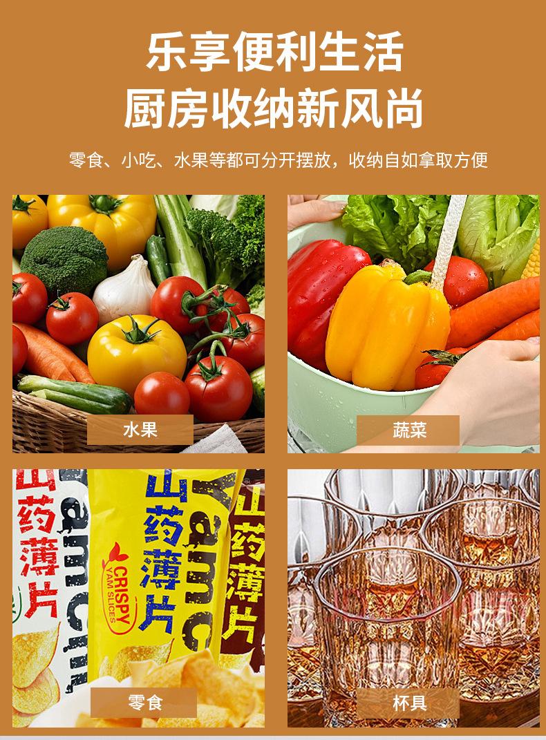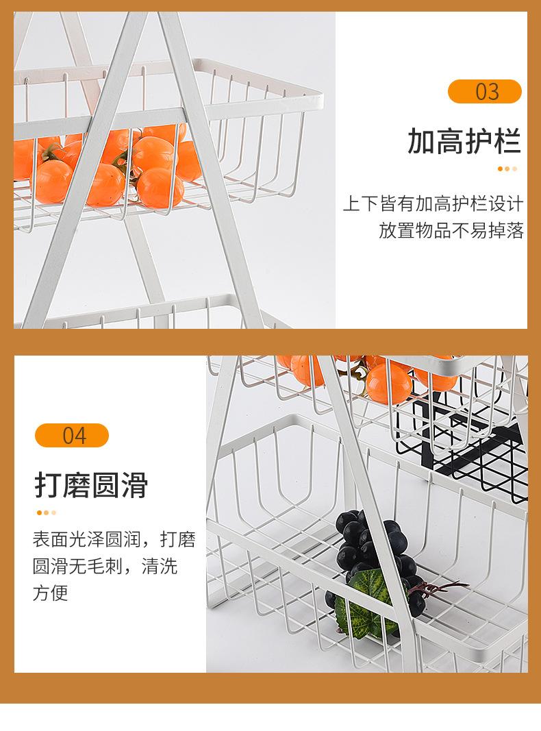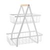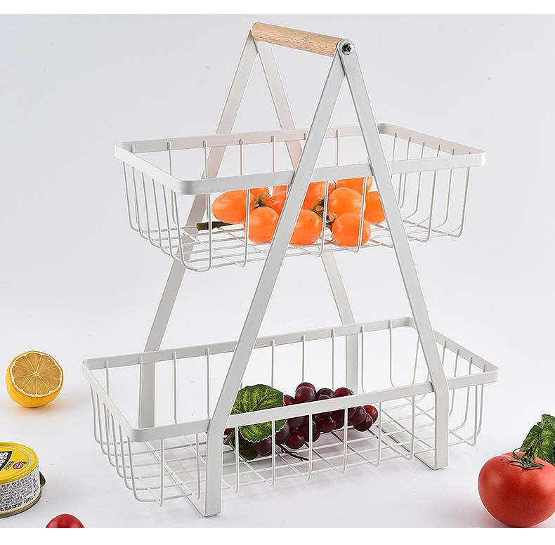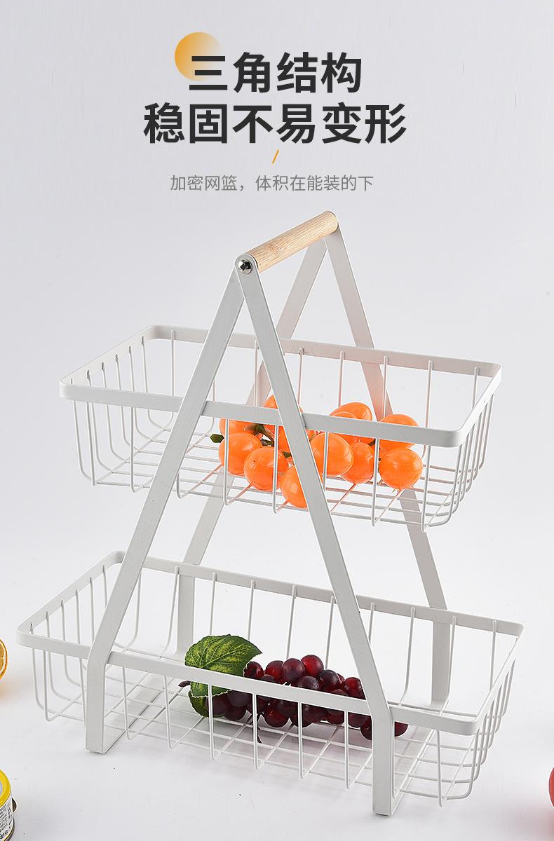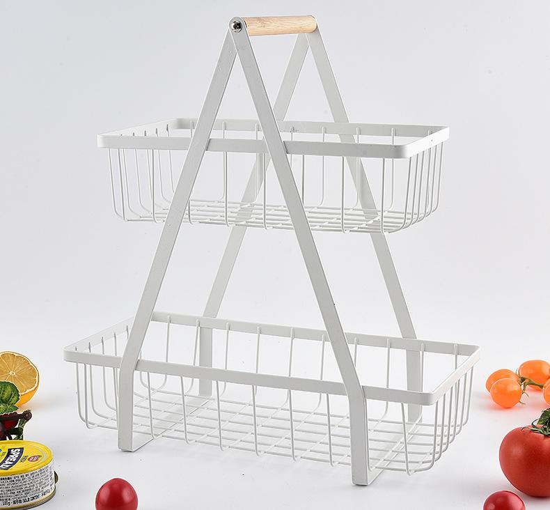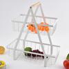 Cesta de Frutas Desmontable de Montaje Transfronterizo Almacenamiento de Doble Capa Cesta con Mango de Madera Estante de Almacenamiento Cesta de Almacenamiento para Cocina Sala de Estar