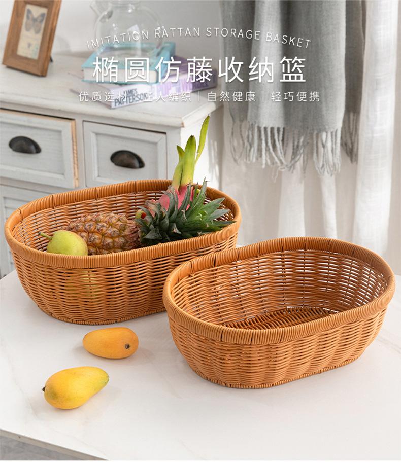 Cesta de Almacenamiento Doméstico para Sala de Estar de Imitación Ratán Estilo Nórdico Frutero Cesta de Frutas para Snacks Grande Cesta de Drenaje de Cocina Almacenamiento