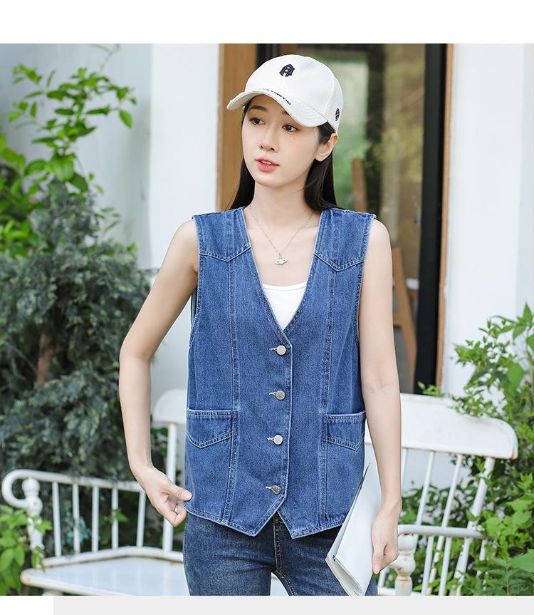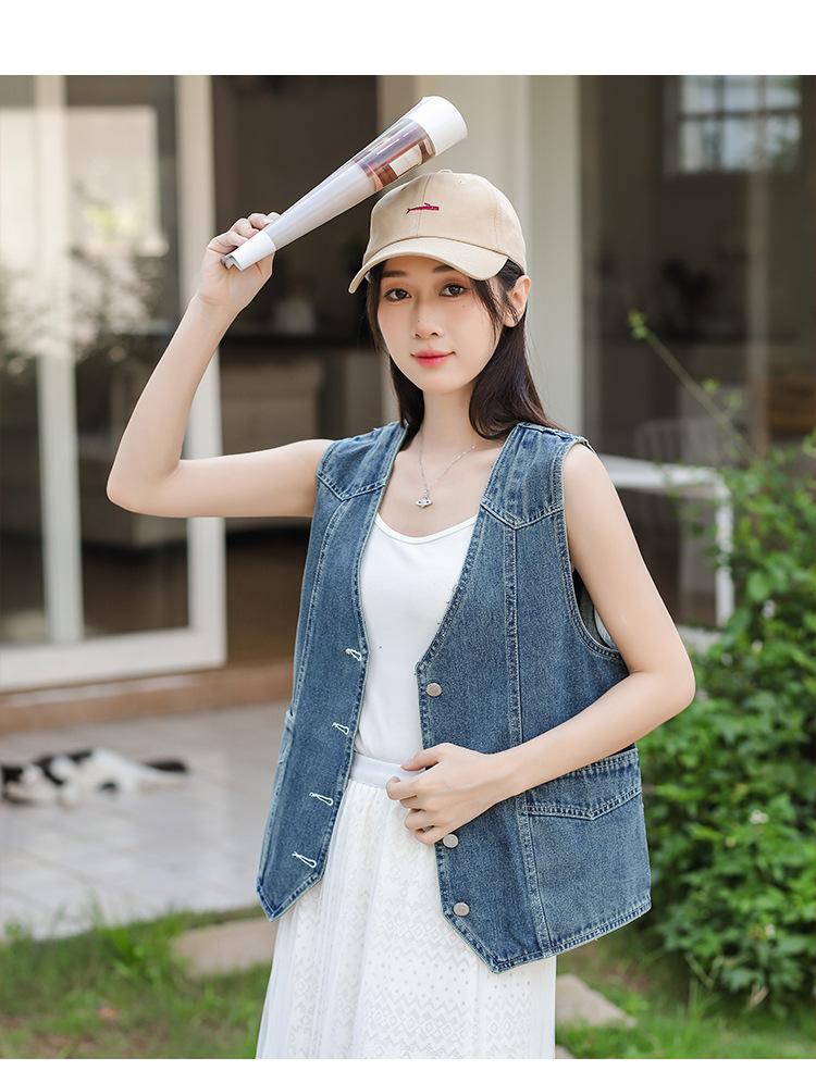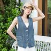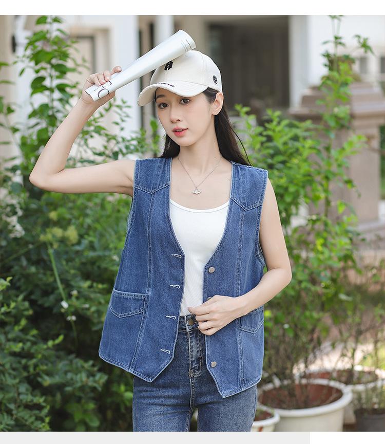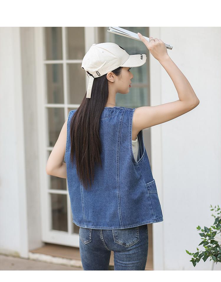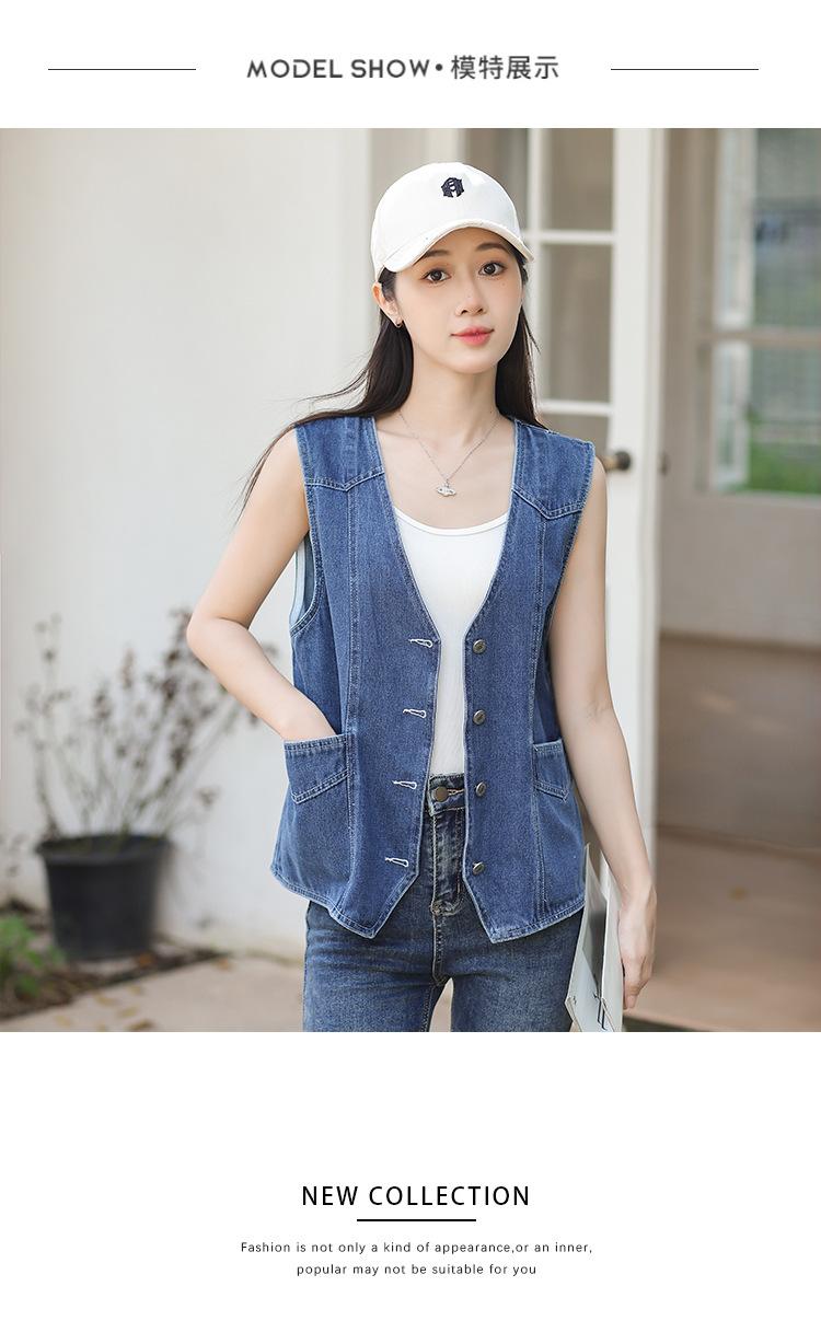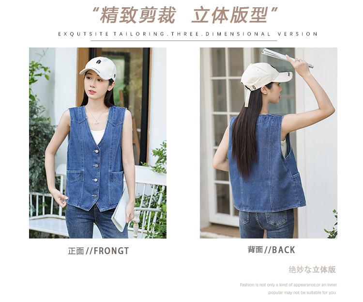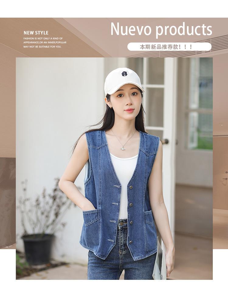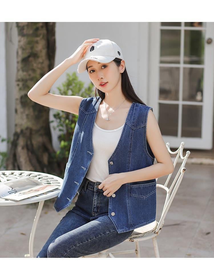 Chaleco de mezclilla para mujer estilo corto primavera y verano nuevo adelgazante simple delgado versátil sin mangas chaqueta cárdigan chaleco top marea