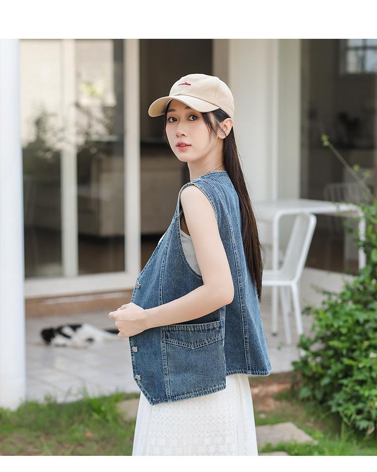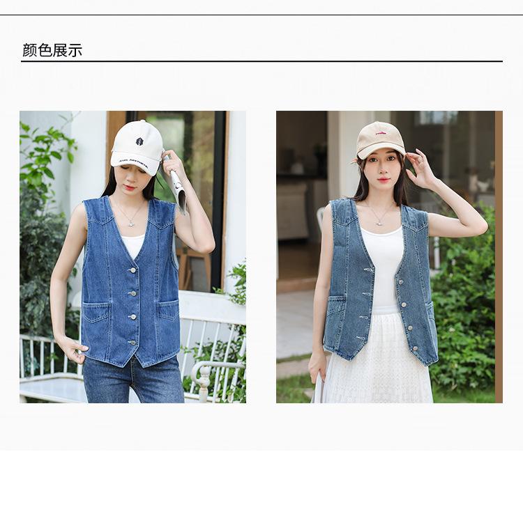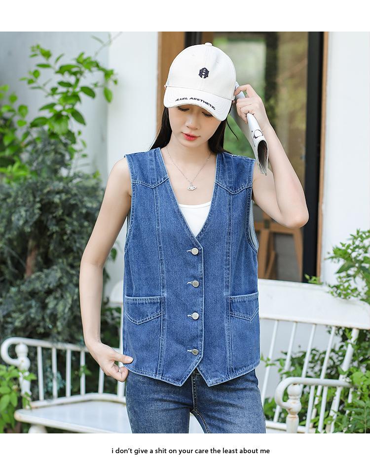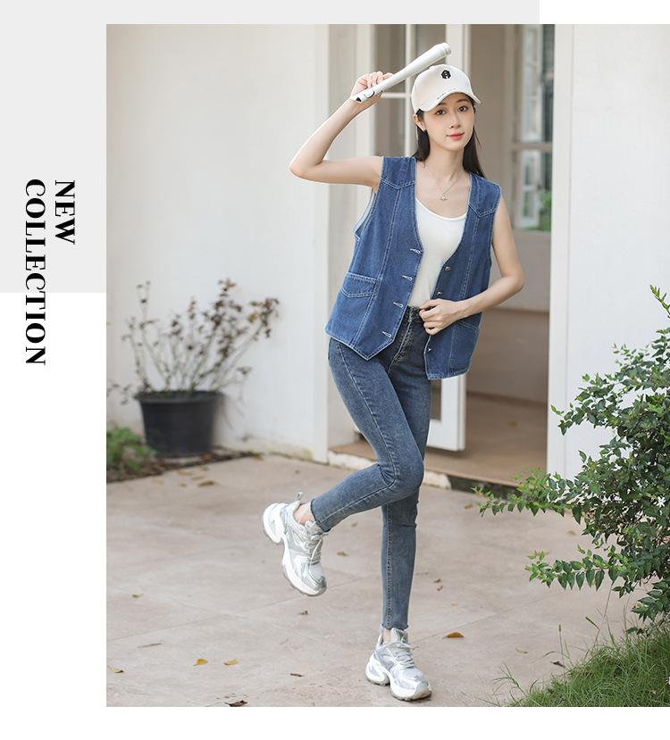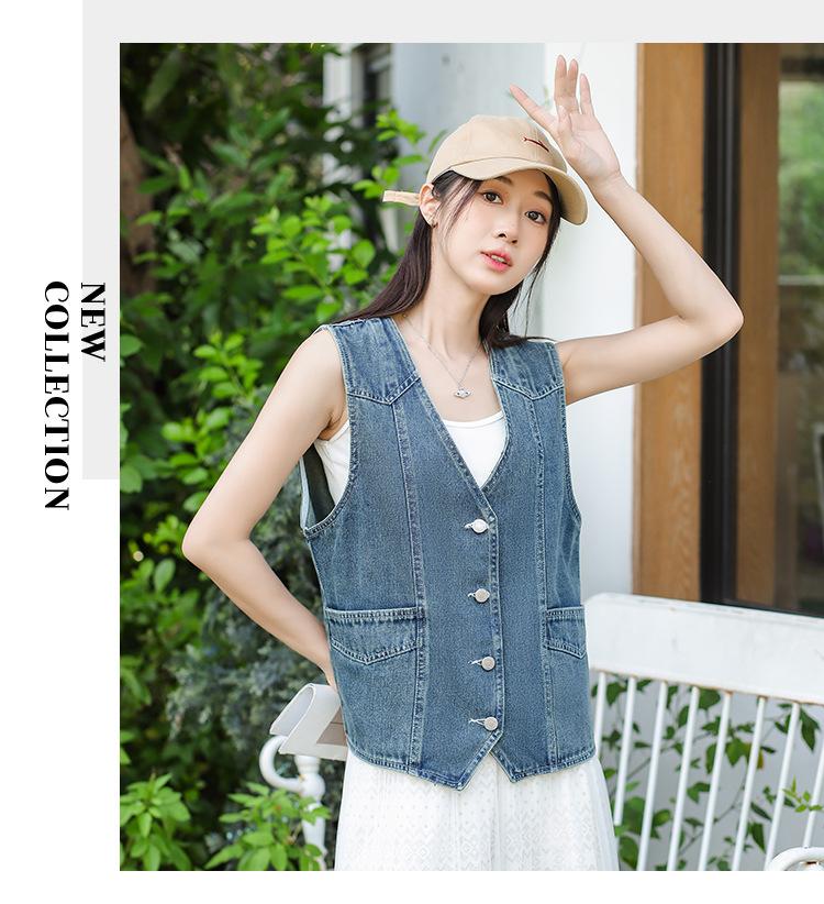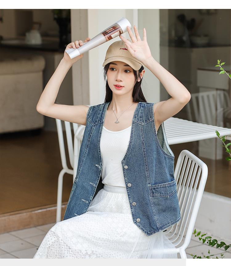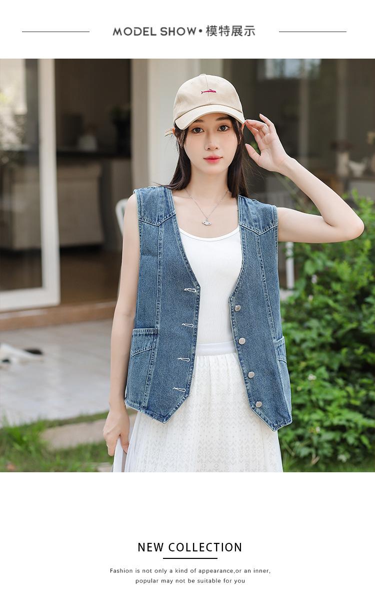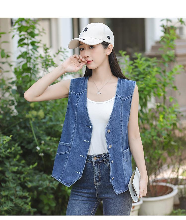 Chaleco de mezclilla para mujer estilo corto primavera y verano nuevo adelgazante simple delgado versátil sin mangas chaqueta cárdigan chaleco top marea