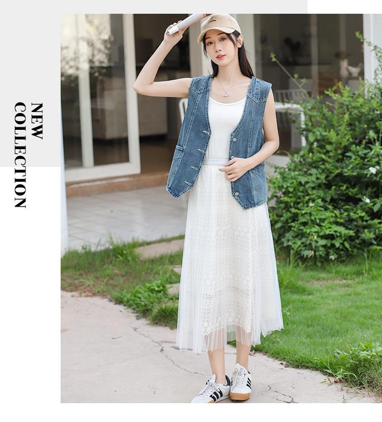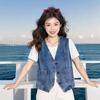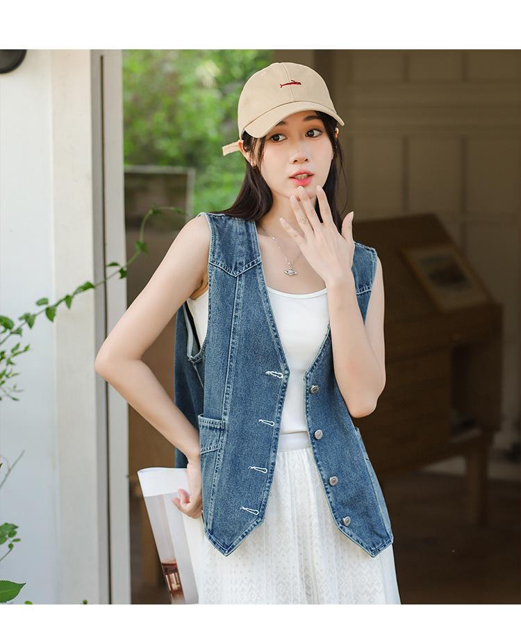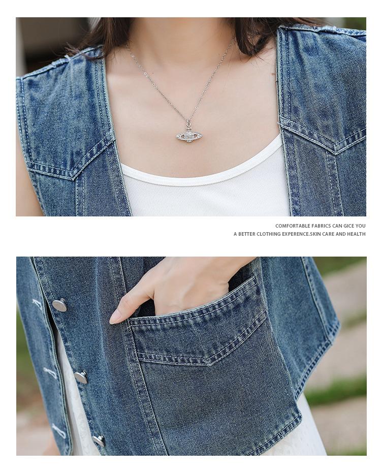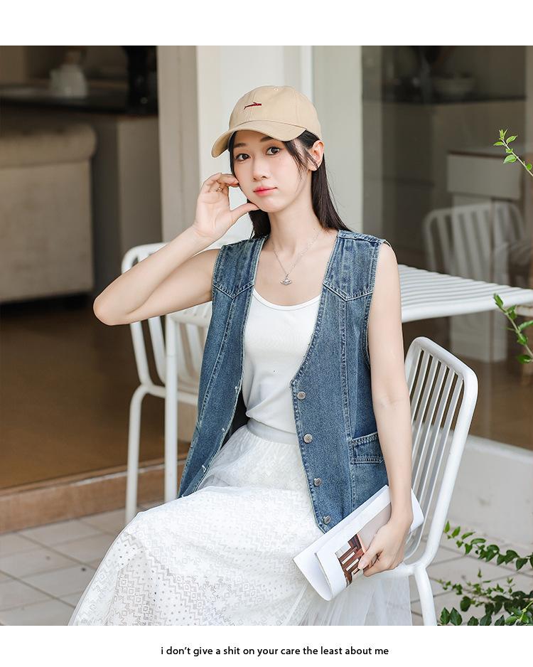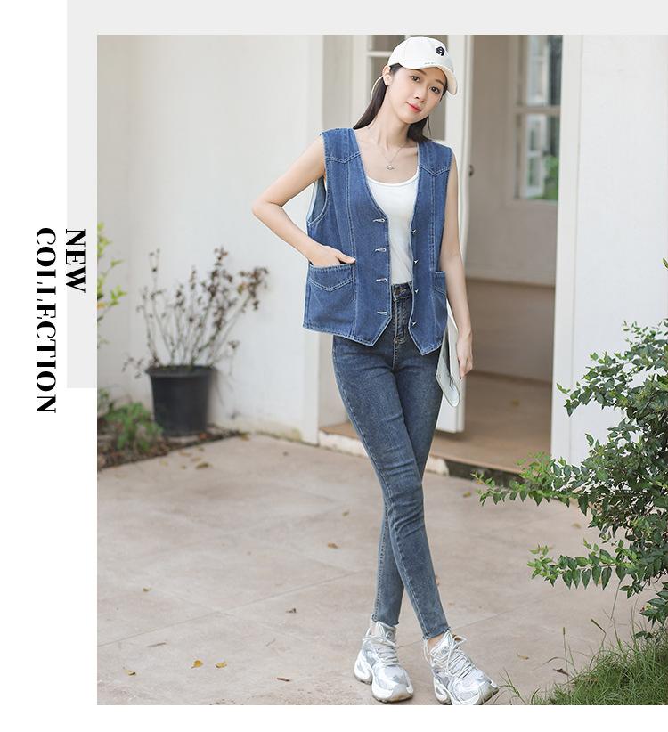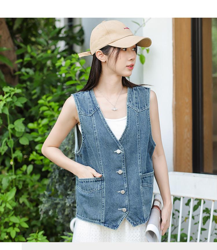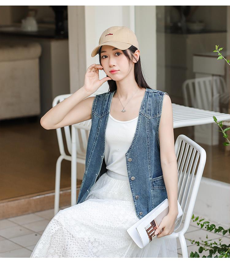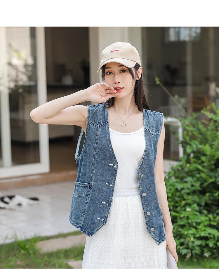 Chaleco de mezclilla para mujer estilo corto primavera y verano nuevo adelgazante simple delgado versátil sin mangas chaqueta cárdigan chaleco top marea