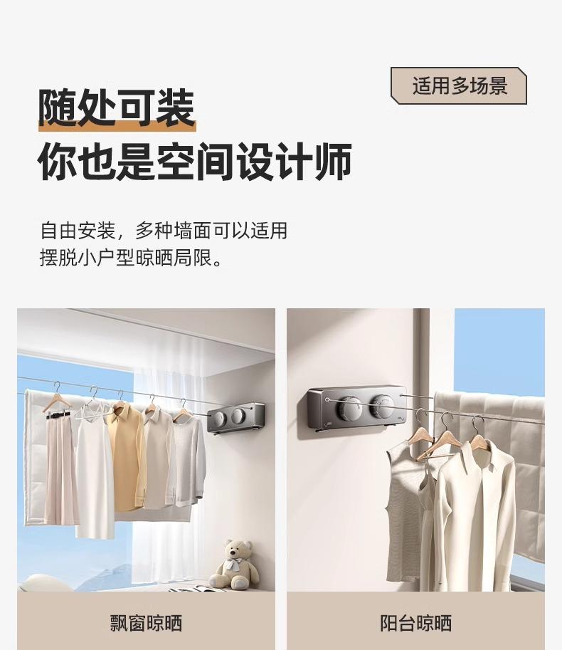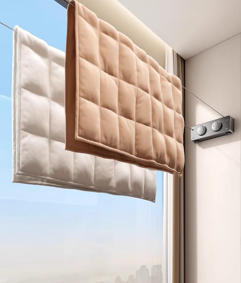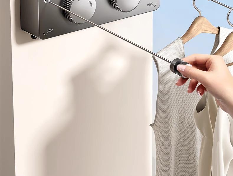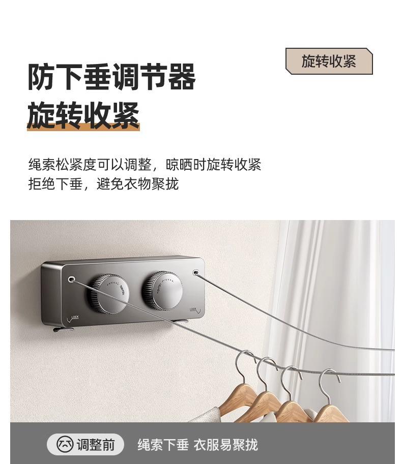 Tendedero retráctil invisible de doble cuerda, tendedero de pared para baño, tendedero para sala de estar, balcón, alambre de acero sin perforaciones