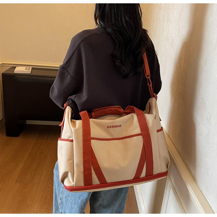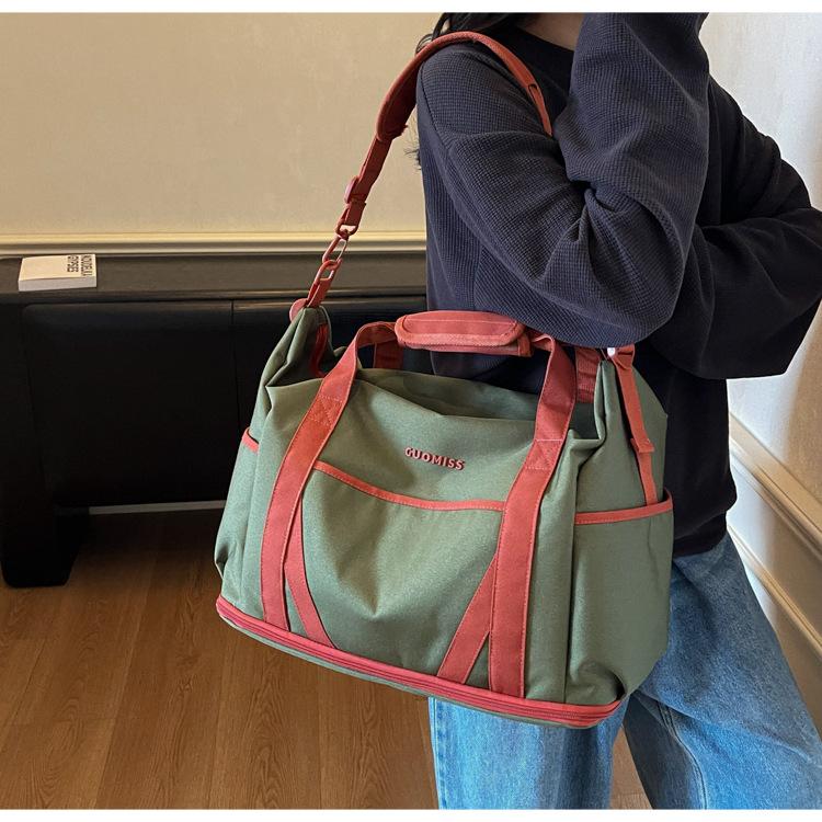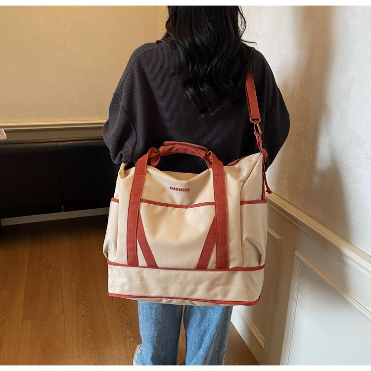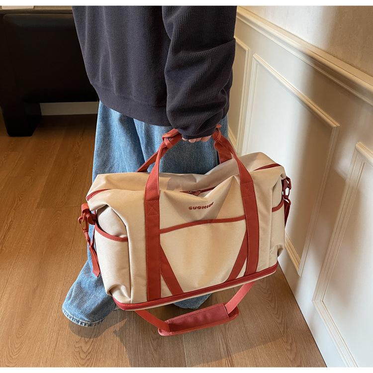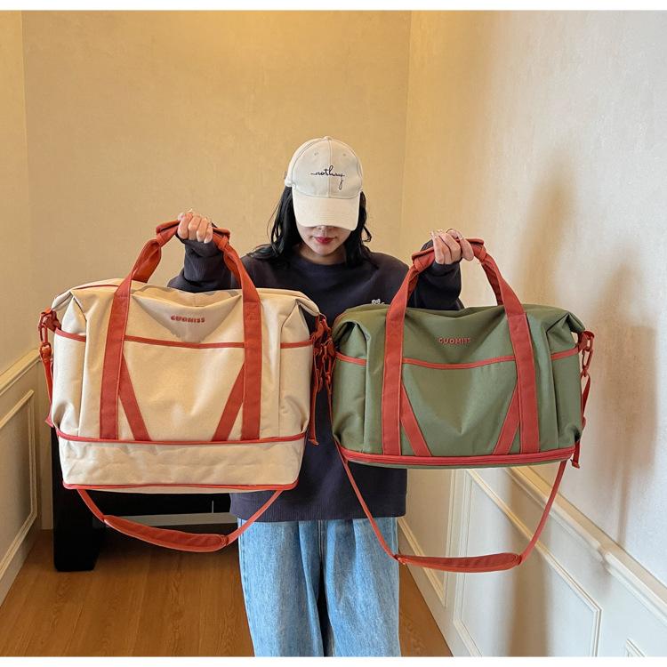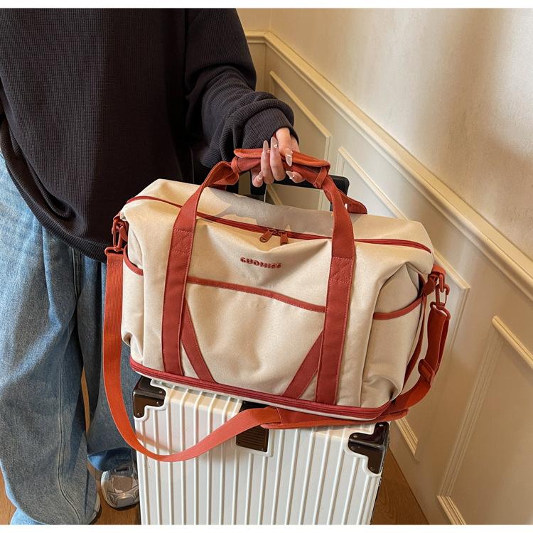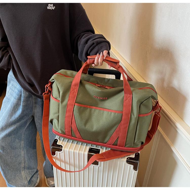 Bolso de mano de viaje de gran capacidad expandible con múltiples bolsillos transfronterizo, bolsa de viaje, separación húmedo y seco, bolsa de fitness, se puede poner en el trolley
