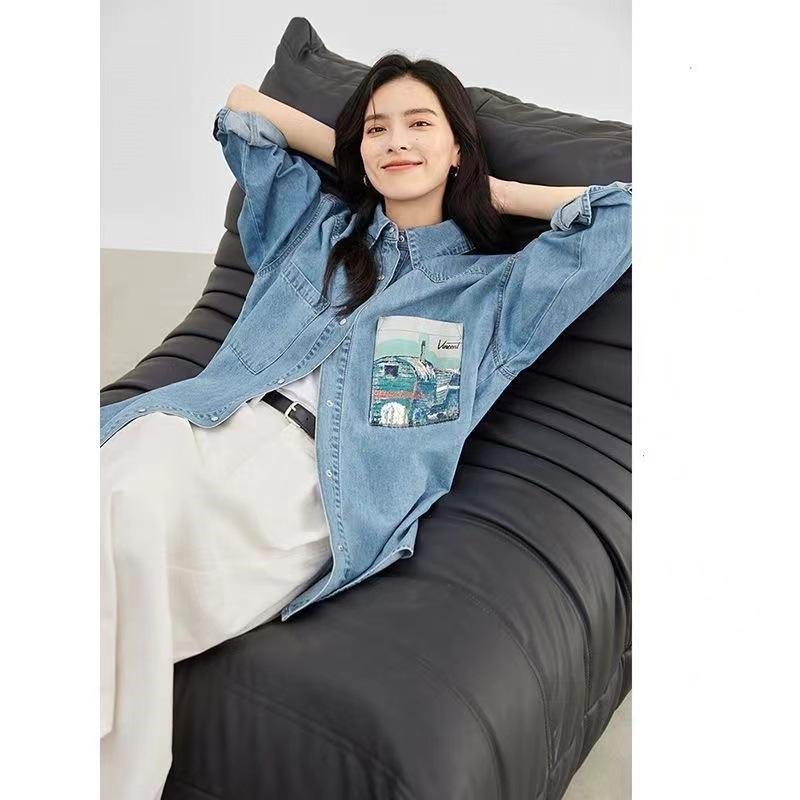 Camisa de mezclilla para mujer primavera y otoño nueva retro holgada casual versátil holgada adelgazante multitud pequeña camisa top tendencia