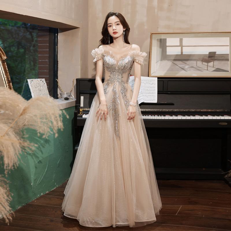 Vestido de Noche 2025 Otoño Nuevo Estilo Socialité de Cuento de Hadas Artesanía Pesada Temperamento de Anfitrión Vestido de Banquete para Mujeres