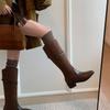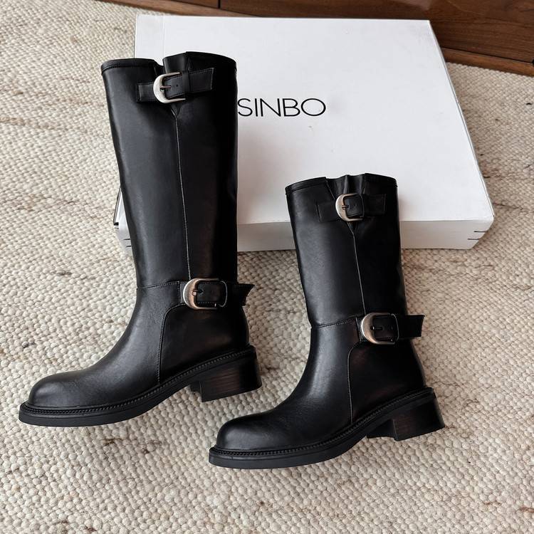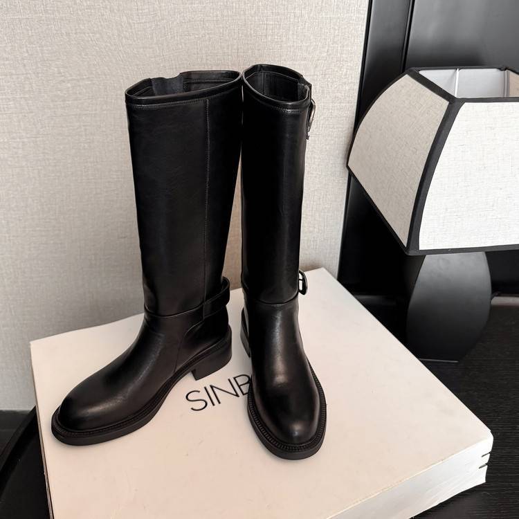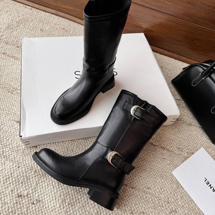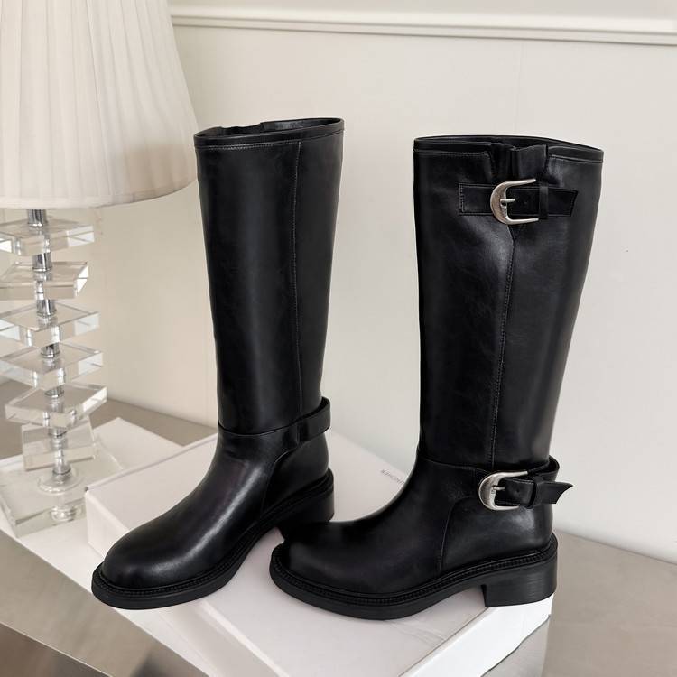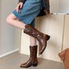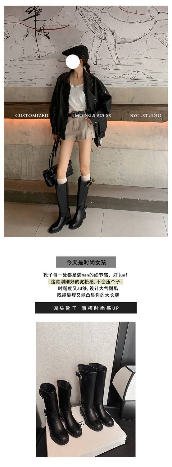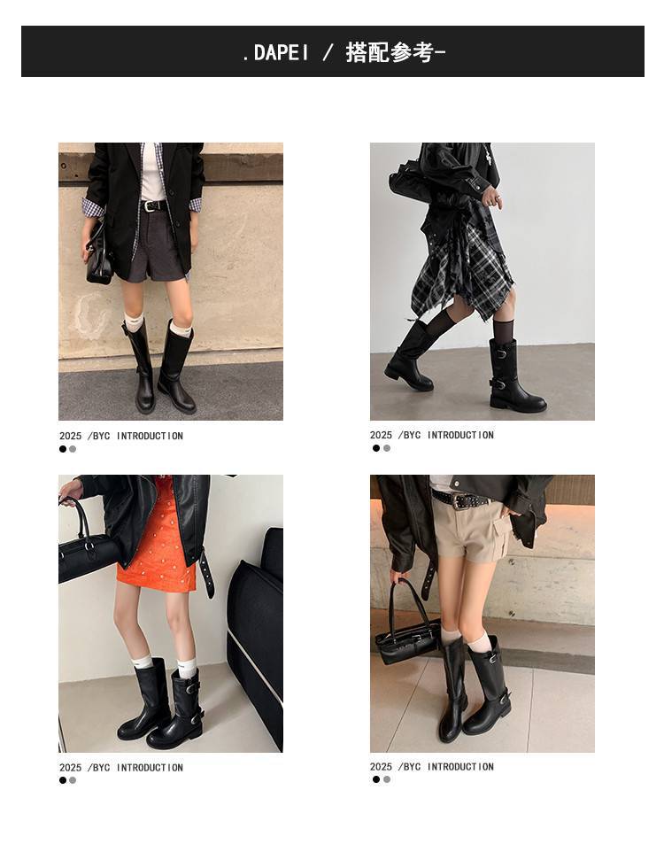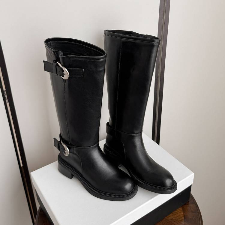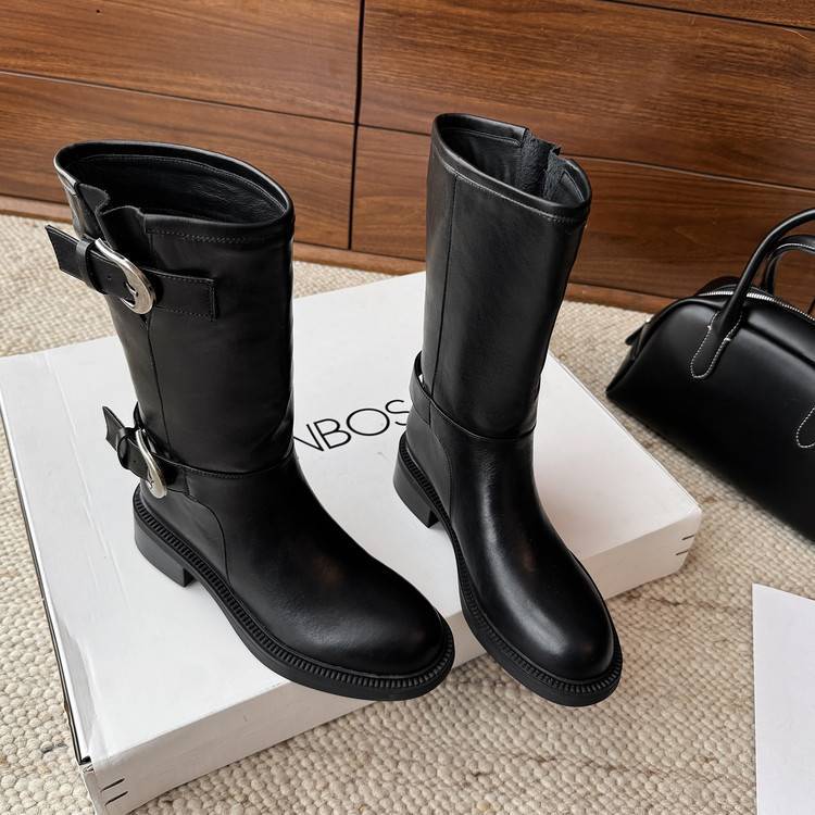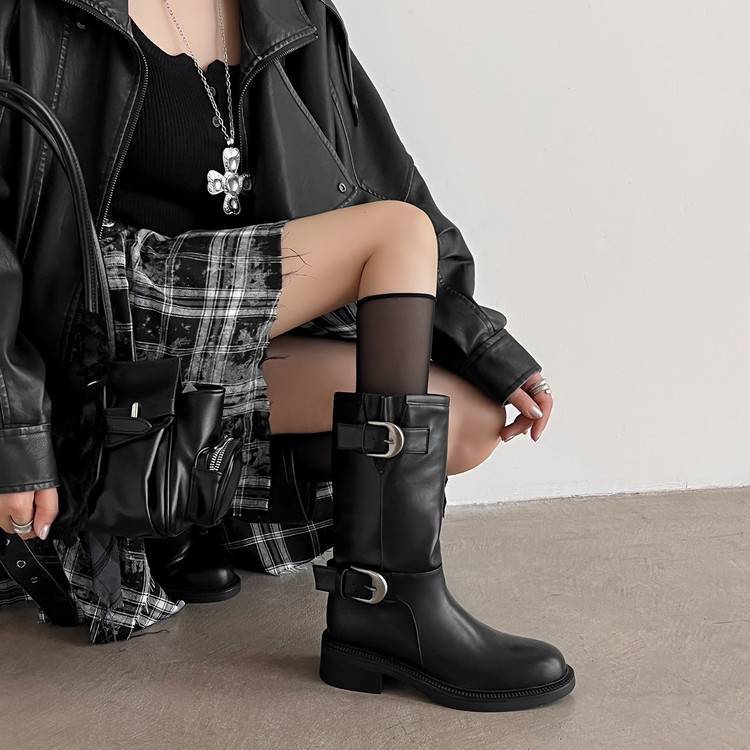 Botas de Cuero para Mujer Nuevas Punta Redonda Versátiles Talla Grande Botas para Mujer Tacón Medio Punta Redonda Suela Gruesa de Goma Botas de Caña Alta Cuero Genuino Botas de Caballero
