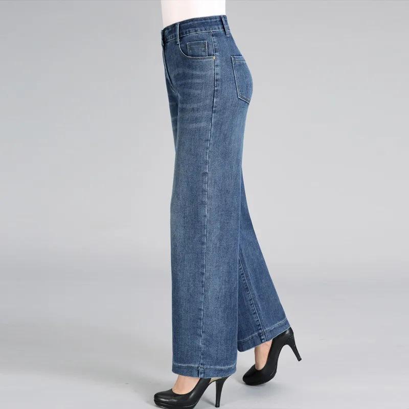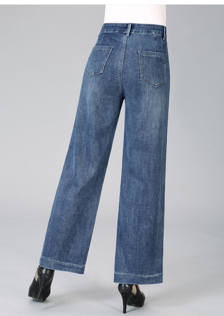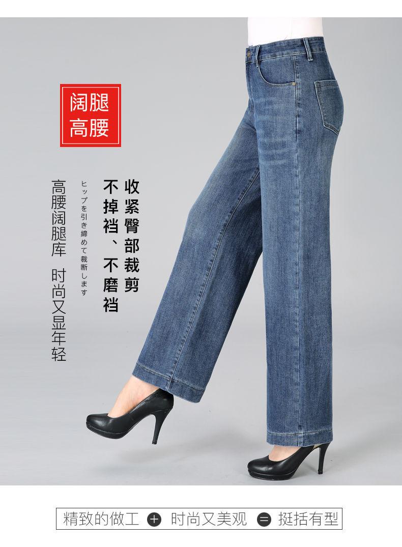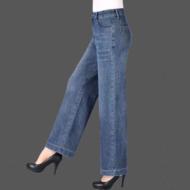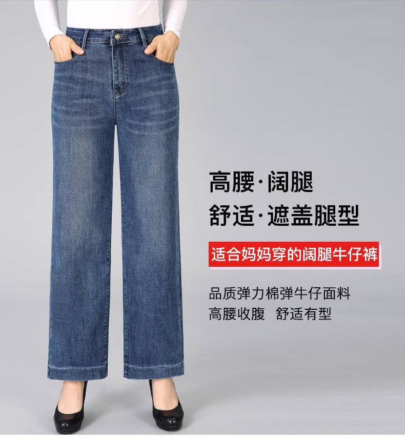 Jeans de Cintura Alta Pantalones de Cintura Alta para Mujer 2024 Primavera y Otoño Nuevo Talla Grande para Mediana Edad Sueltos Pierna Recta Pierna Ancha para Madres