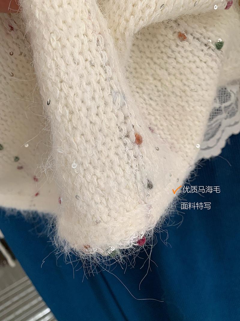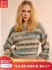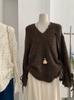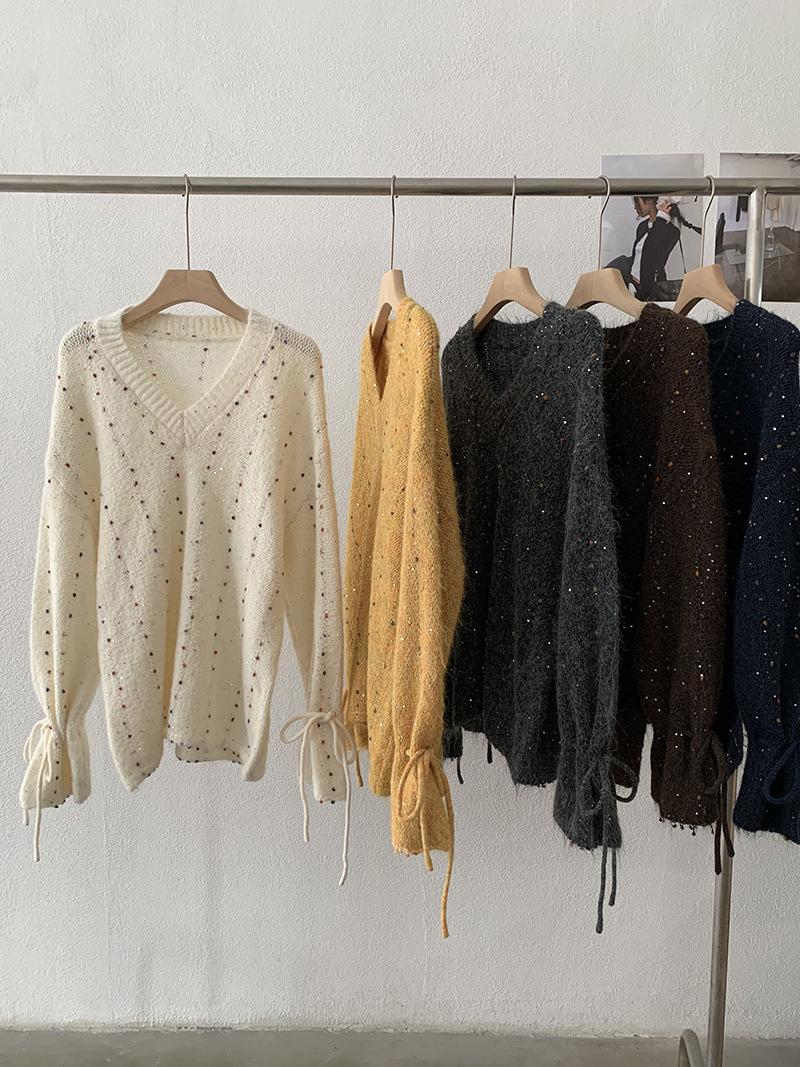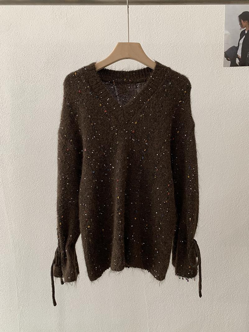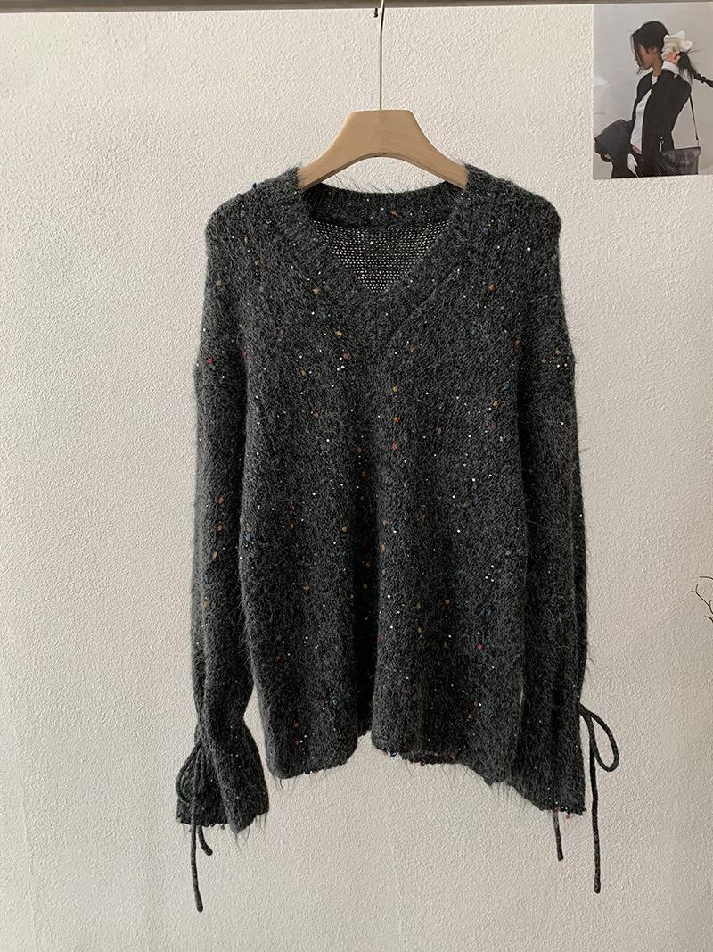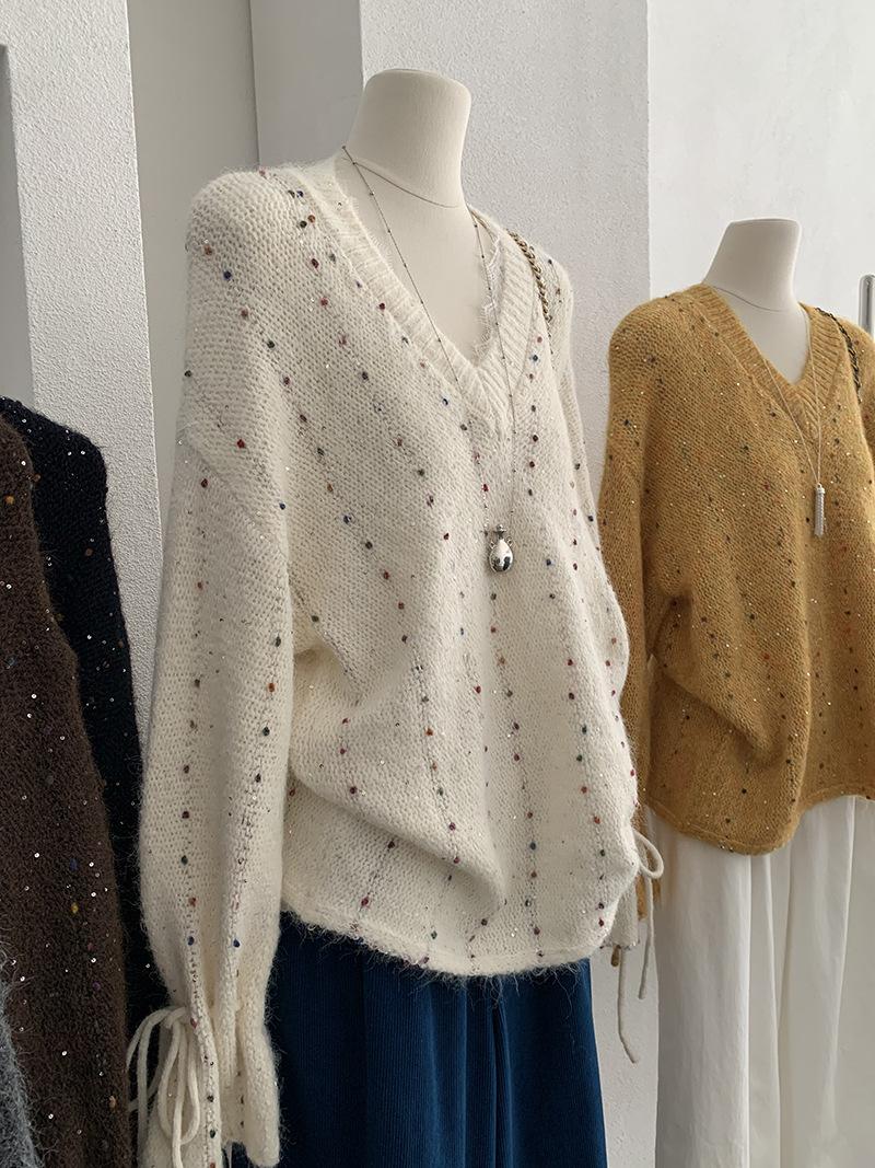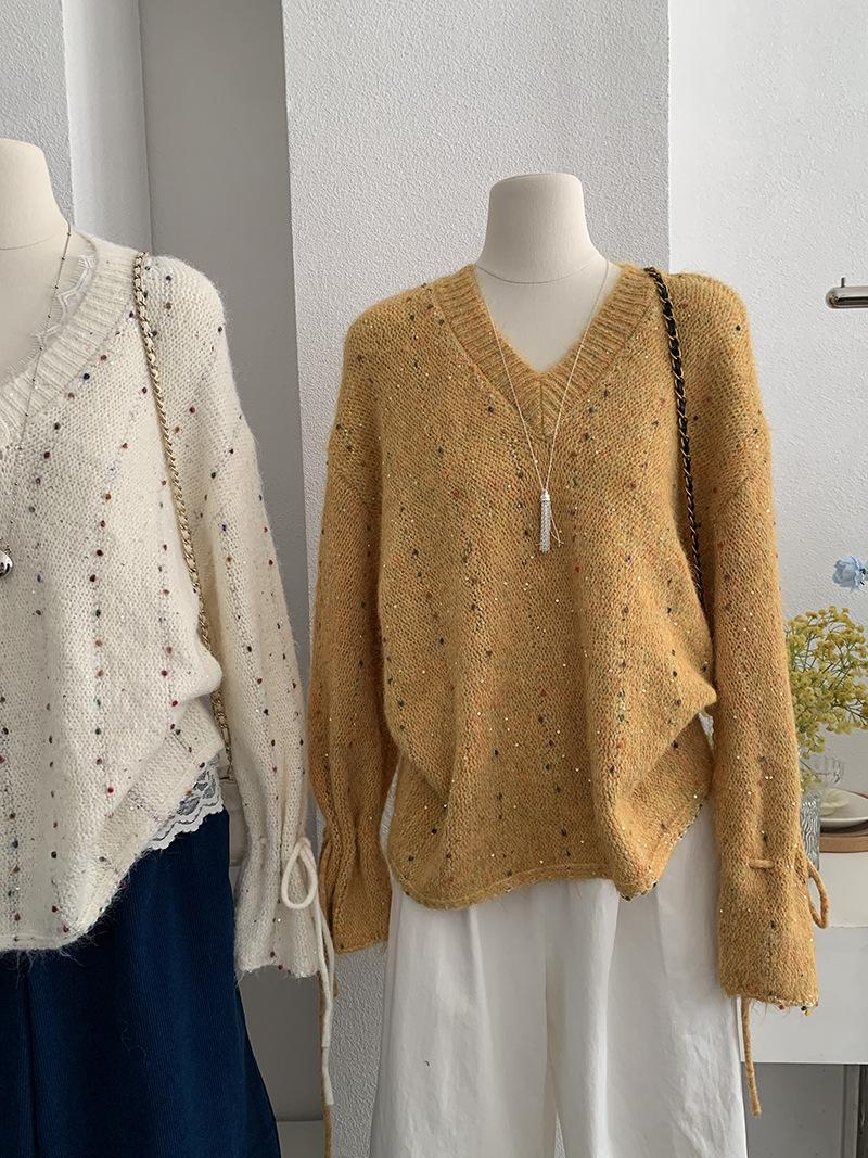 Suéter de Punto Cuello en V Punto de Color Oumaile para Mujer Otoño Nuevo Estilo Dulce Manga Larga Acampanada Top Holgado 4908