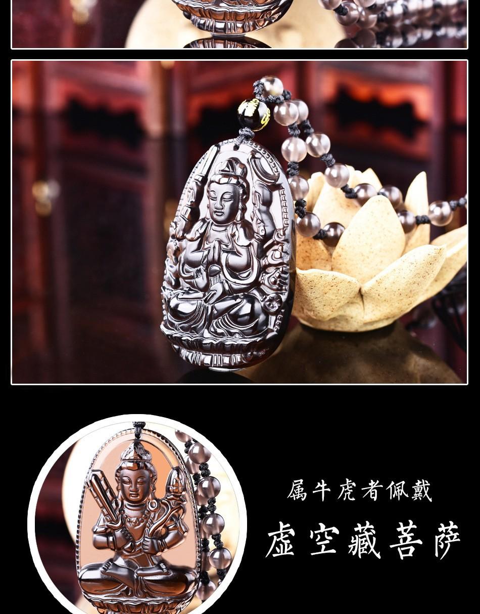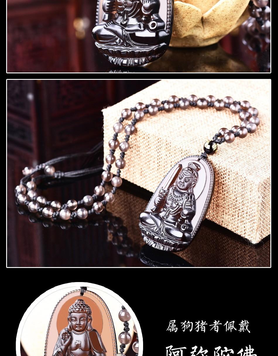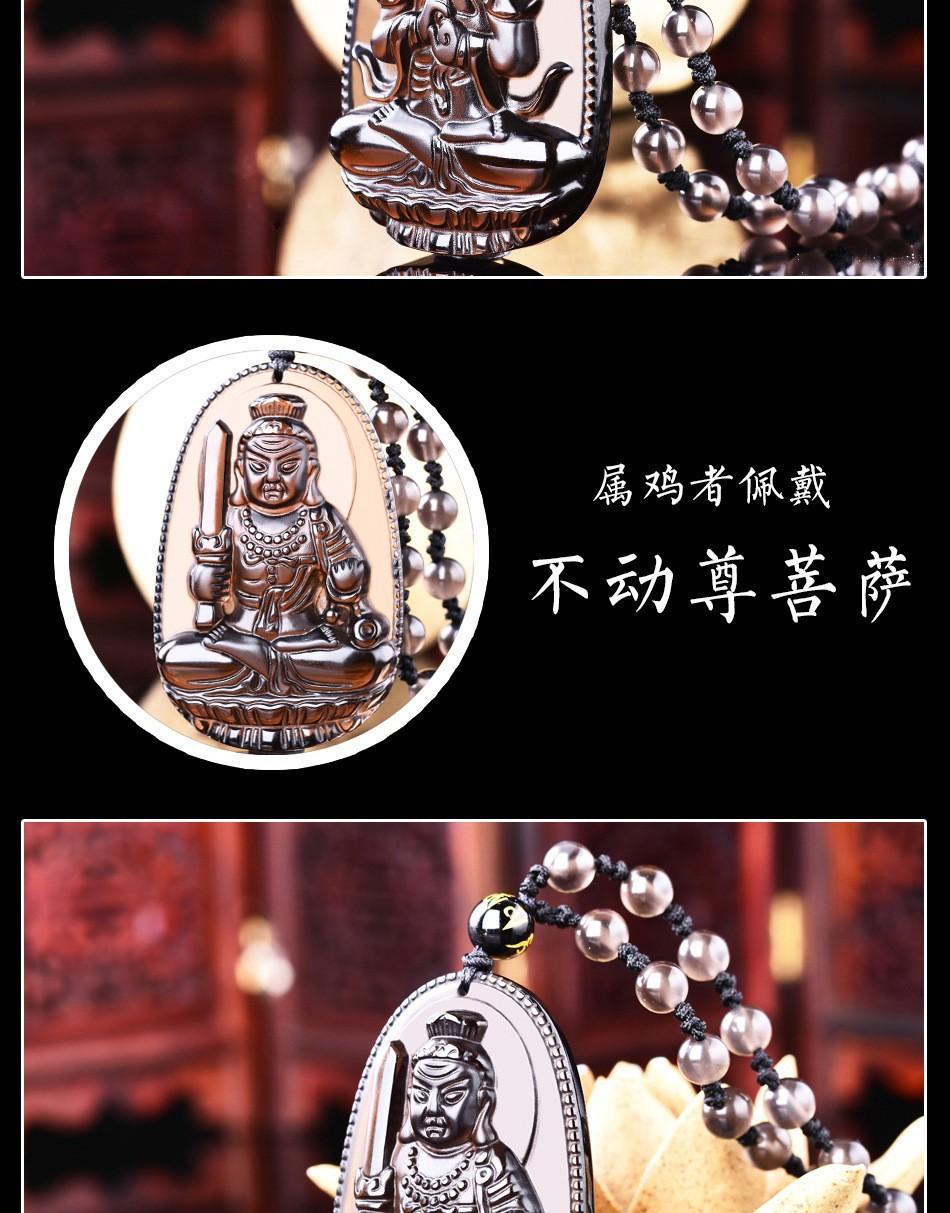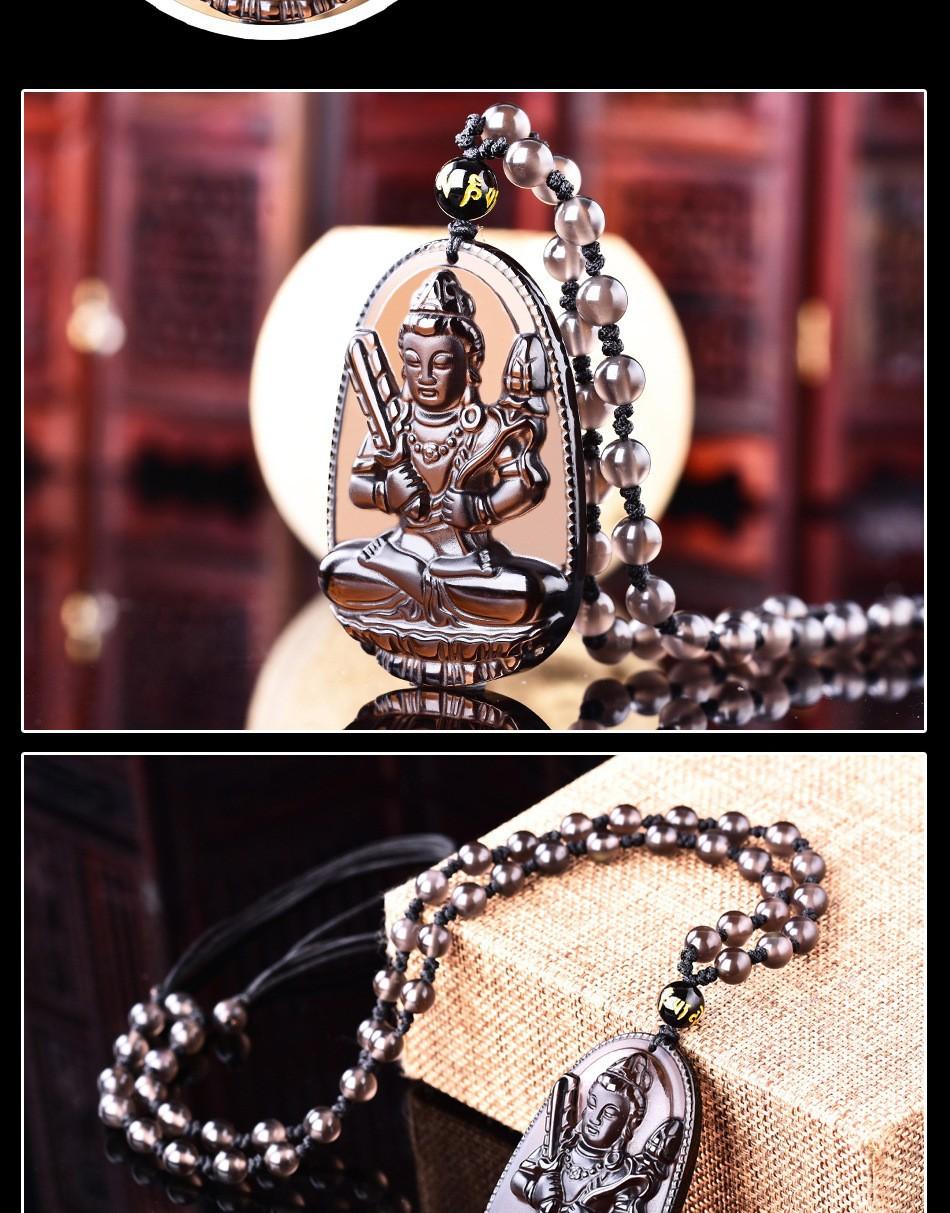 Colgante de Santo Patrón de Obsidiana de Hielo Natural Animal del Zodíaco de Obsidiana Buda Manjushri Bodhisattva Collar de Cristal para Hombres y Mujeres