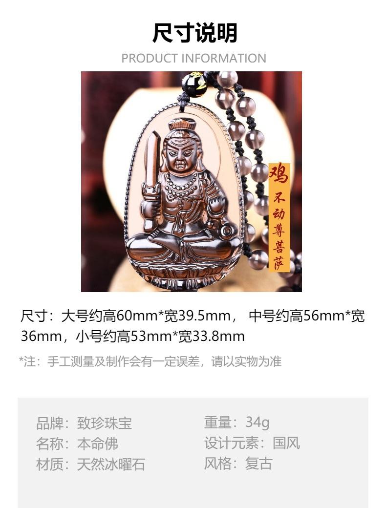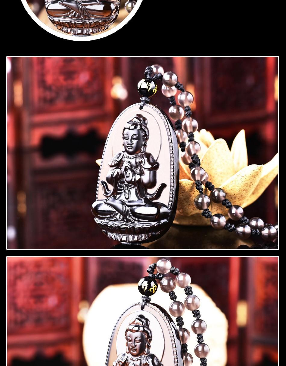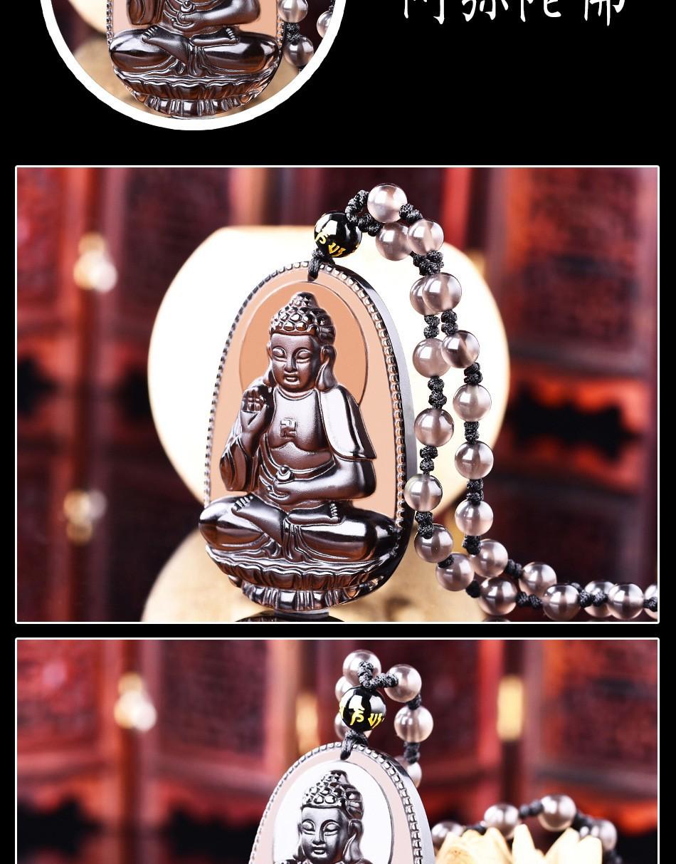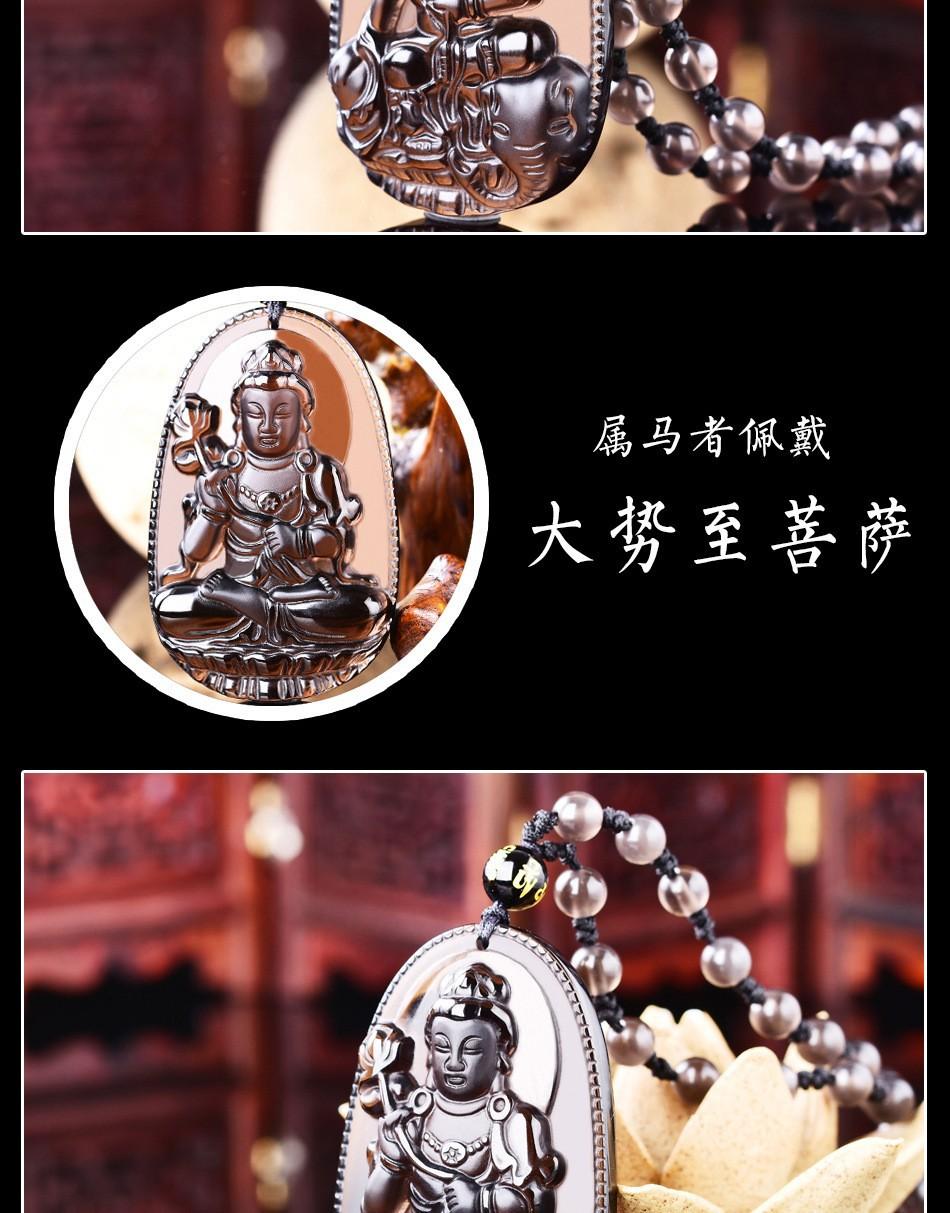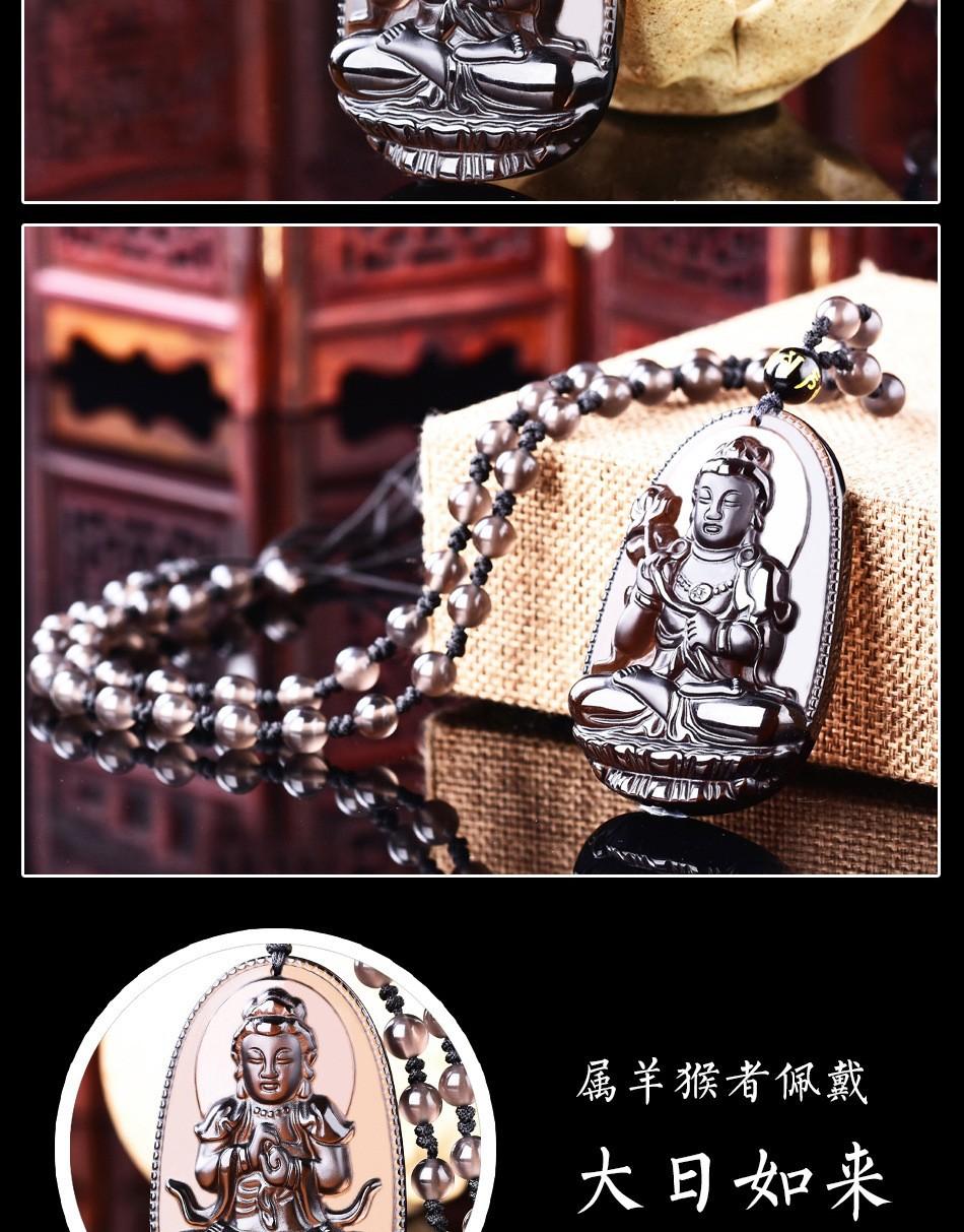 Colgante de Santo Patrón de Obsidiana de Hielo Natural Animal del Zodíaco de Obsidiana Buda Manjushri Bodhisattva Collar de Cristal para Hombres y Mujeres