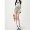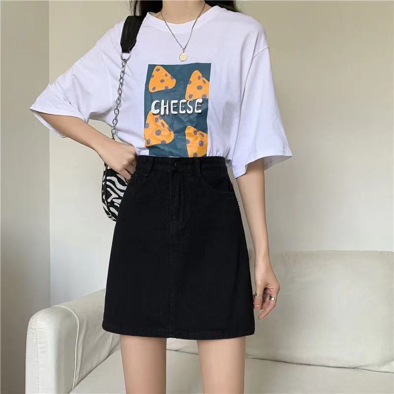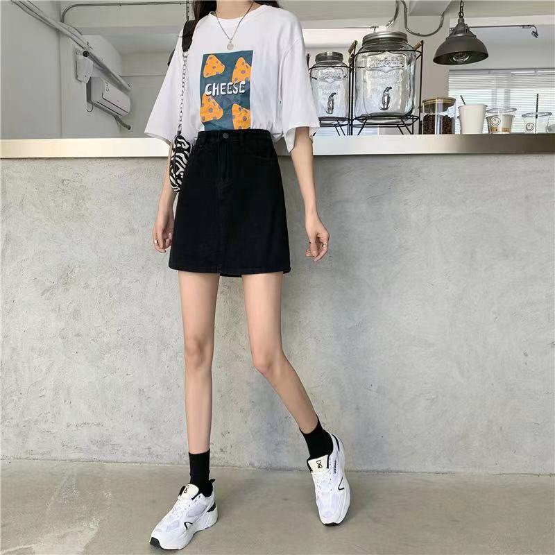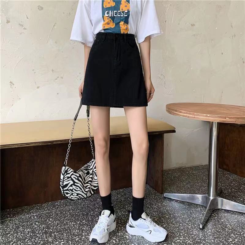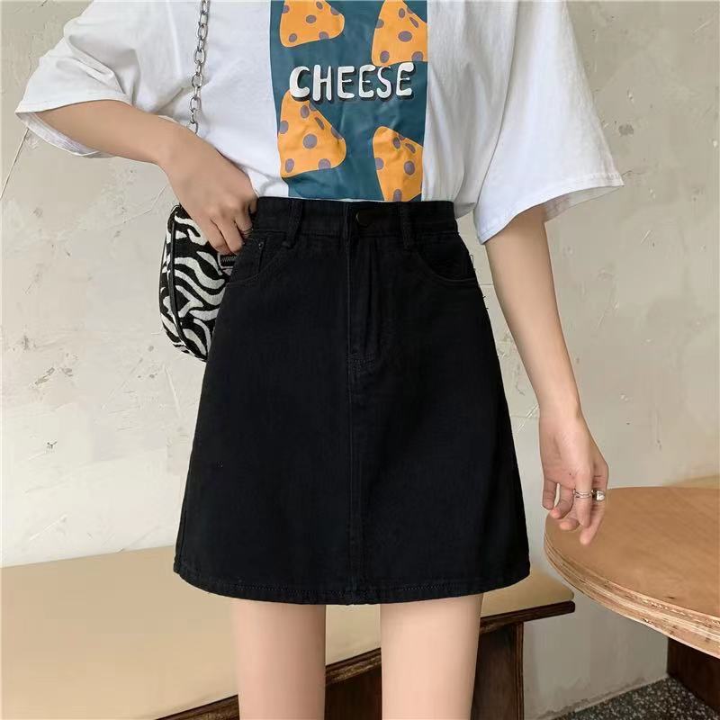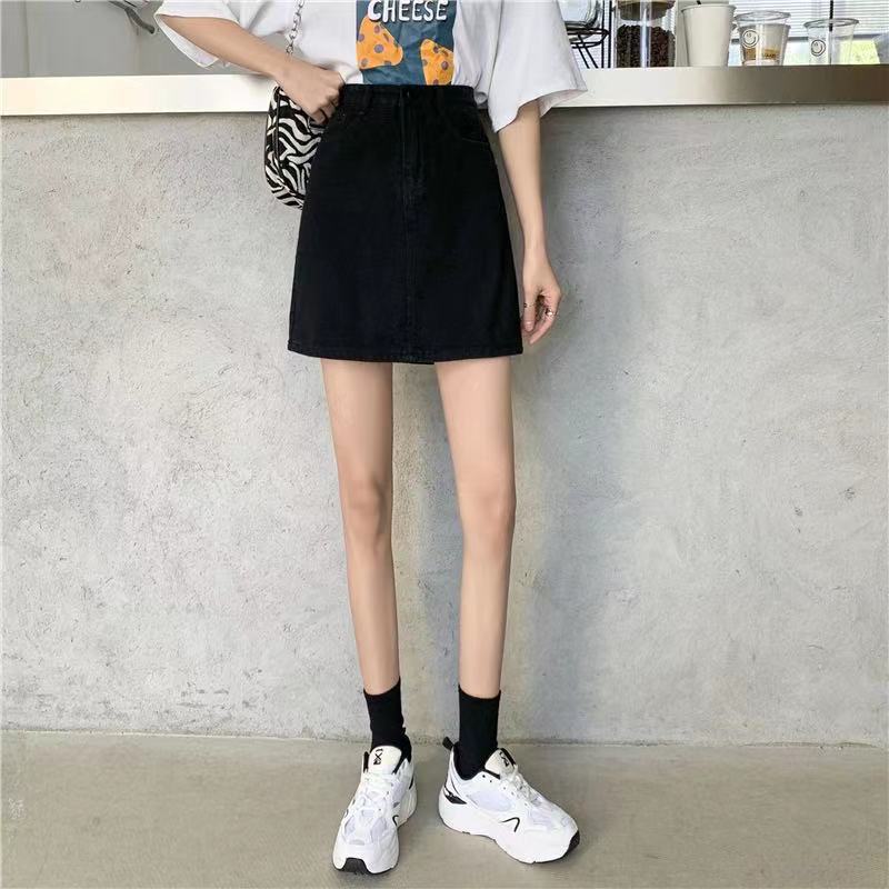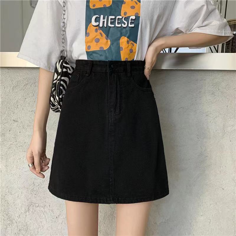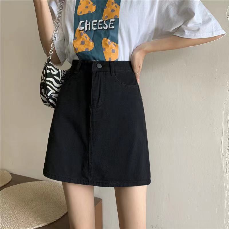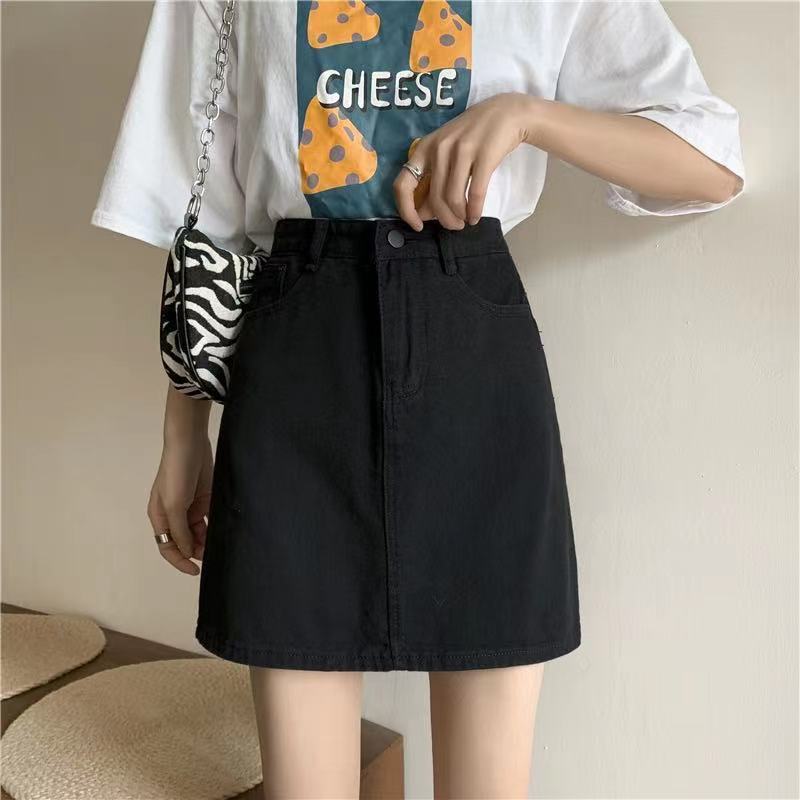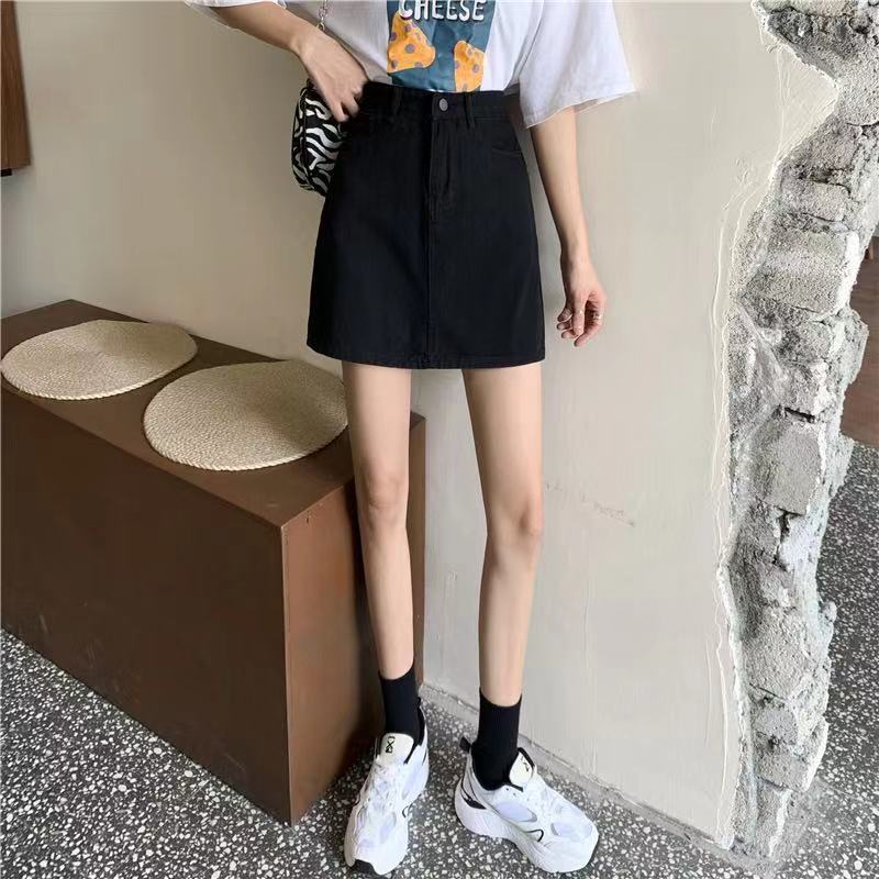 Falda de mezclilla de cintura alta antideslumbrante para mujer Verano 2023 Nueva falda línea A Adelgazante Combinación con todo Negro Falda de cadera