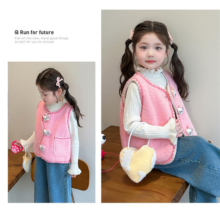 Chaleco para Niñas Otoño Invierno 2025 Nuevo Invierno para Niños con Forro Polar Engrosado Lana de Cordero Chaleco Ropa Exterior para Bebé Niña a la Moda