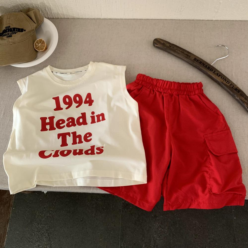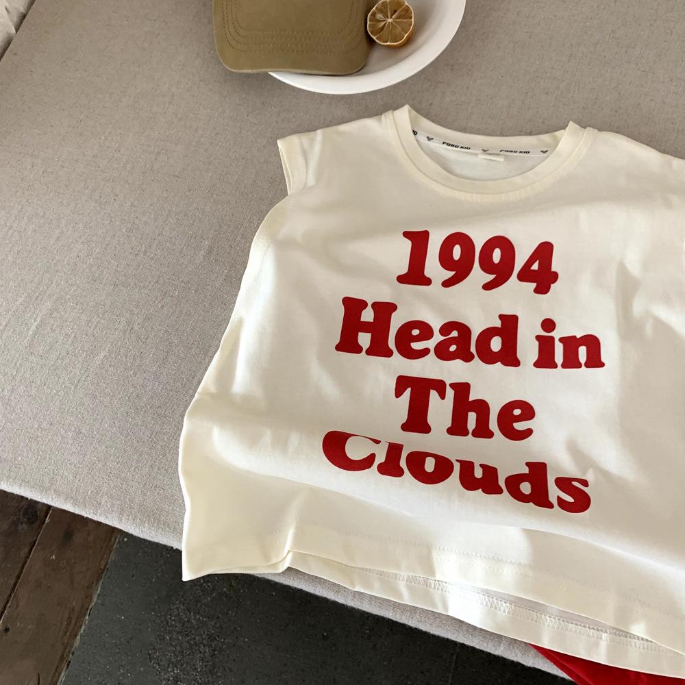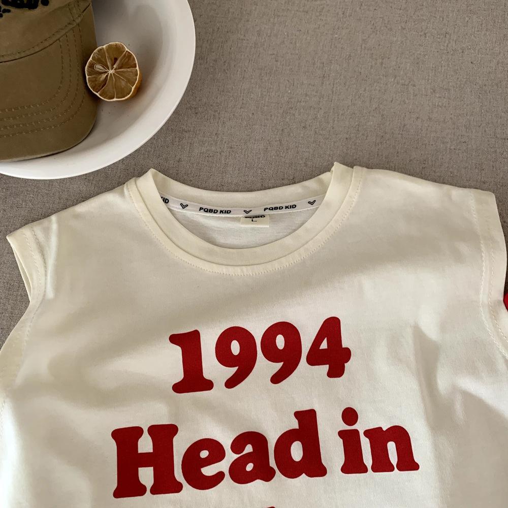 Chaleco de Verano para Niño con Letras de Algodón Puro para Niños sin Mangas Nueva Llegada Ropa para Niños Medianos y Grandes Coreano Holgado Camiseta Top