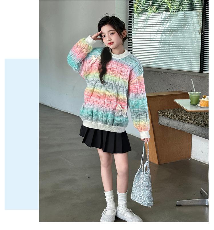 Suéter para niña otoño e invierno 2025 nuevo tejido de punto de moda para niños camisa básica para niña suéter de lana grueso para niños medianos y grandes