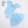 Light blue short-sleeved onesie + tulle skirt