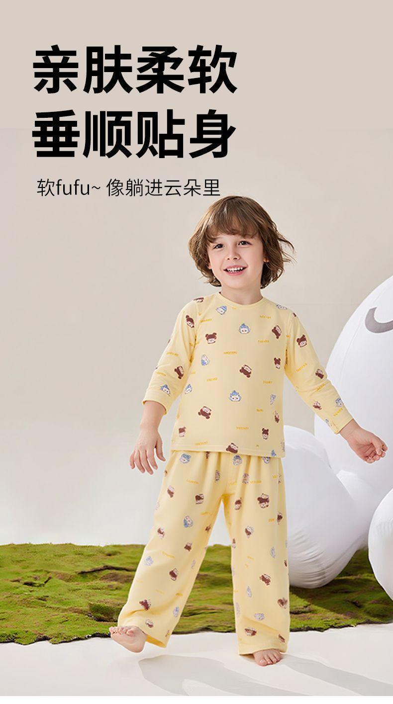 Conjunto de Ropa para el Hogar para Niños Clase A Algodón Puro Pijamas para Niños y Niñas Niños Medianos y Grandes Traje para Aire Acondicionado Ropa para las Cuatro Estaciones Cómodo Transpirable