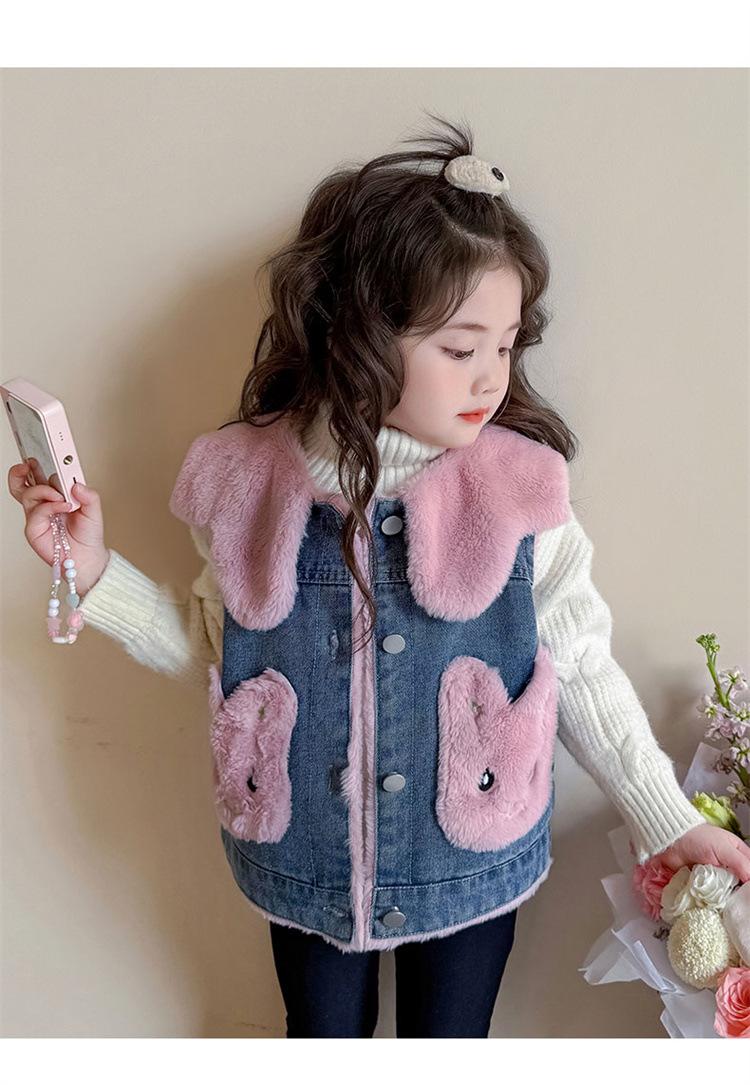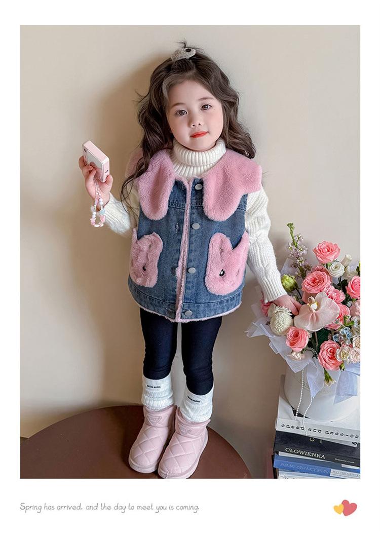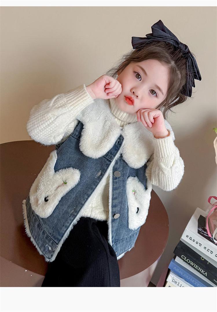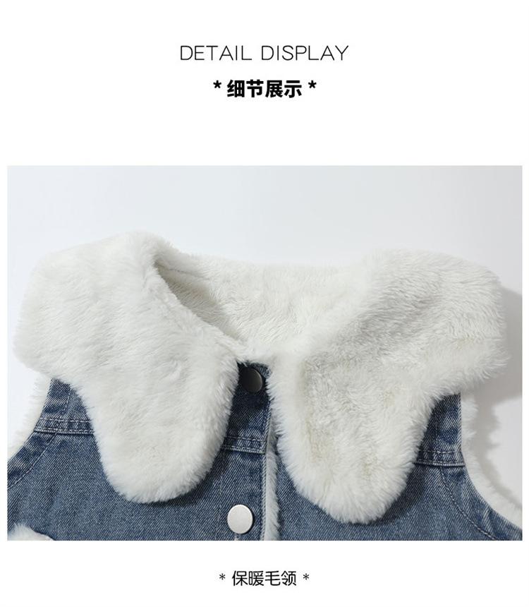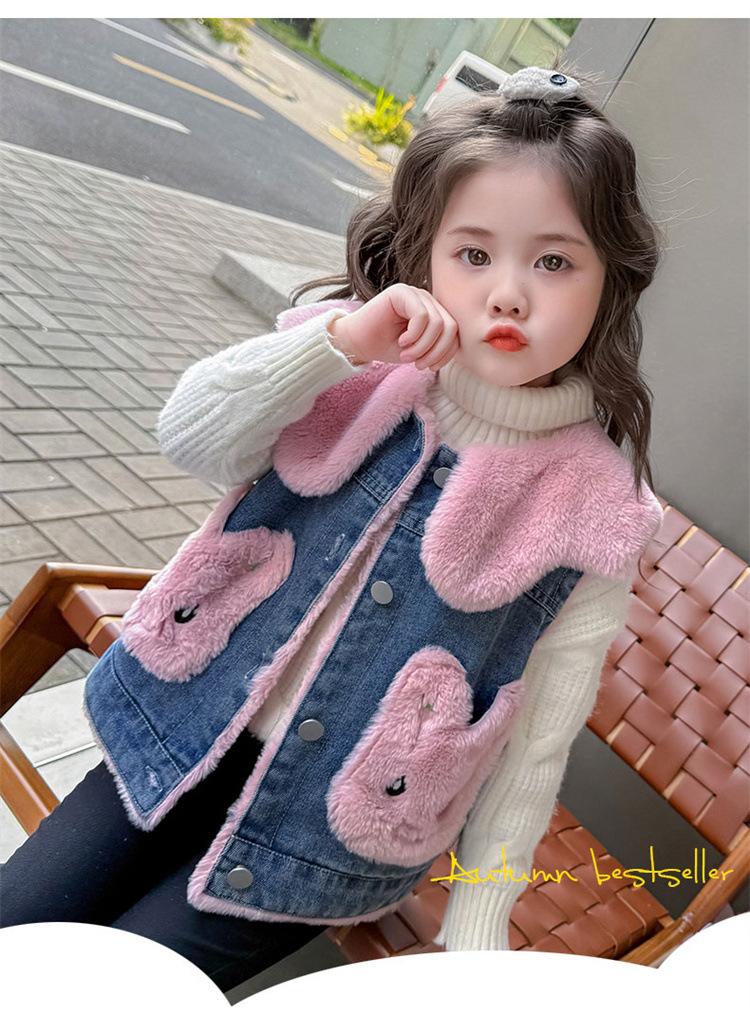Chaleco de mezclilla para niña con forro polar Otoño/Invierno 2025 Ropa de invierno nueva para niños Abrigo de moda grueso con dibujos animados Chaqueta sin mangas