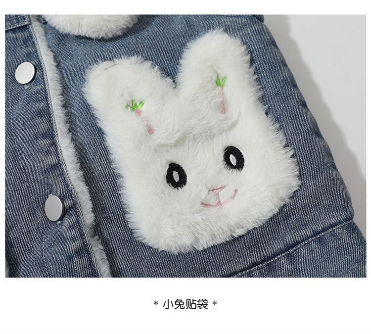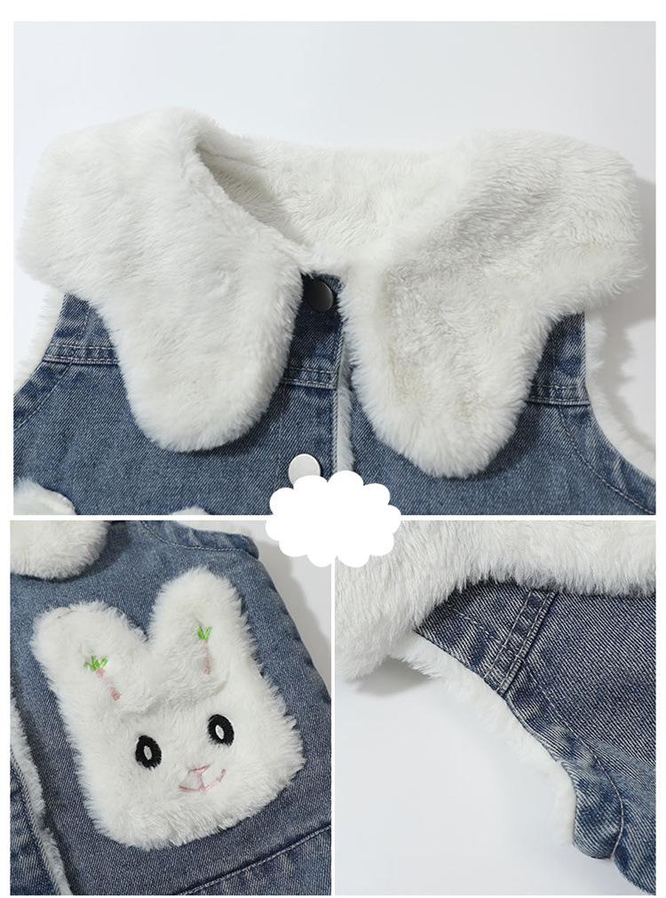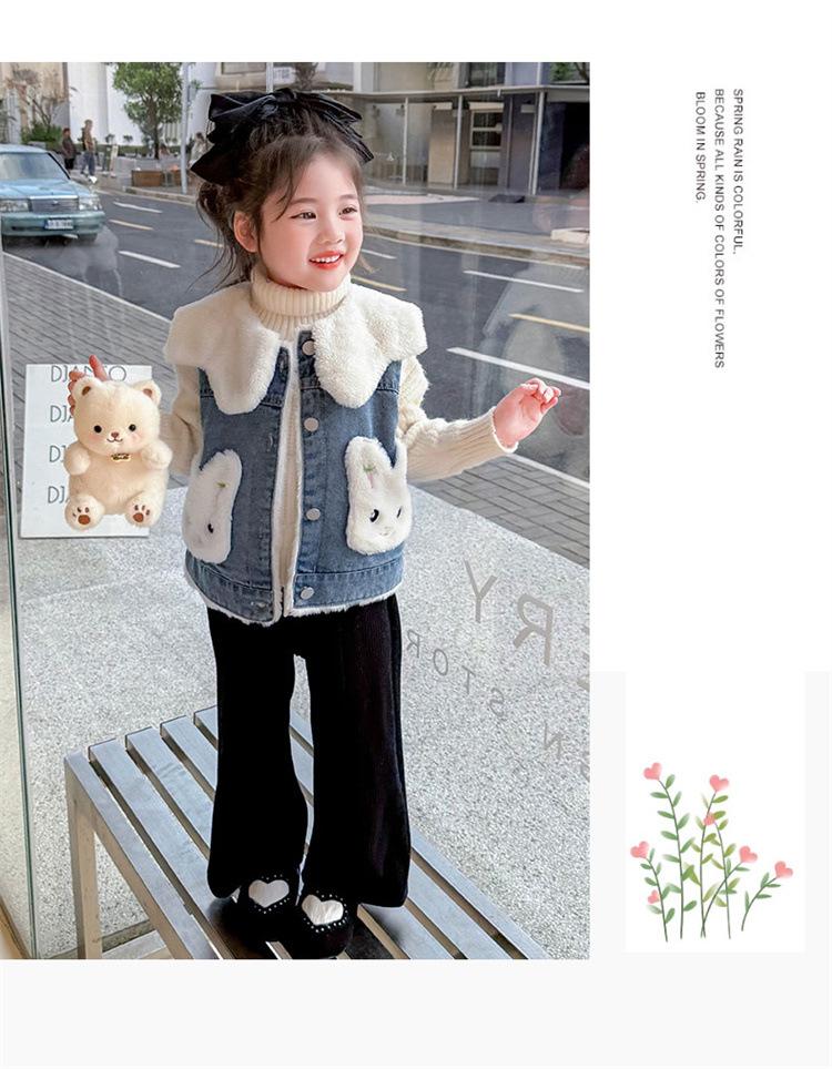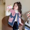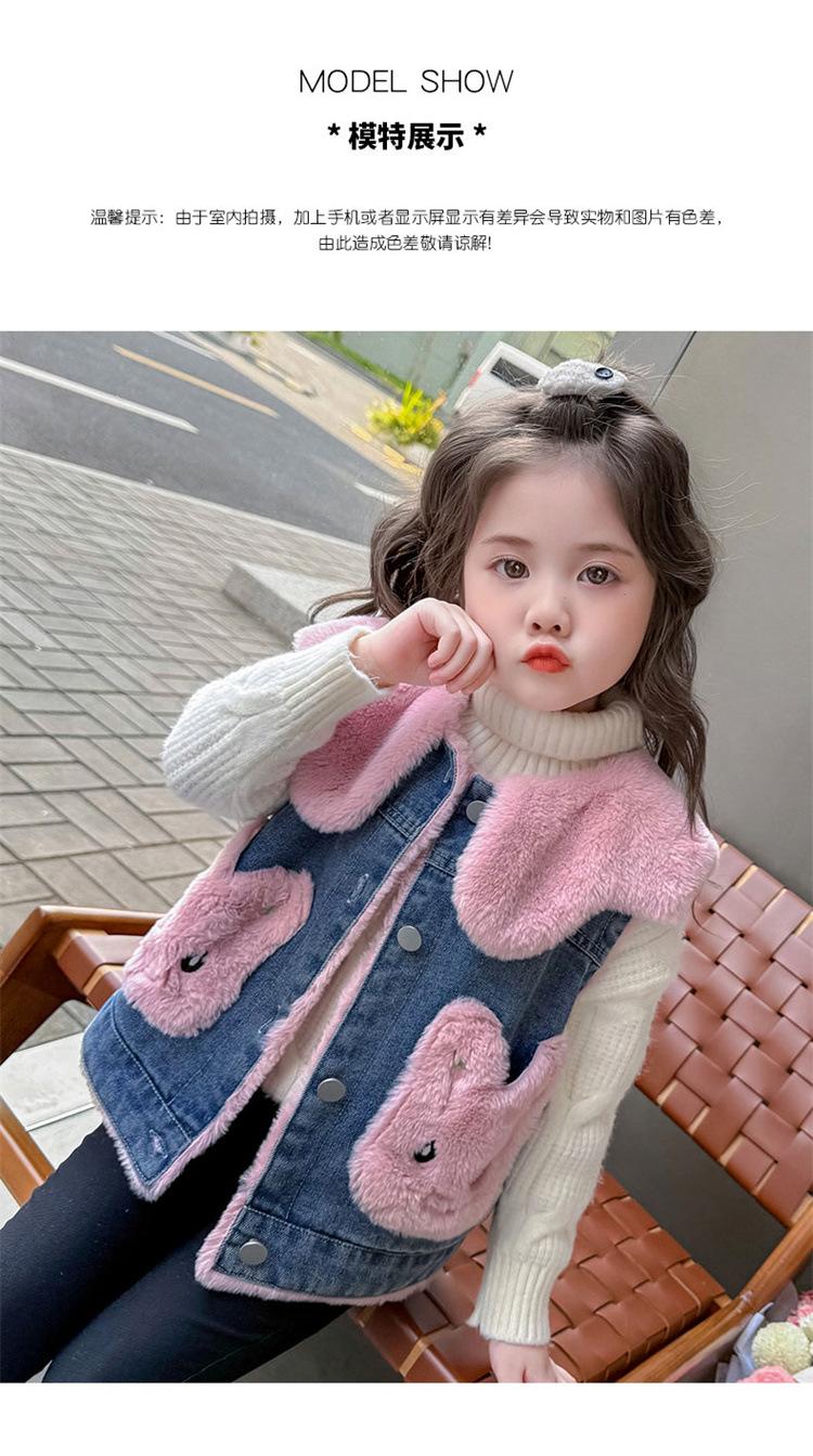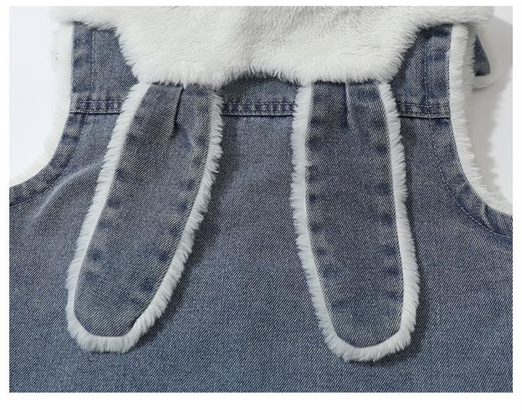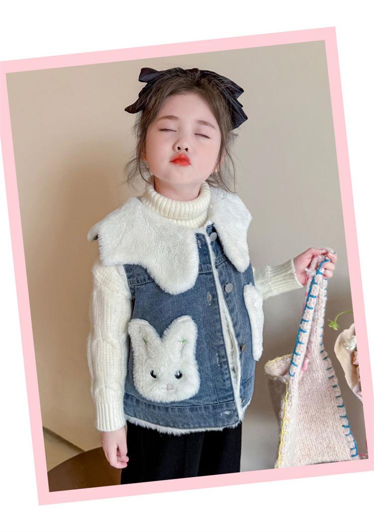 Chaleco de mezclilla para niña con forro polar Otoño/Invierno 2025 Ropa de invierno nueva para niños Abrigo de moda grueso con dibujos animados Chaqueta sin mangas