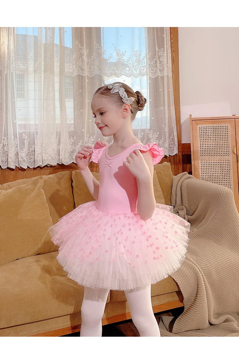 Falda de Tul de Danza para Niñas Falda de Práctica de Ballet de Medio Cuerpo Falda de Danza de Lunares Rosados para Niñas Falda de Danza Corta