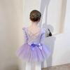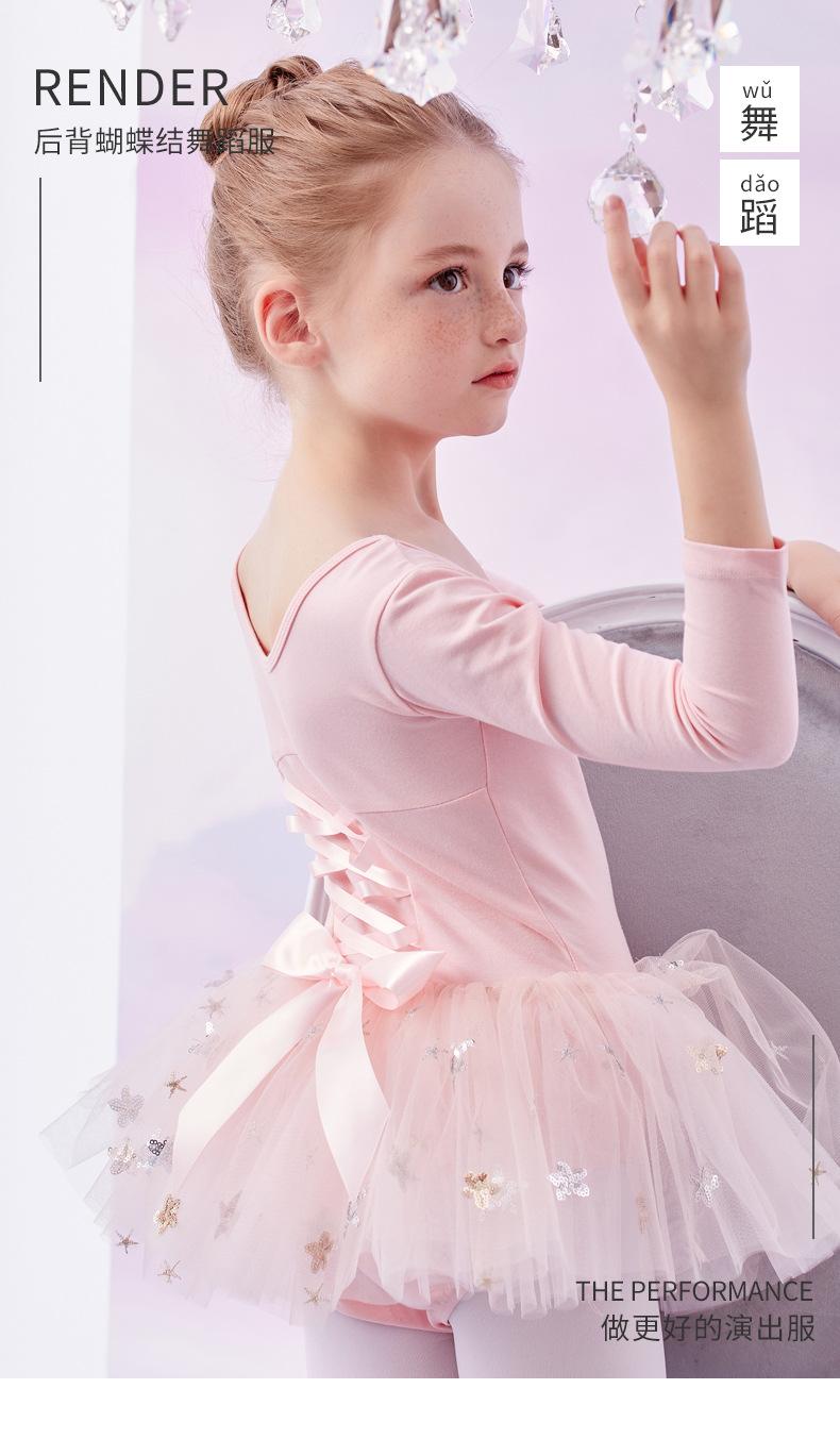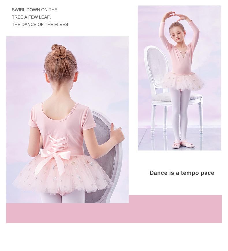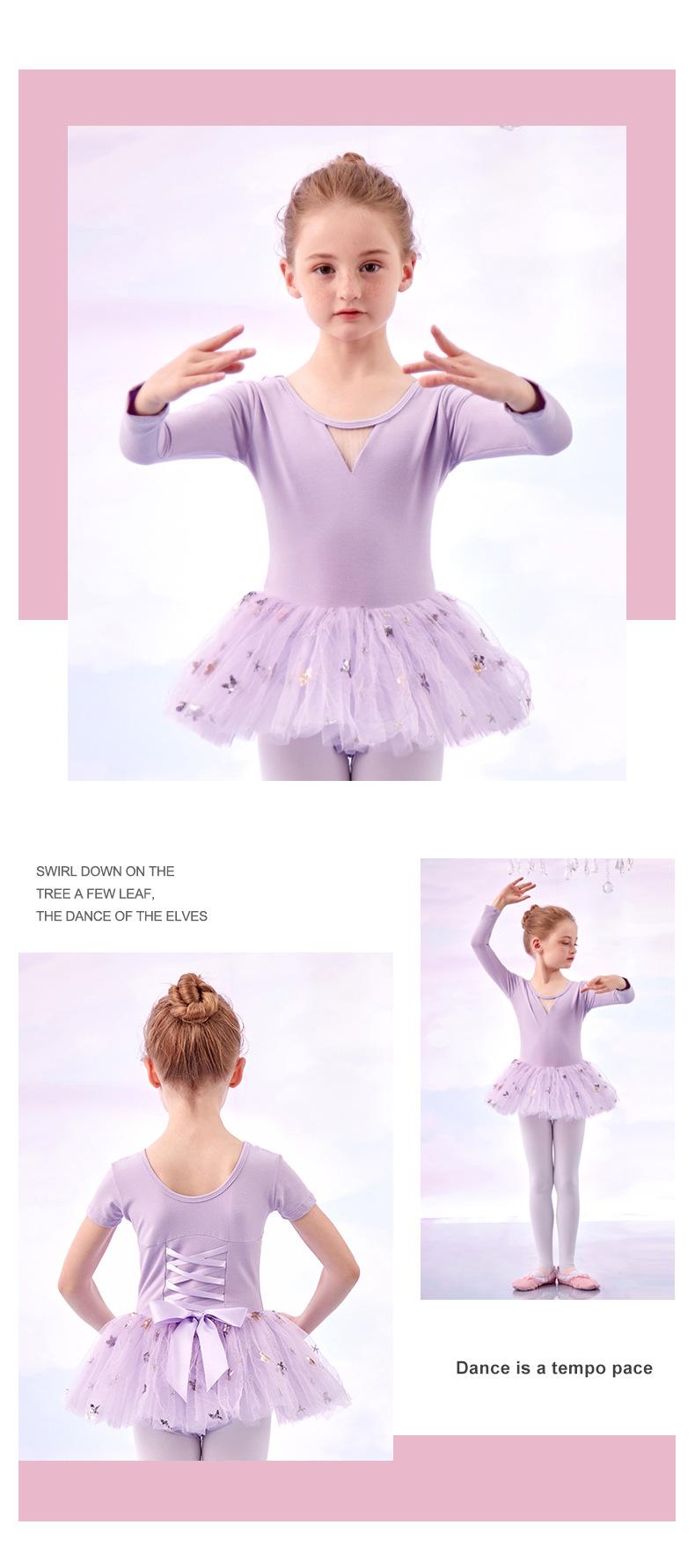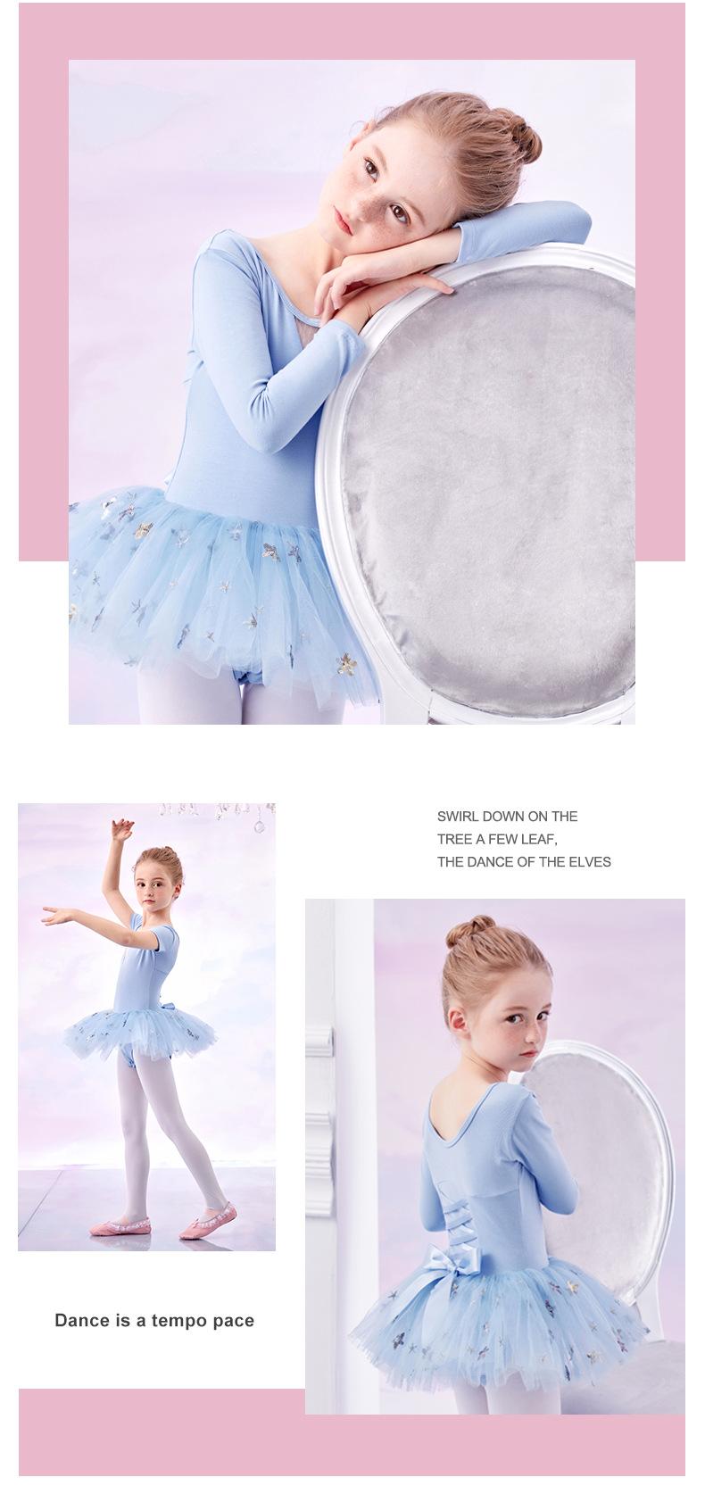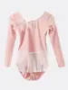 Ropa de Baile para Niñas Primavera Verano Manga Larga Ropa de Práctica Vestido de Ballet para Niña Danza Entrepierna Abierta Falda Abullonada