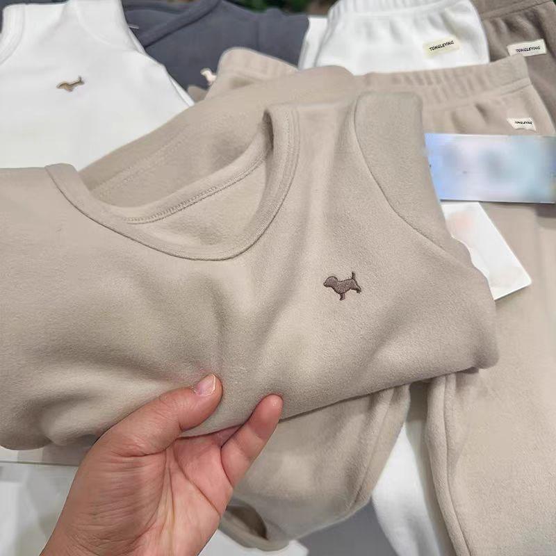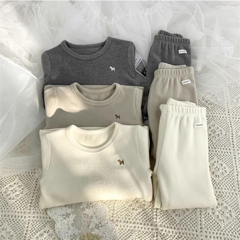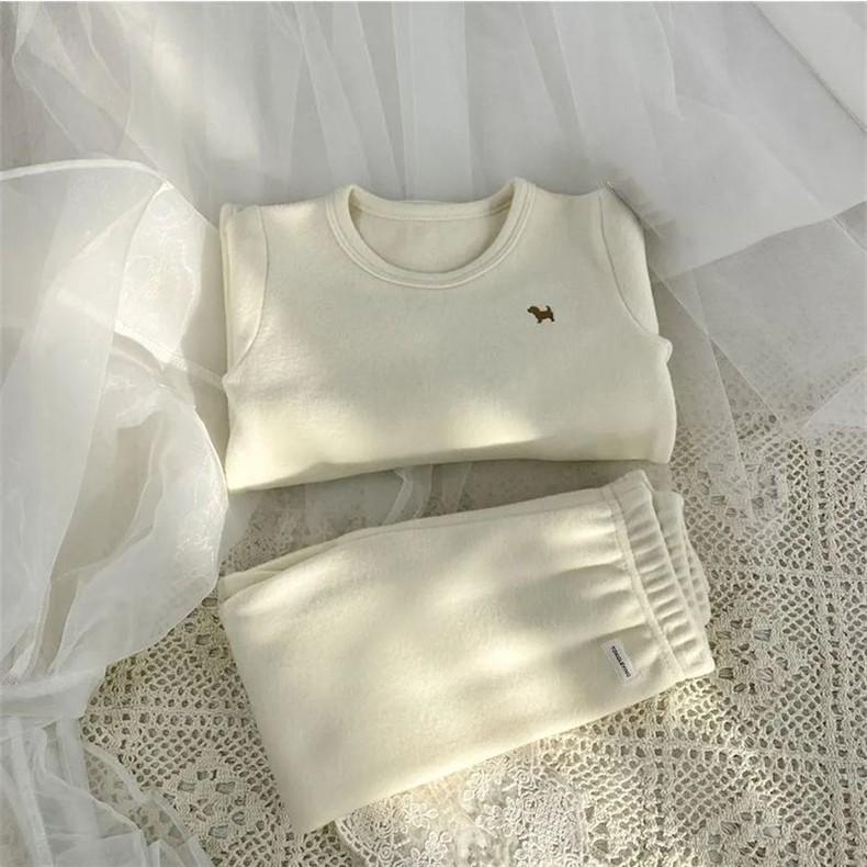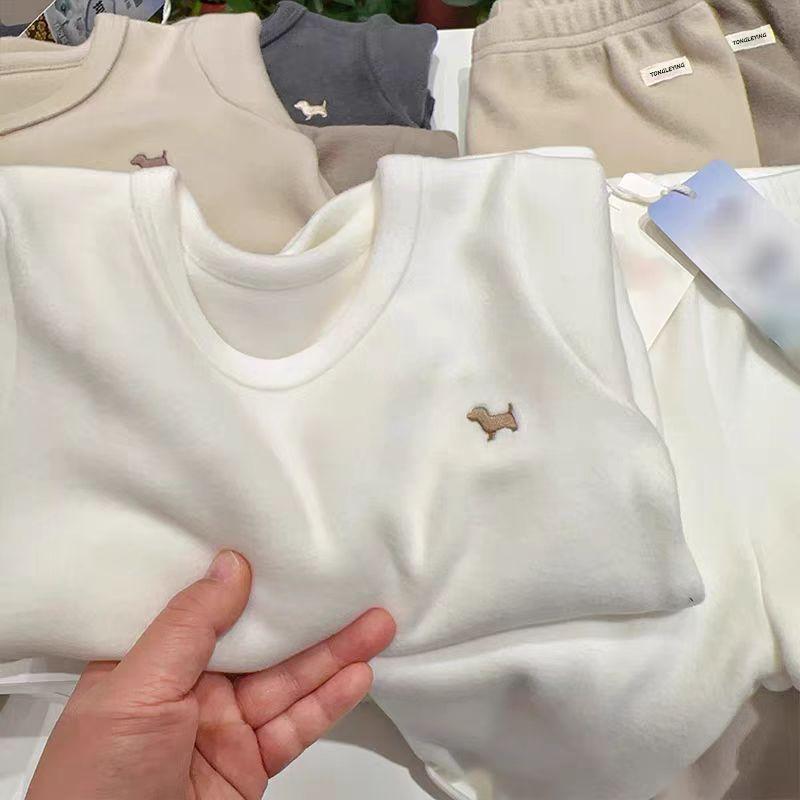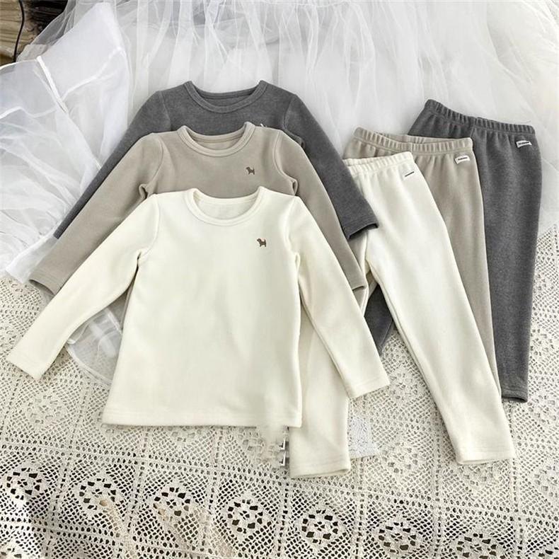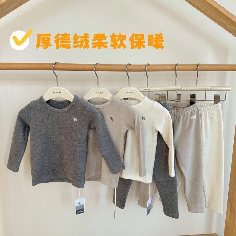 Conjunto de Ropa Interior y Pantalones de Terciopelo para Otoño para Niños y Niñas Pijama Cálido de Invierno para Niños Bebé Amigable con la Piel Cómodo para el Hogar Conjunto de Dos Piezas