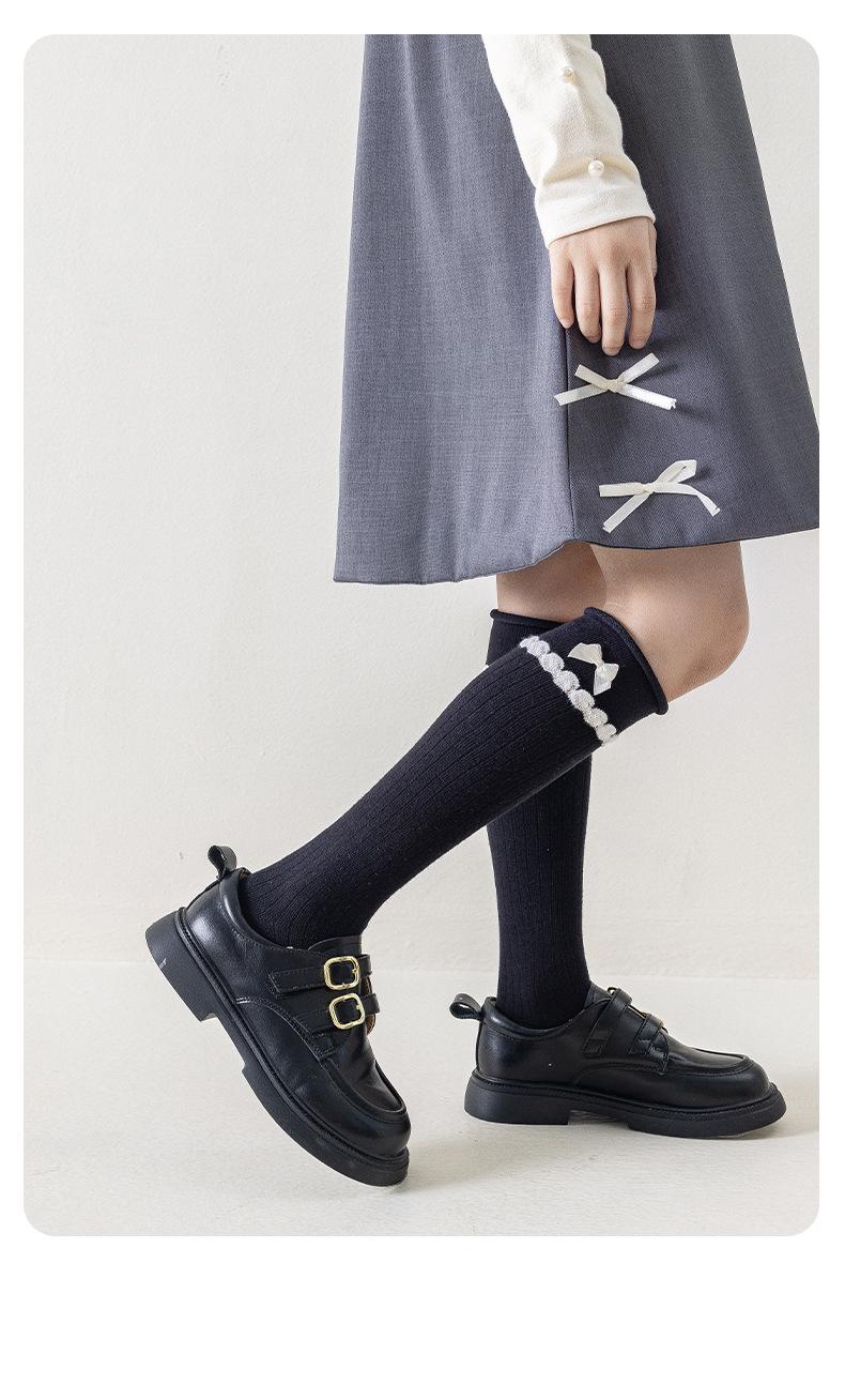 Calcetines para niñas primavera y otoño calcetines hasta la pantorrilla para niños estilo coreano ins lazo calcetines largos niñas otoño calcetines infantiles de moda