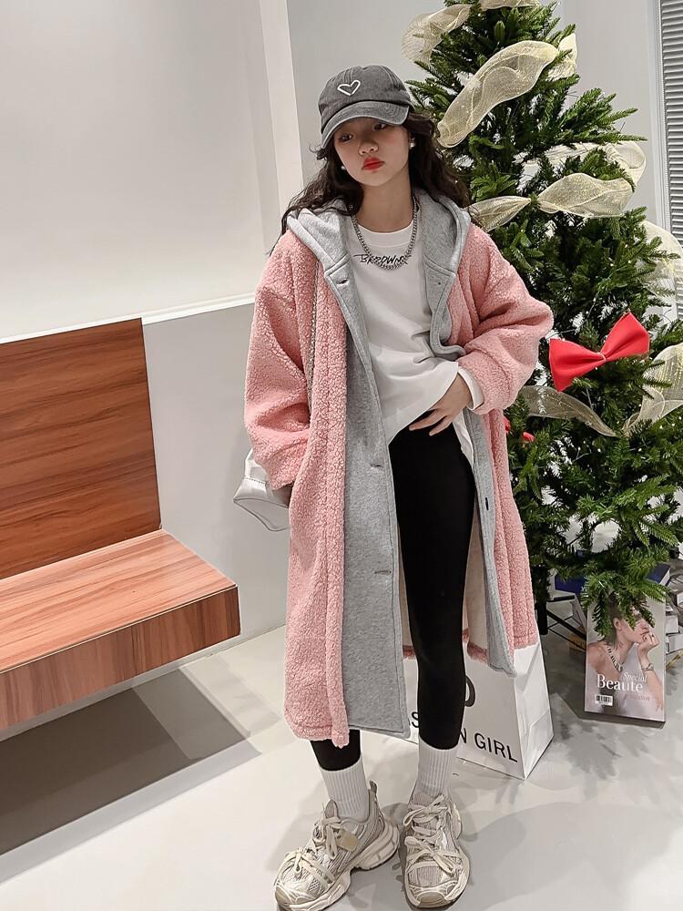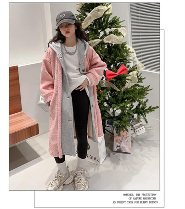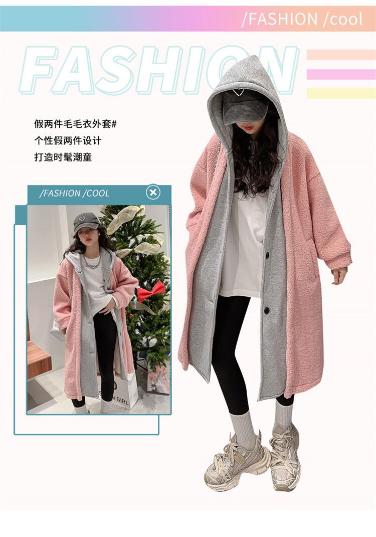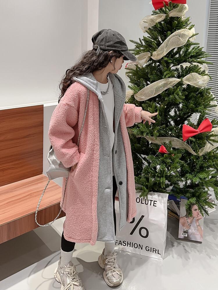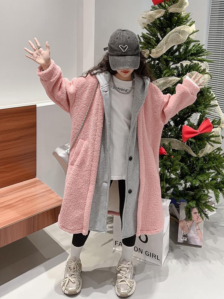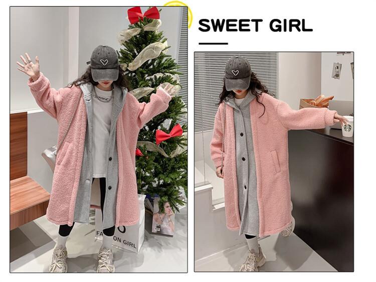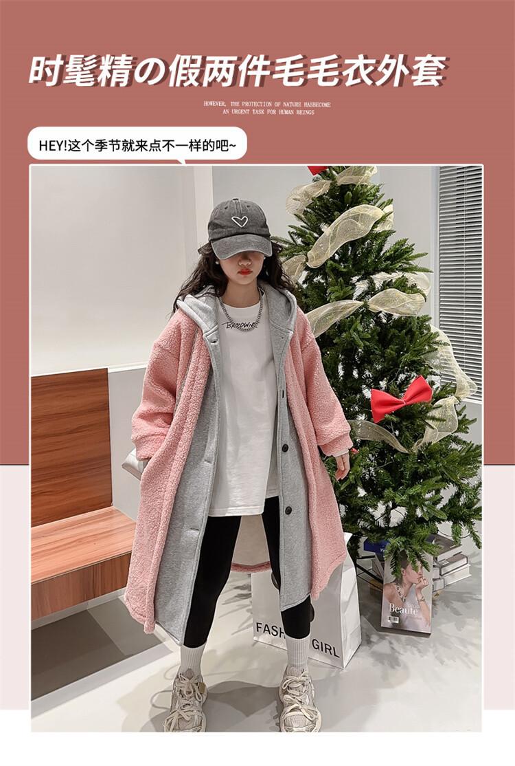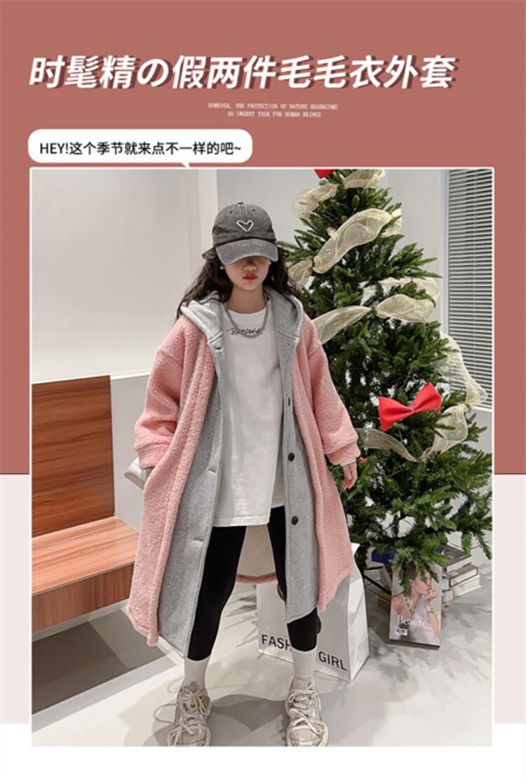 Comercio Exterior Otoño Invierno Estudiante Niñas Bonito Falso Dos Piezas Infantil Forrado de Felpa Estilo Coreano Moda de Invierno Casual Abrigo Peludo
