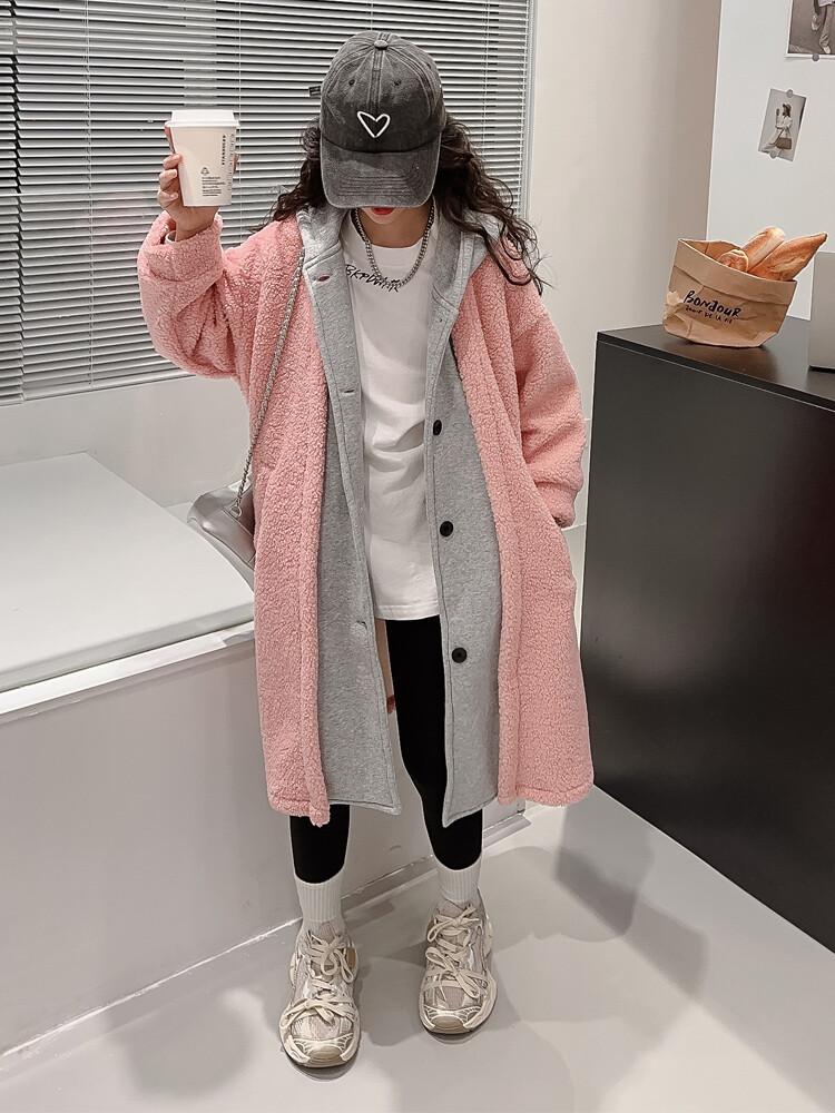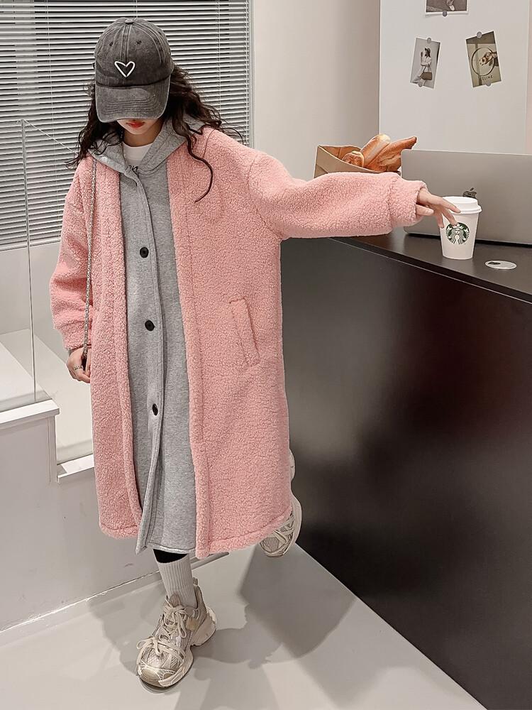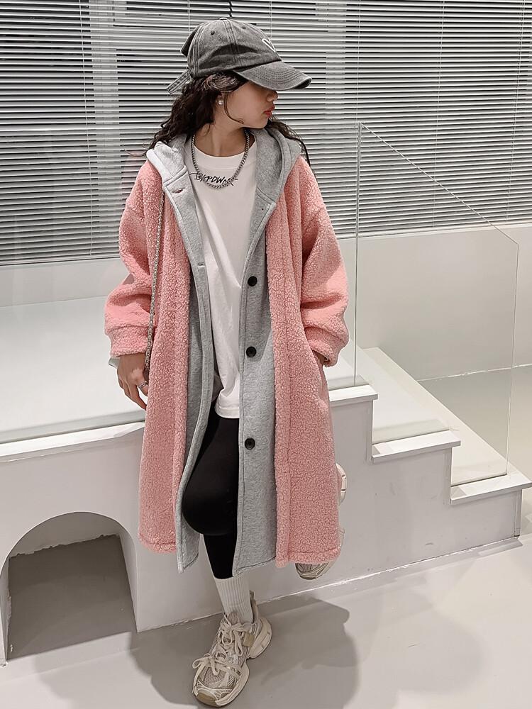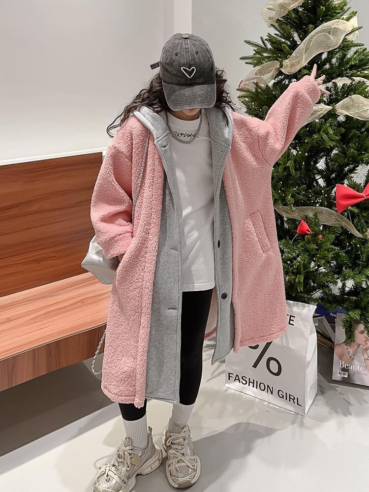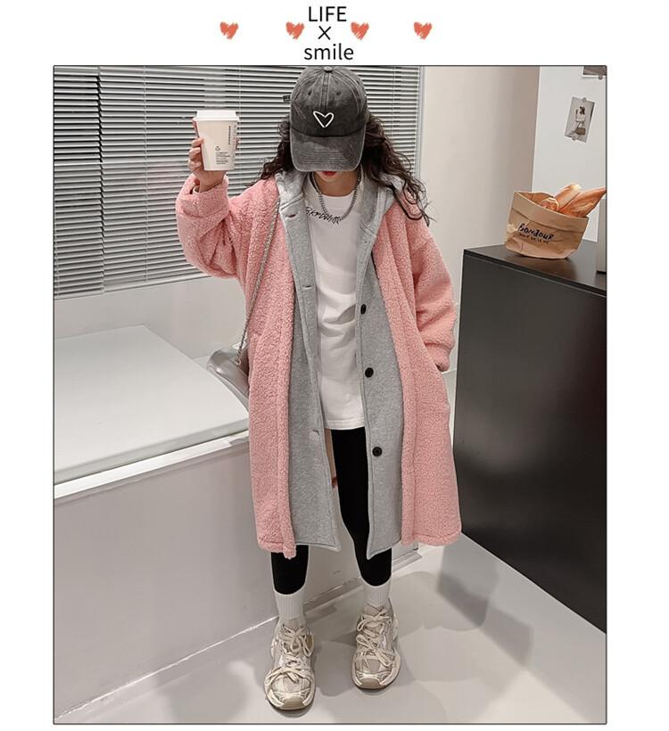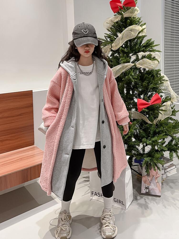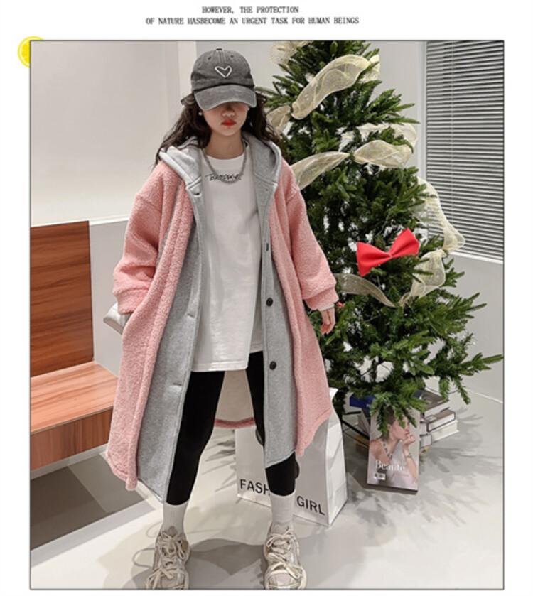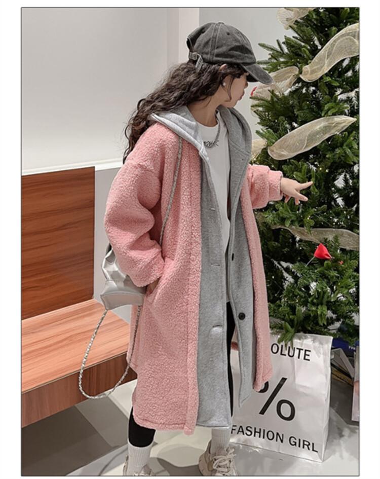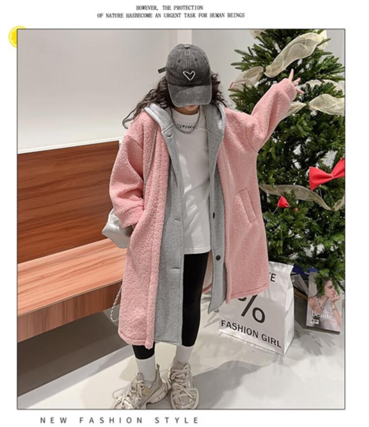 Comercio Exterior Otoño Invierno Estudiante Niñas Bonito Falso Dos Piezas Infantil Forrado de Felpa Estilo Coreano Moda de Invierno Casual Abrigo Peludo