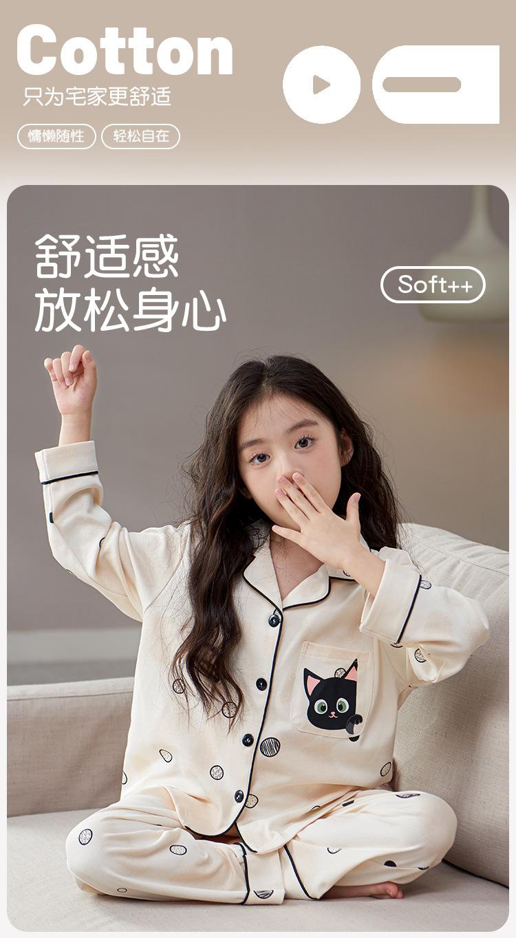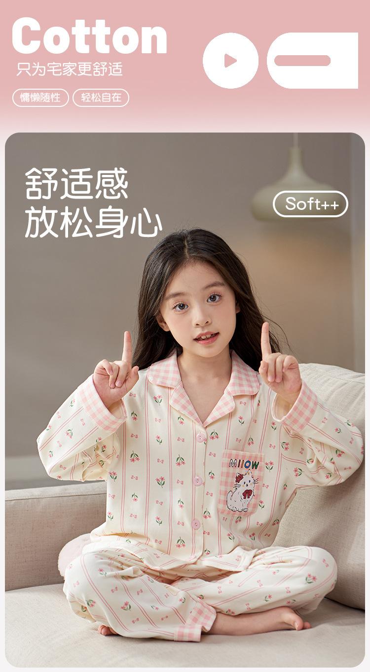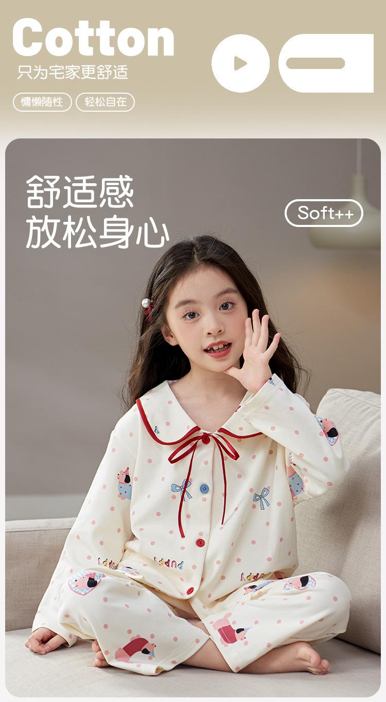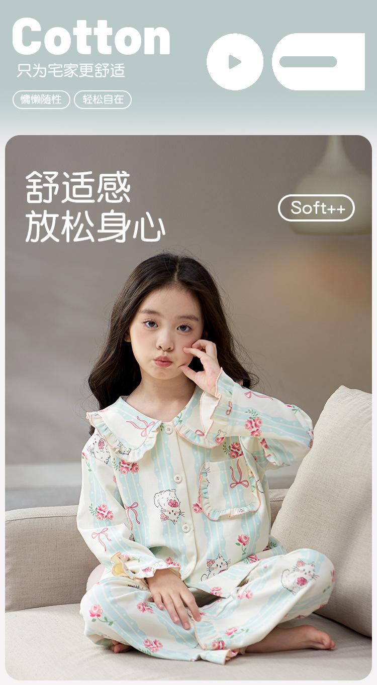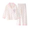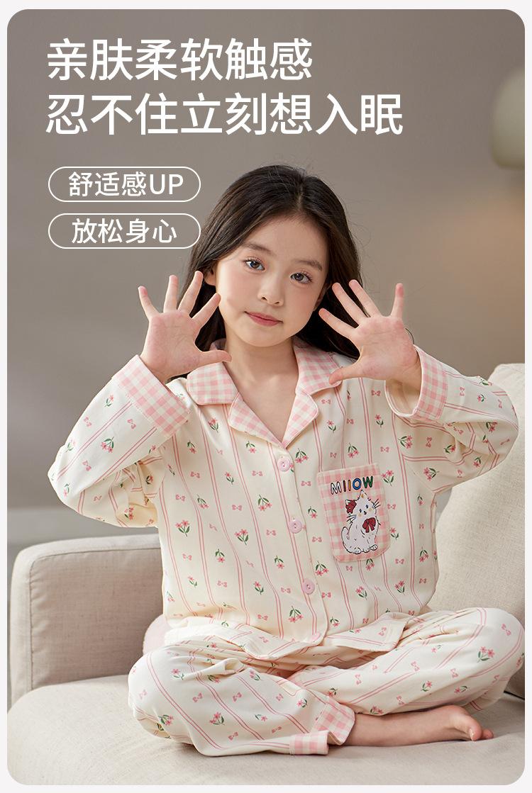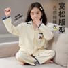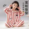 Pijamas para niños nuevo otoño e invierno algodón puro caricatura cuello vuelto cárdigan manga larga pantalones largos niñas pueden usar para salir ropa de casa