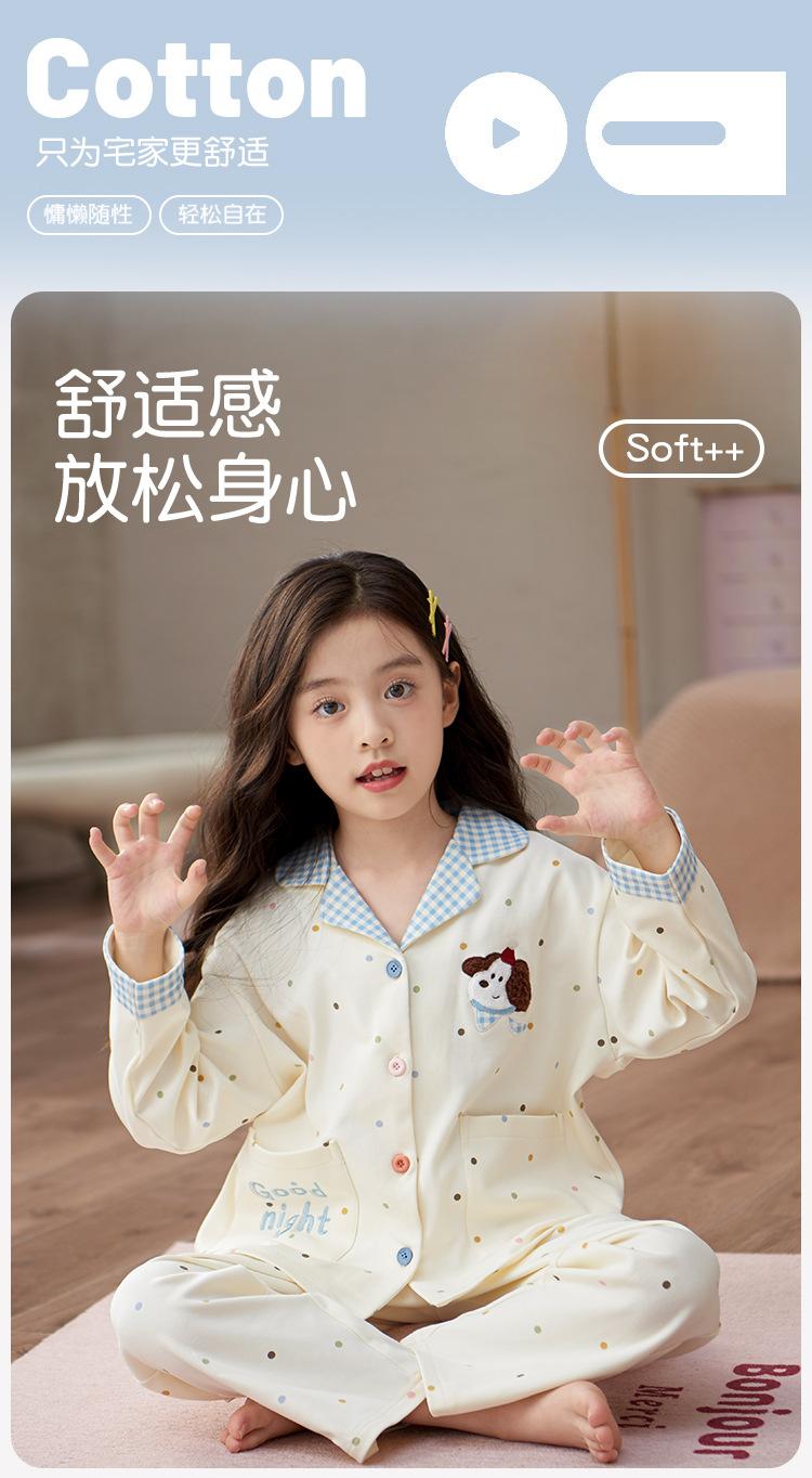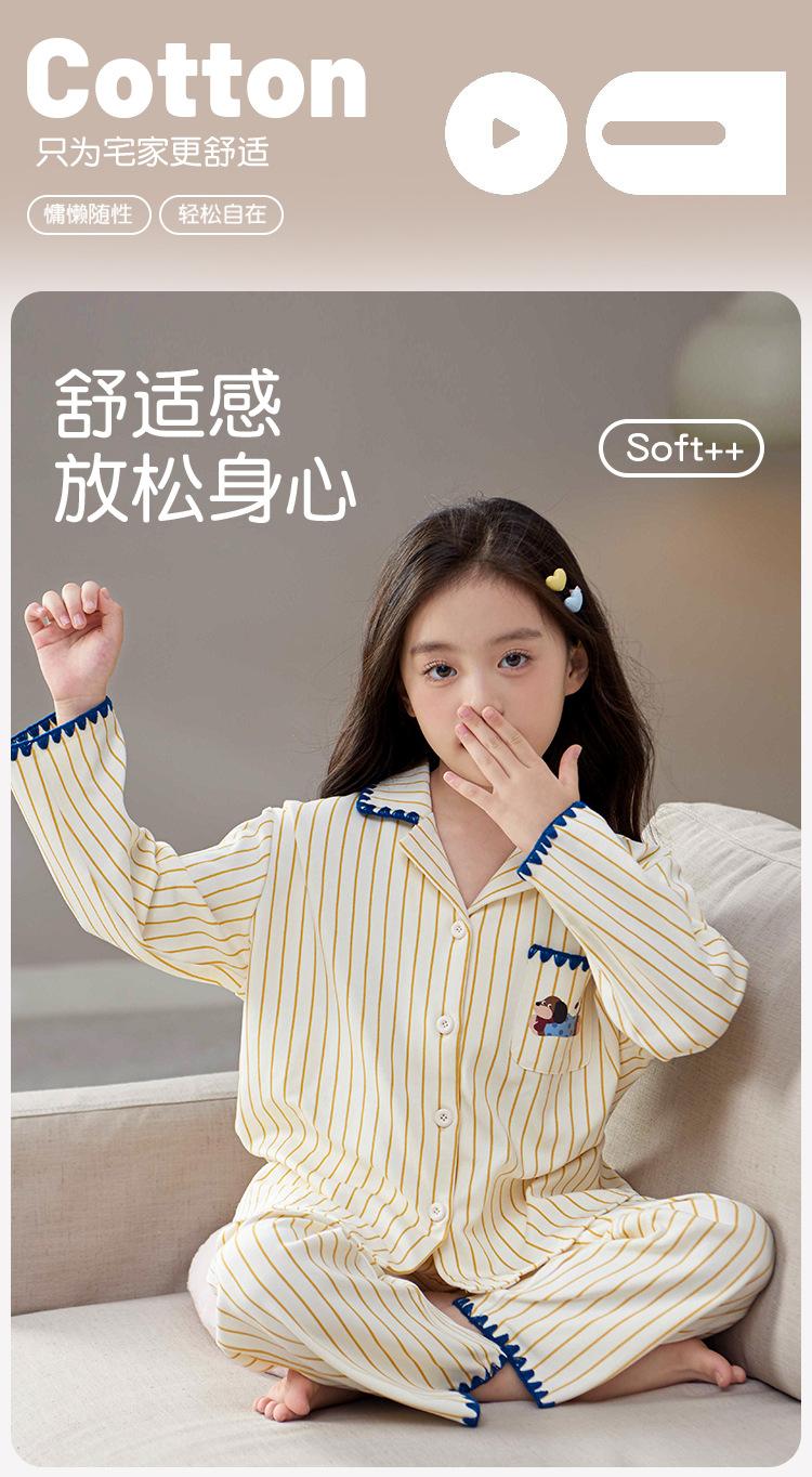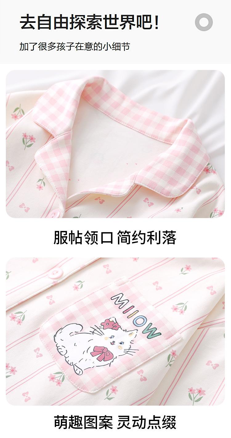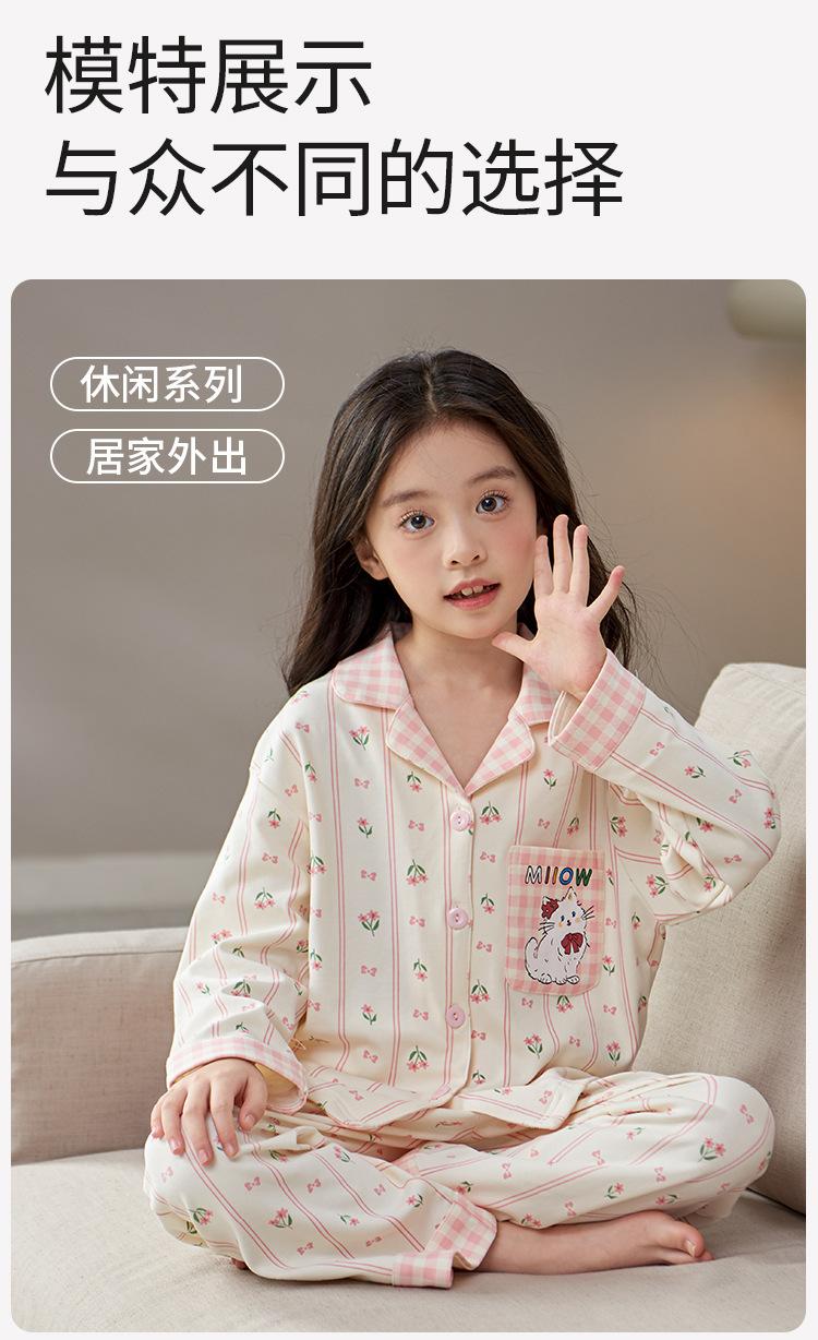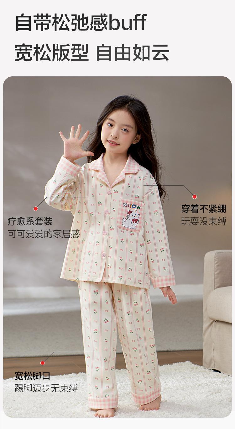 Pijamas para niños nuevo otoño e invierno algodón puro caricatura cuello vuelto cárdigan manga larga pantalones largos niñas pueden usar para salir ropa de casa