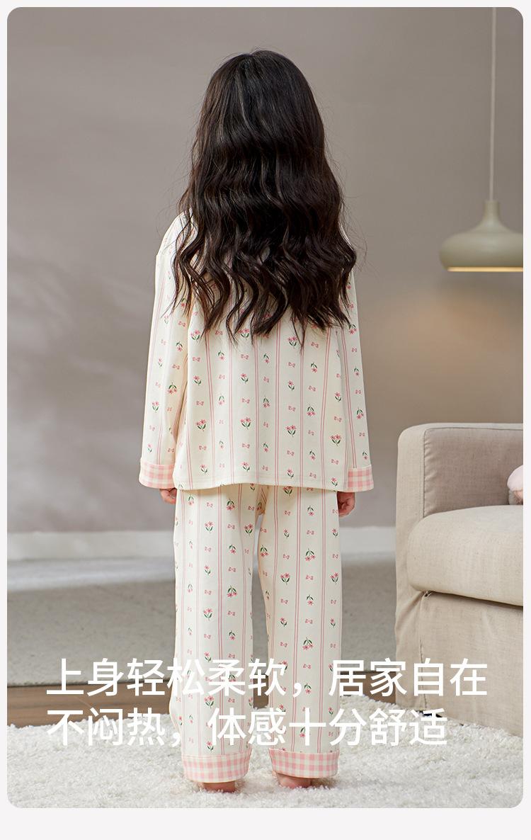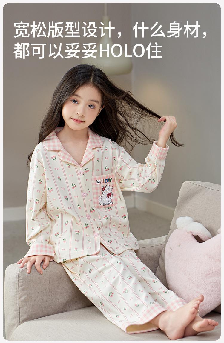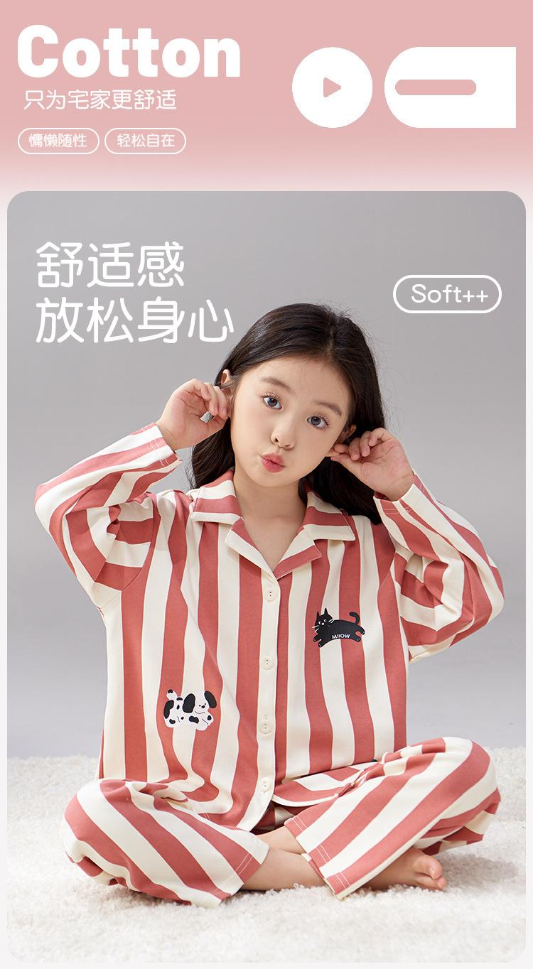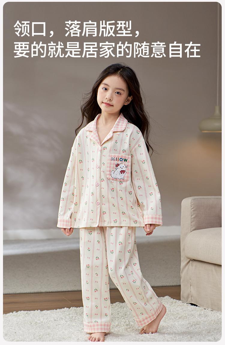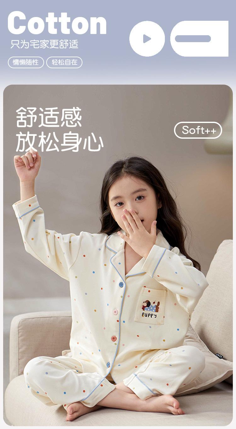 Pijamas para niños nuevo otoño e invierno algodón puro caricatura cuello vuelto cárdigan manga larga pantalones largos niñas pueden usar para salir ropa de casa