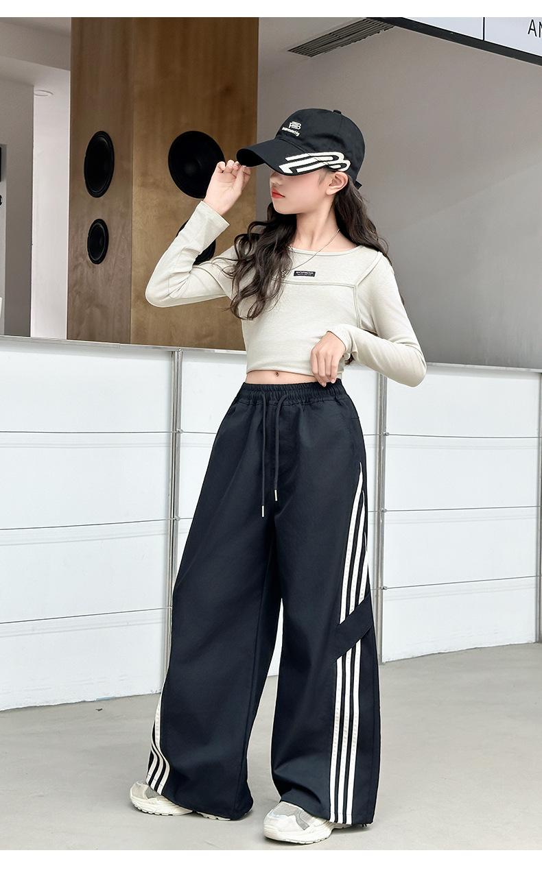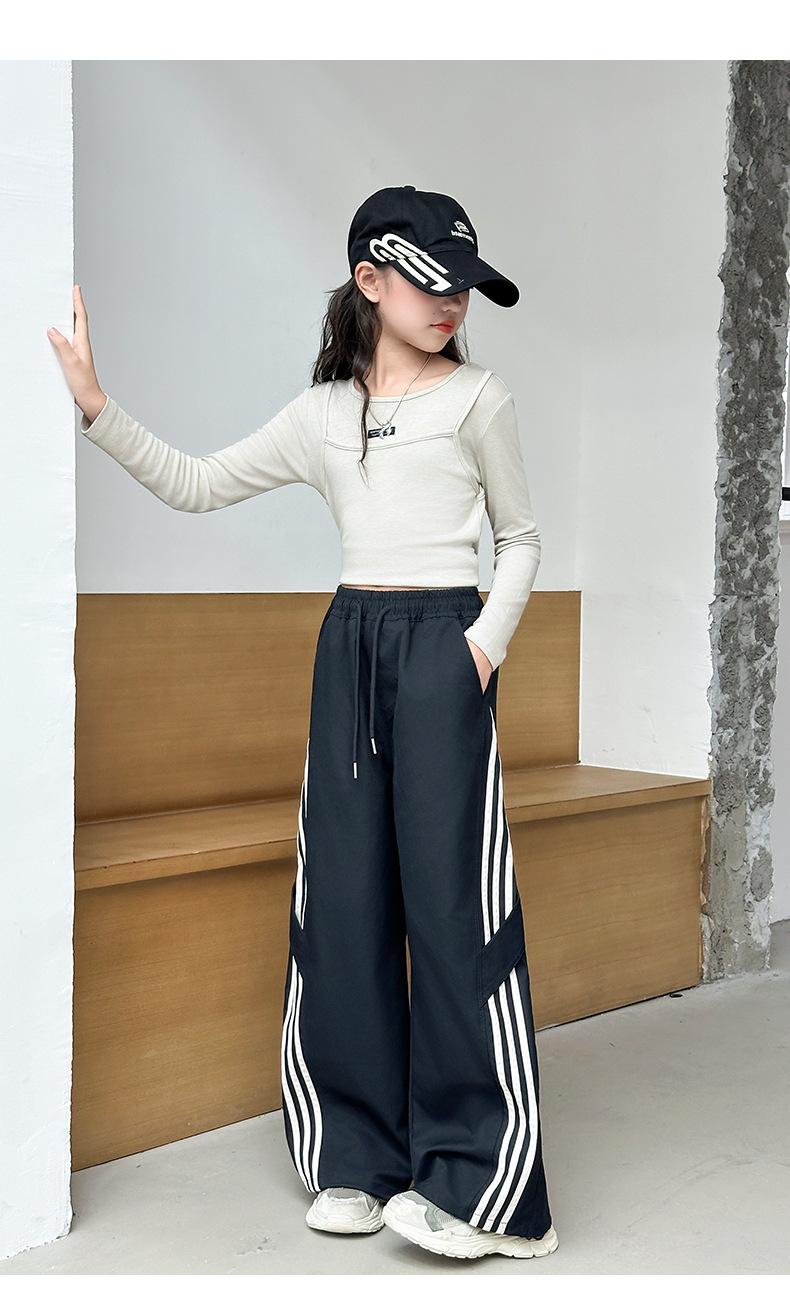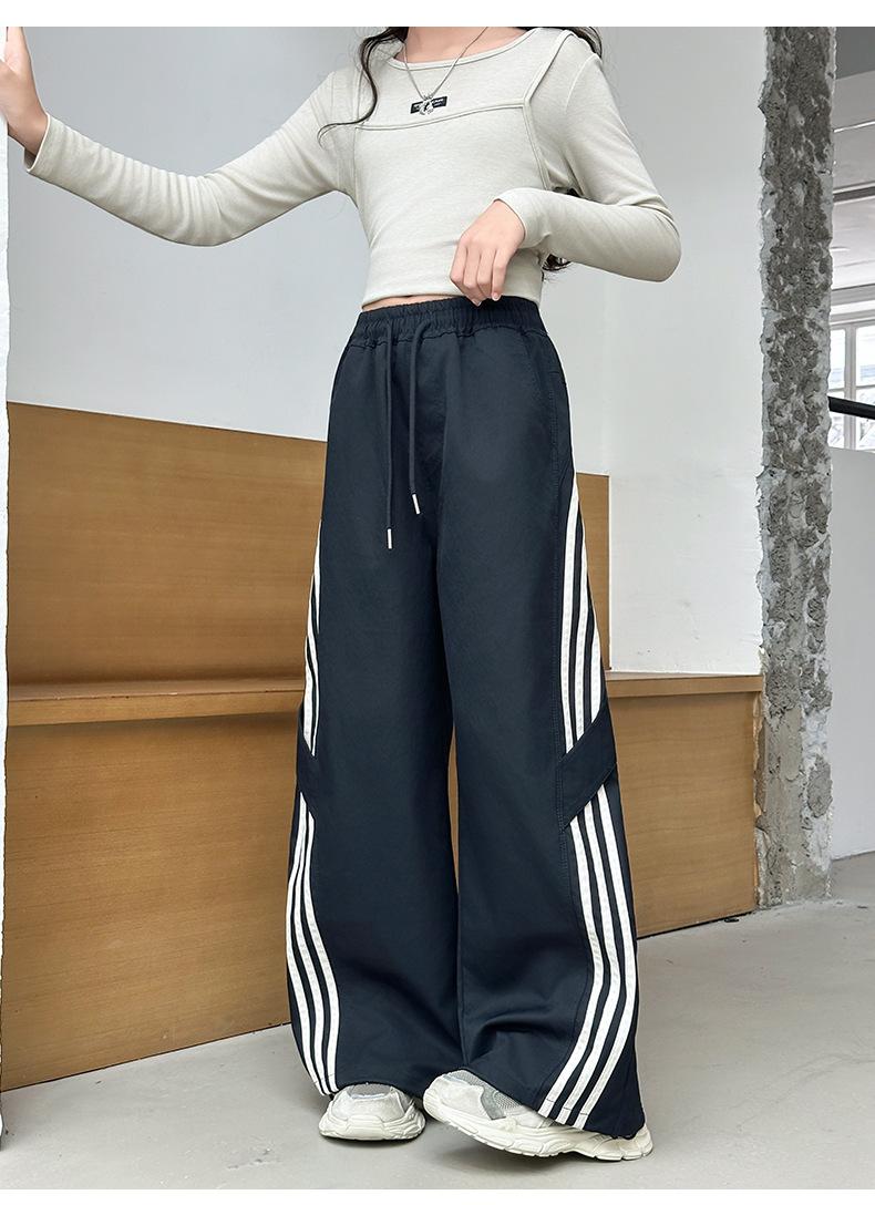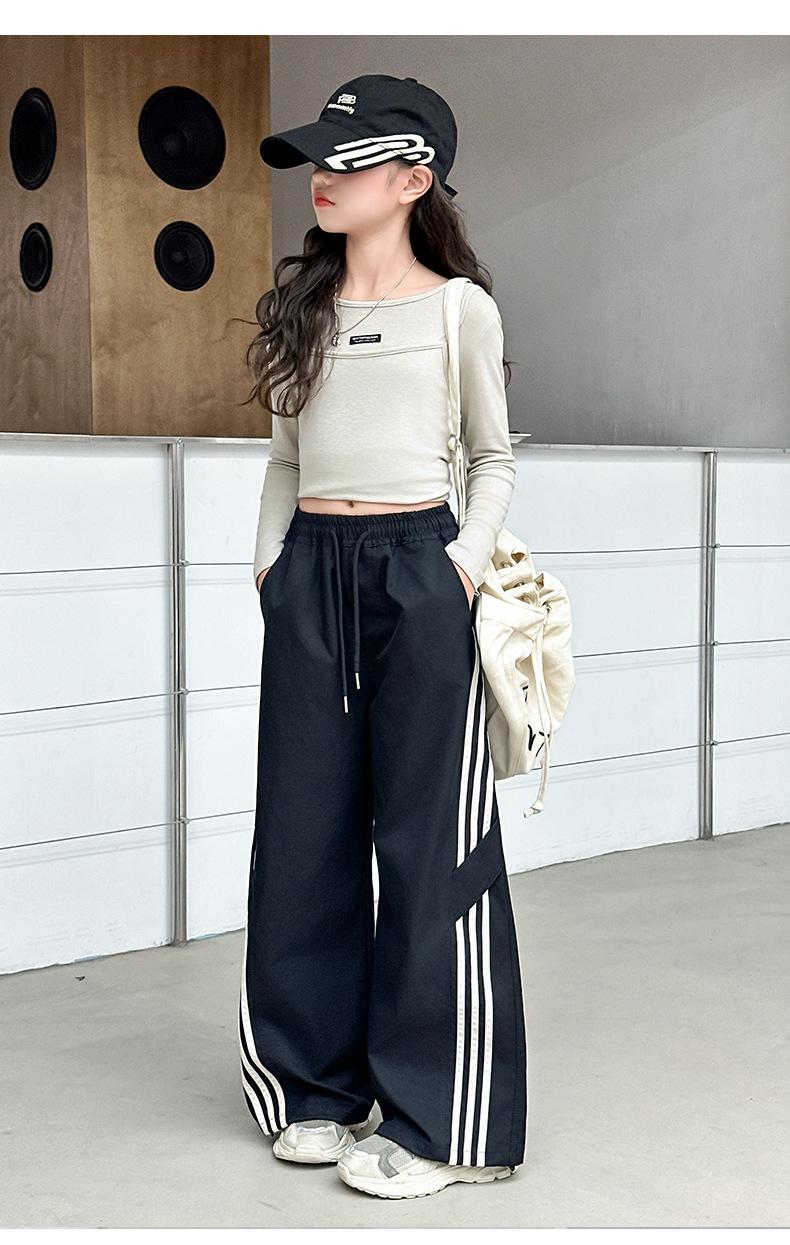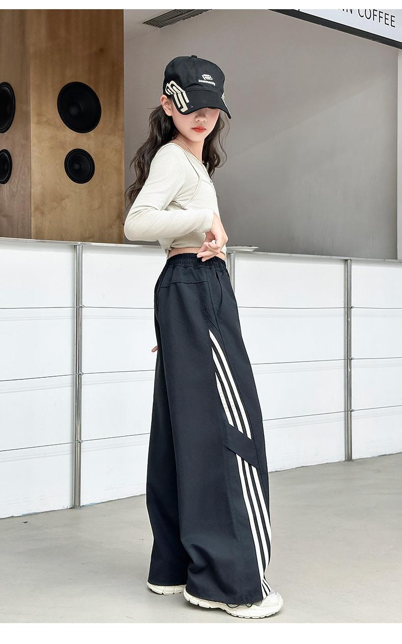 Pantalones Casuales de Primavera y Otoño para Niñas 2025 Nueva Moda Niña Estilo Coreano Niños Grandes Estilo Extranjero Pantalones de Pierna Ancha con Franja Lateral