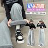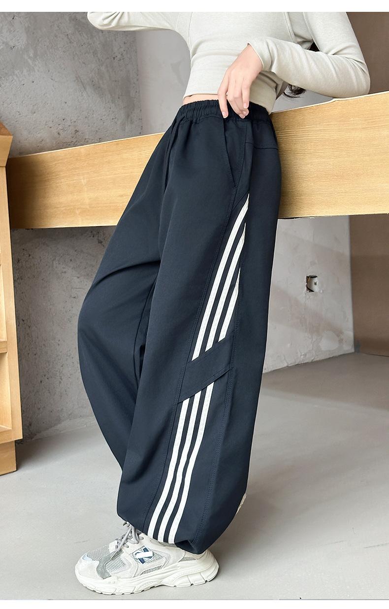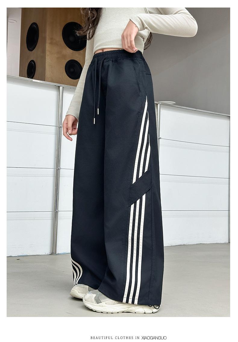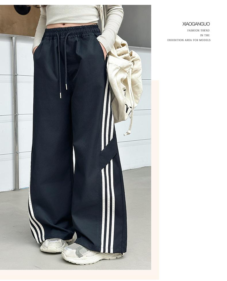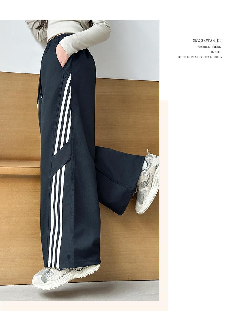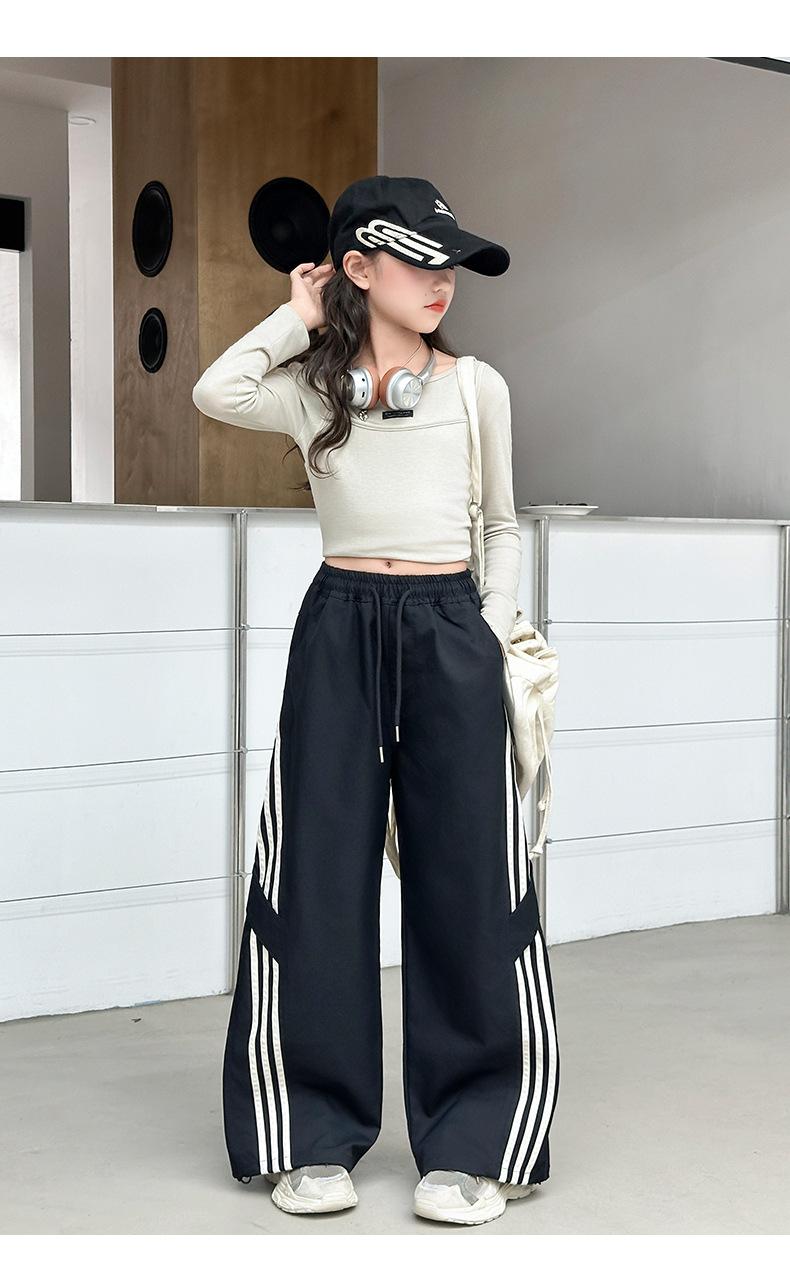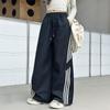 Pantalones Casuales de Primavera y Otoño para Niñas 2025 Nueva Moda Niña Estilo Coreano Niños Grandes Estilo Extranjero Pantalones de Pierna Ancha con Franja Lateral