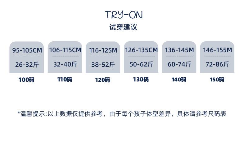 100cm, 110cm, 120cm, 130cm, 140cm, 150cm