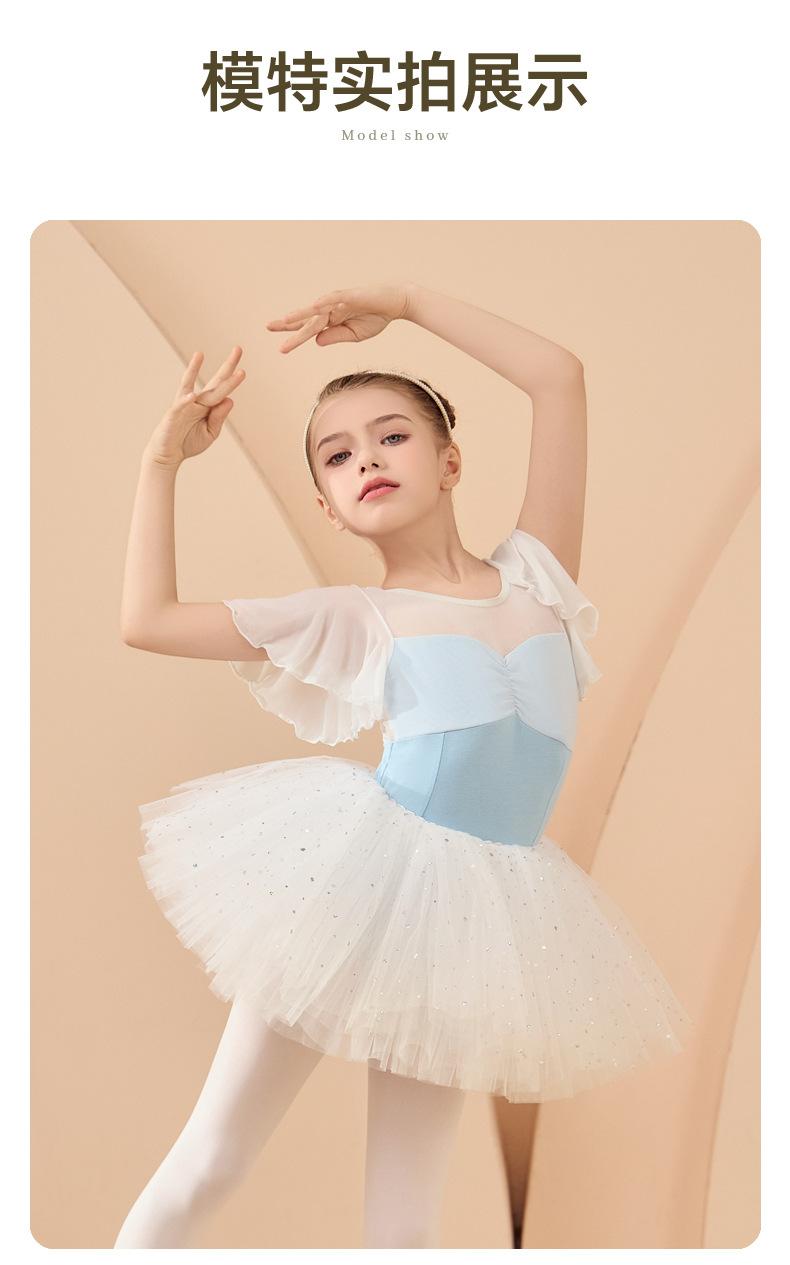 Ropa de Danza Infantil Verano Sin Mangas Algodón Puro Encaje Ropa de Práctica para Niñas Ballet para Niñas Falda de Tul con Lentejuelas Danza China