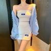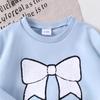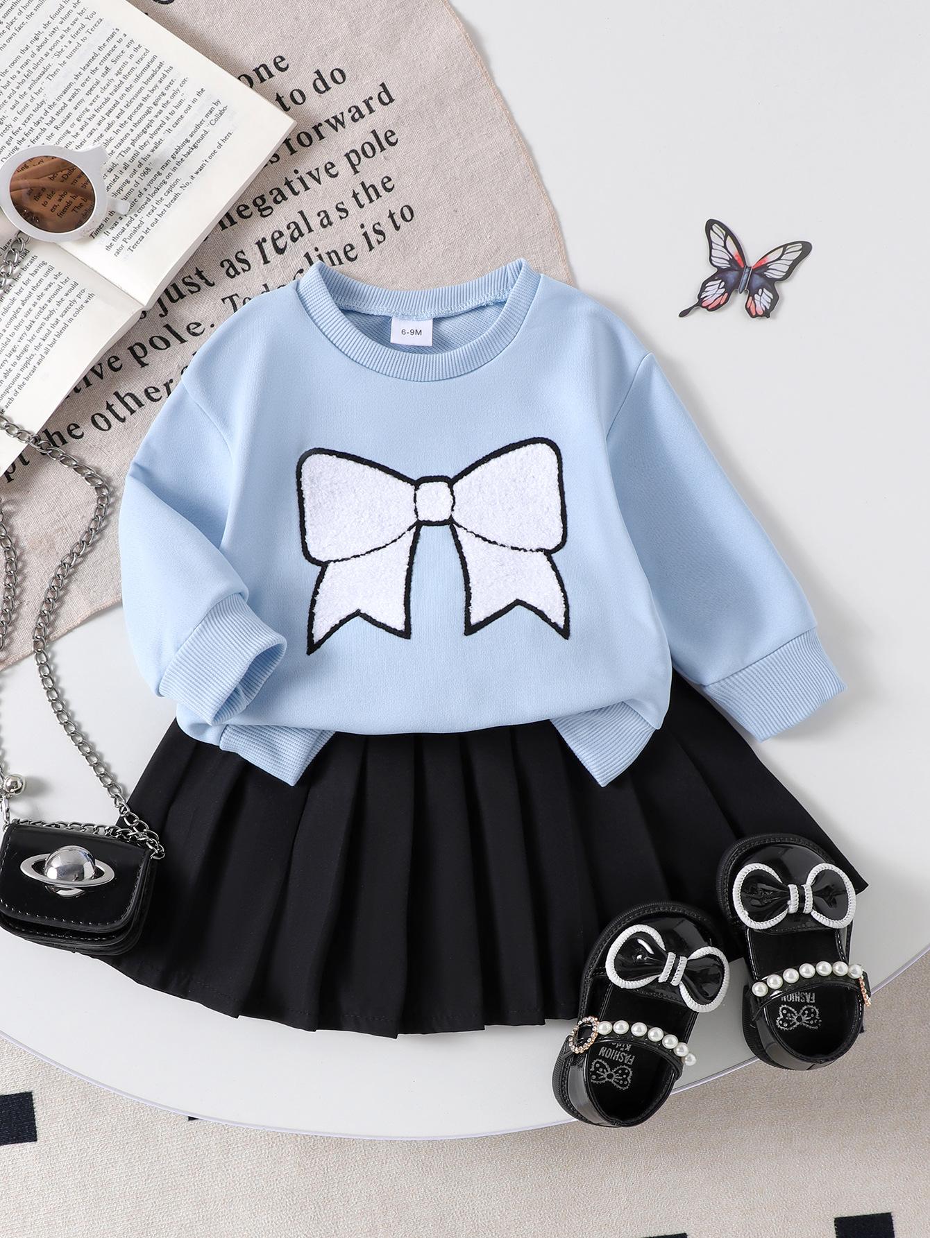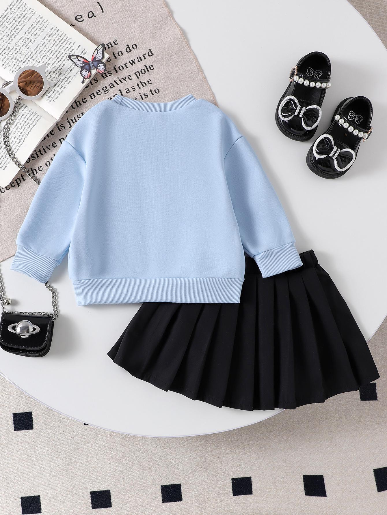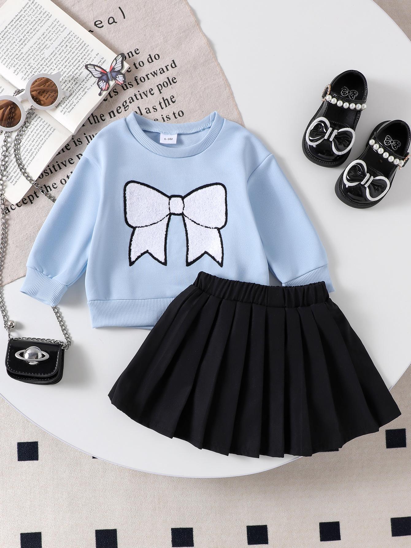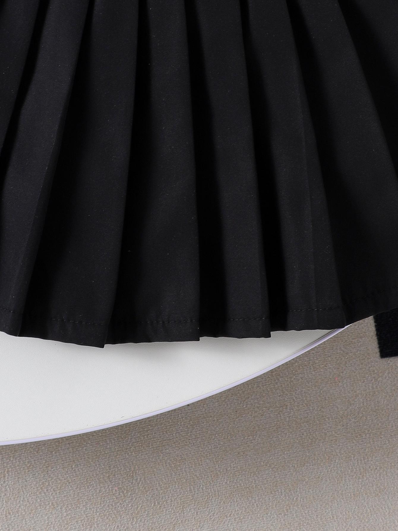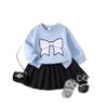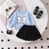 25 Otoño nuevo de venta caliente transfronterizo Falda plisada flocado de lazo lindo europeo y americano Conjunto deportivo de dos piezas