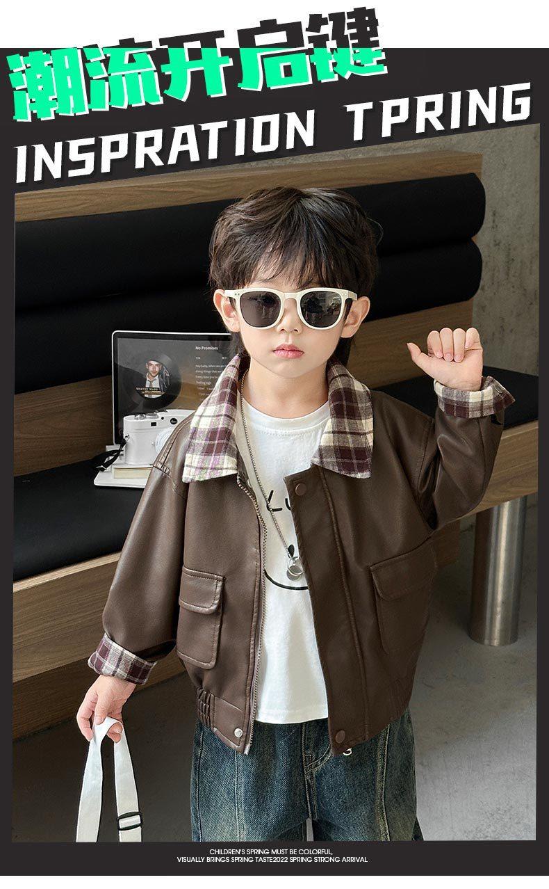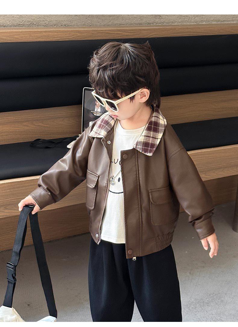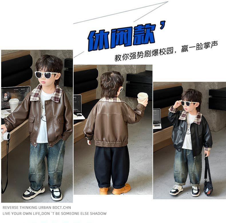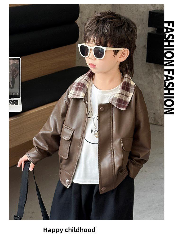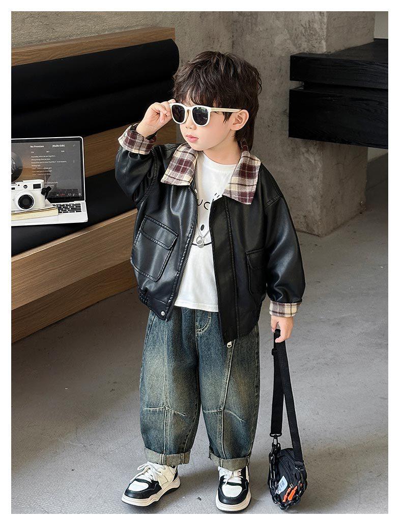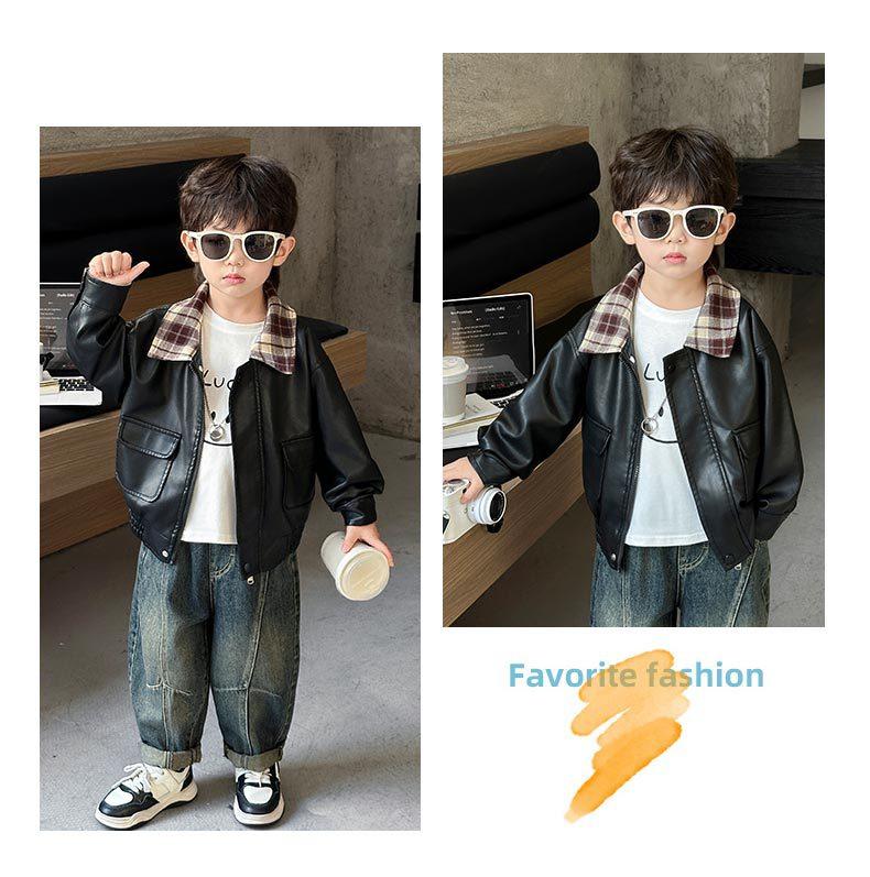 Chaqueta de Cuero para Niño Otoño 2025 Nuevo Estilo Chaqueta Infantil Cool Top Moda Bebé Niño Primavera y Otoño Uniforme de Béisbol