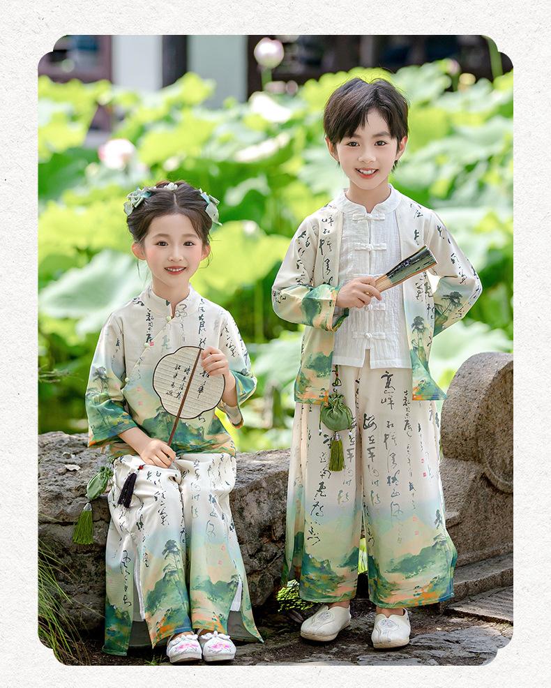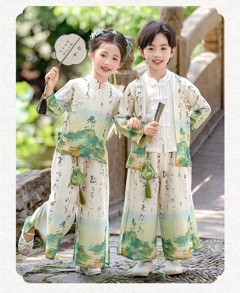 Niños y niñas estilo primavera y otoño Hanfu disfraz antiguo disfraz chino para presentación infantil traje Tang para estudiantes de primaria ceremonia de apertura disfraz para presentación de Guoxue