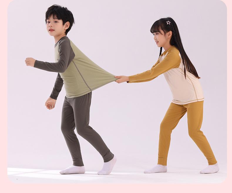 Conjunto de Ropa Interior Cálida para Niños Ropa y Pantalones de Otoño para Niños Patchwork Pijamas para Bebé para Niñas Suéter y Pantalones de Lana Ropa para Niños Pequeños y Medianos