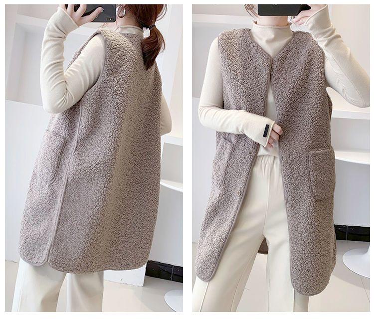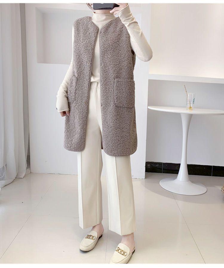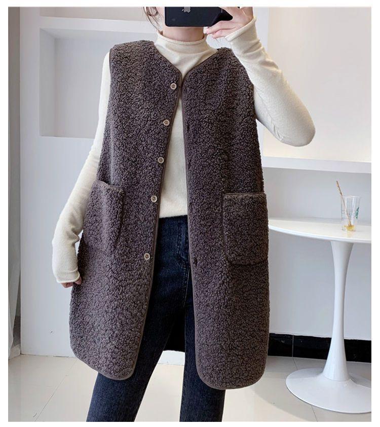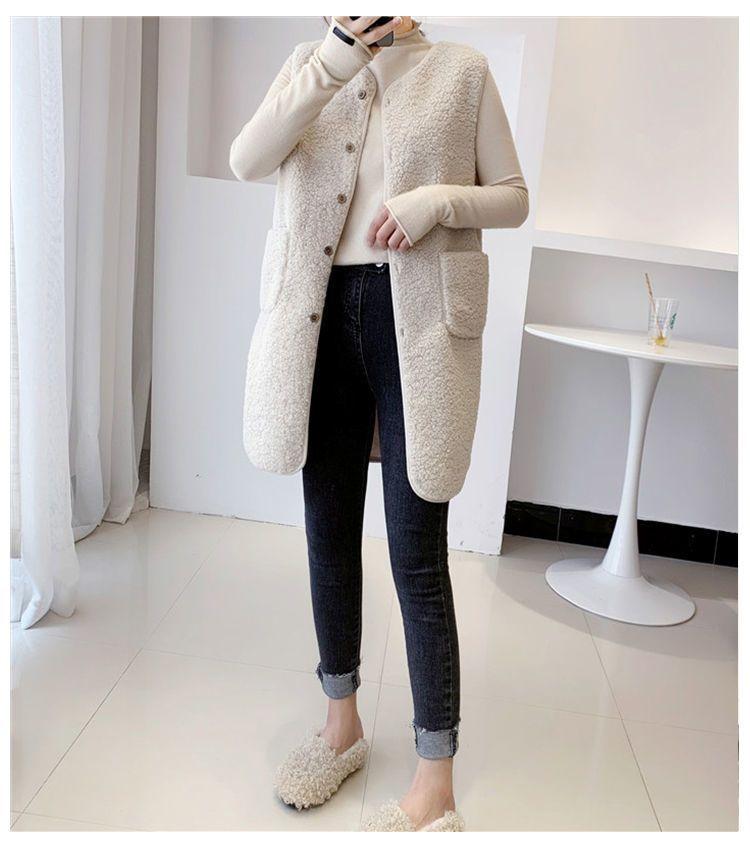 Chaleco abrigo de otoño e invierno de longitud media 2025 nuevo abrigo de piel de una pieza sin mangas chaleco suelto para mujer moderno