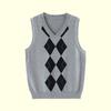 2025 Otoño/Invierno Nuevo Chaleco de Punto a Cuadros Diamante Estilo Universitario Camiseta sin Mangas Chaleco Uniforme Escolar para Estudiante