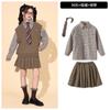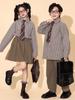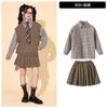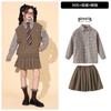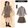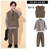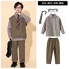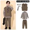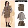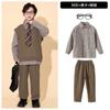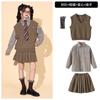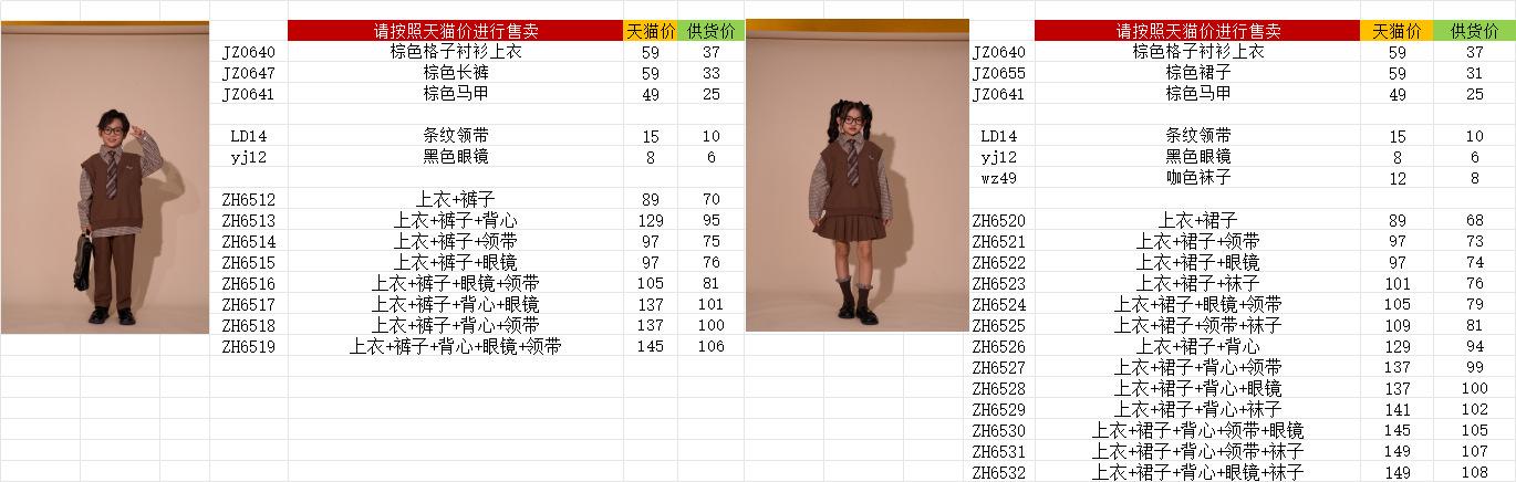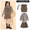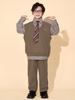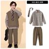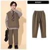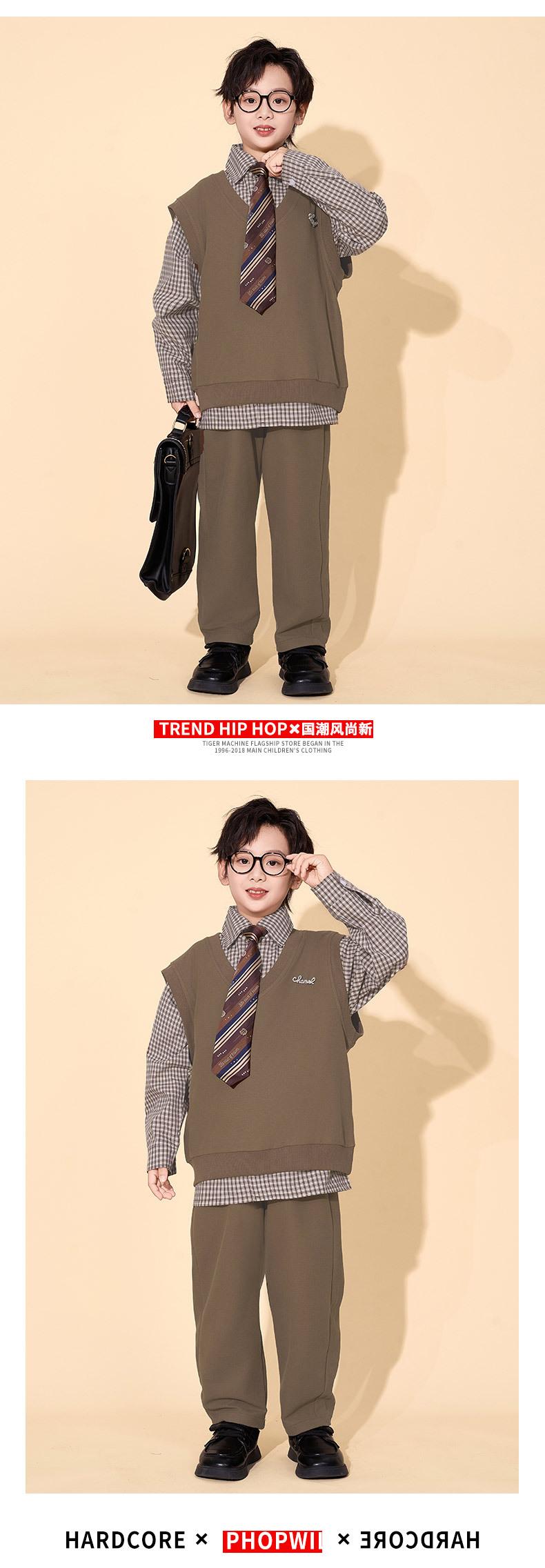 Brown plaid shirt top, Brown trousers, Brown vest, Top + Pants, Top+Pants+Vest, Top+Pants+Tie, Top+Pants+Glass...