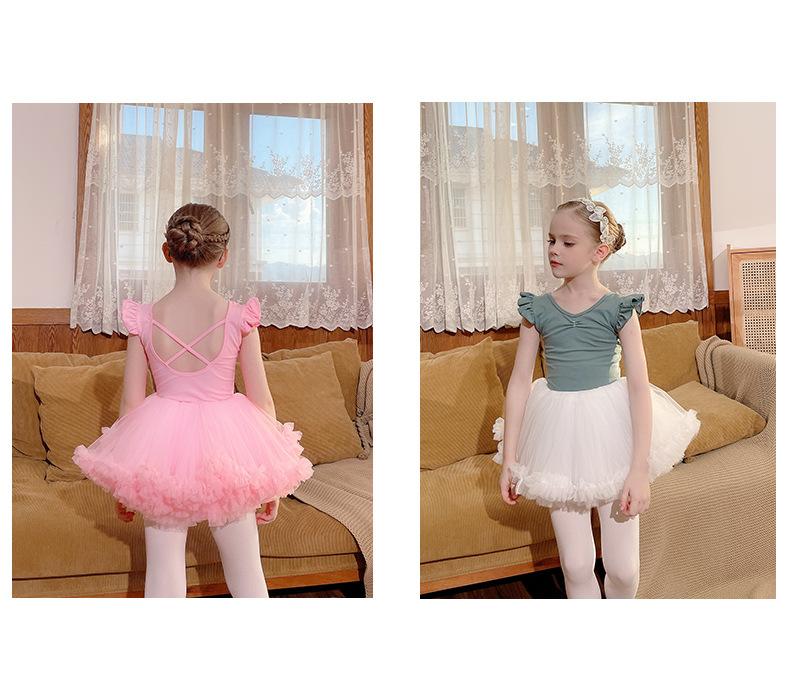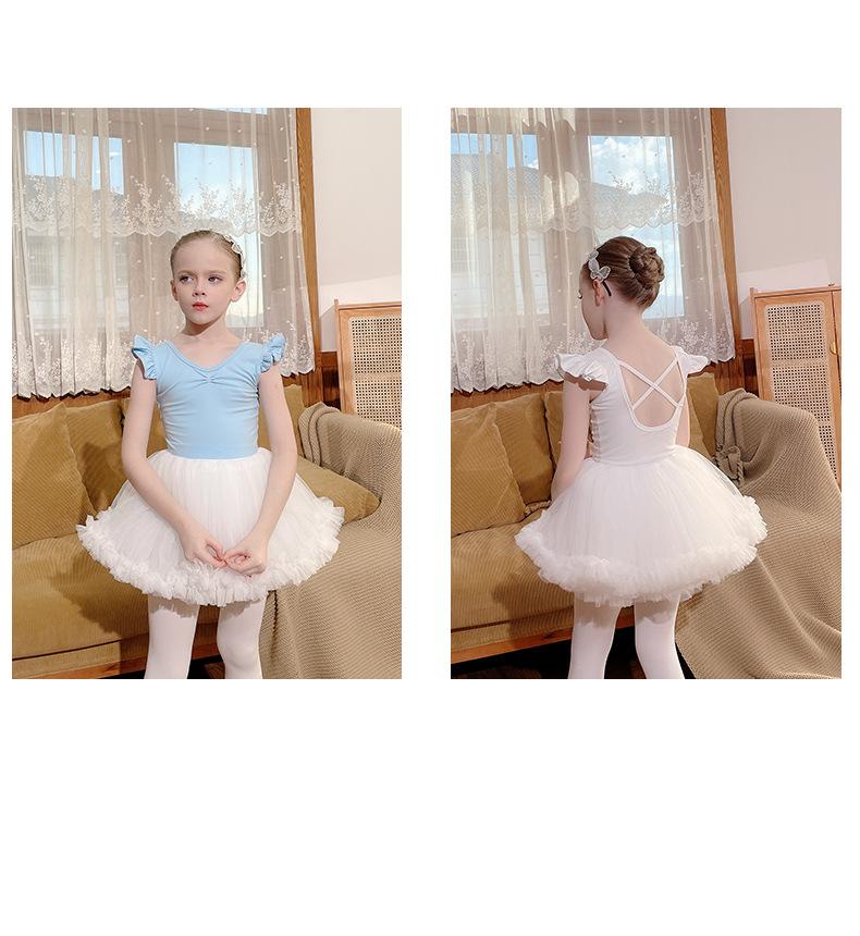 Ropa de Danza para Niñas Verano Niñas Algodón Puro Ropa de Práctica Set Manga Corta Examen Danza China Falda de Ballet Ropa de Práctica