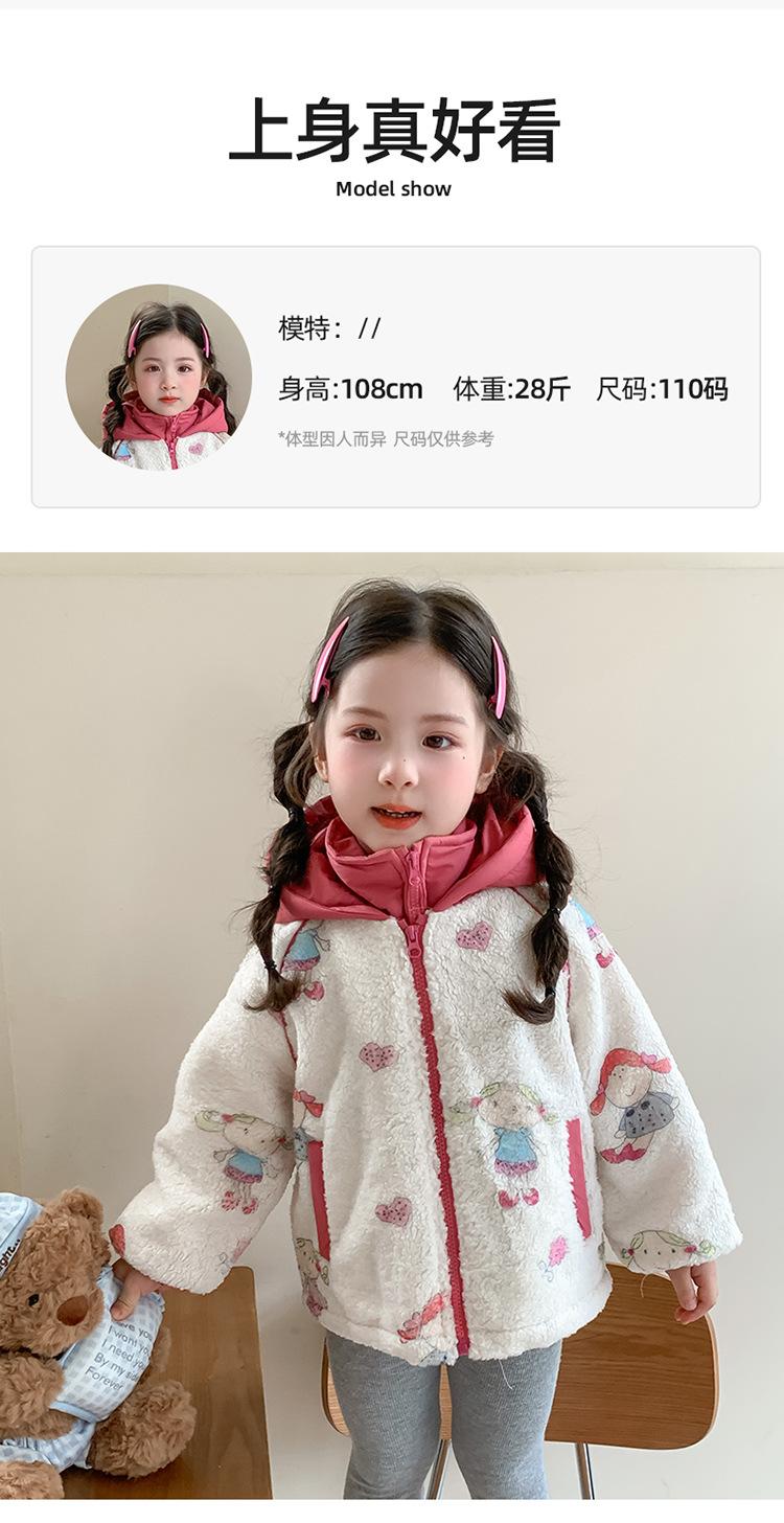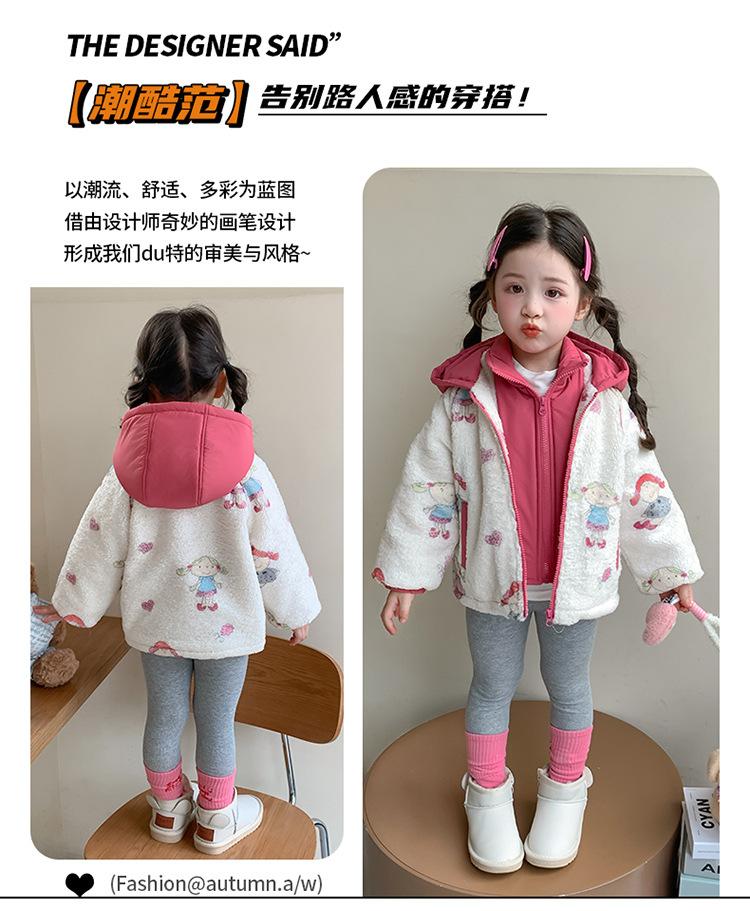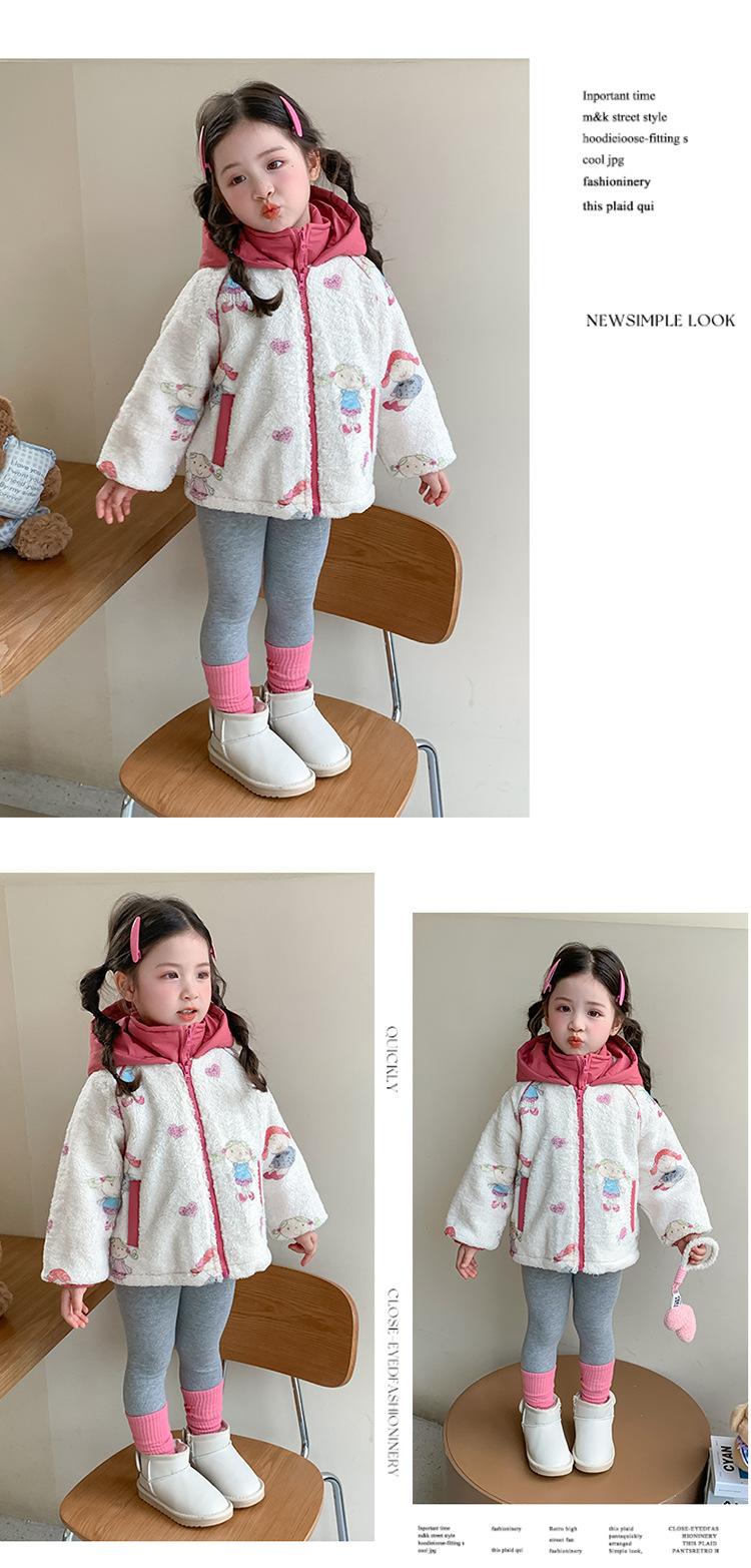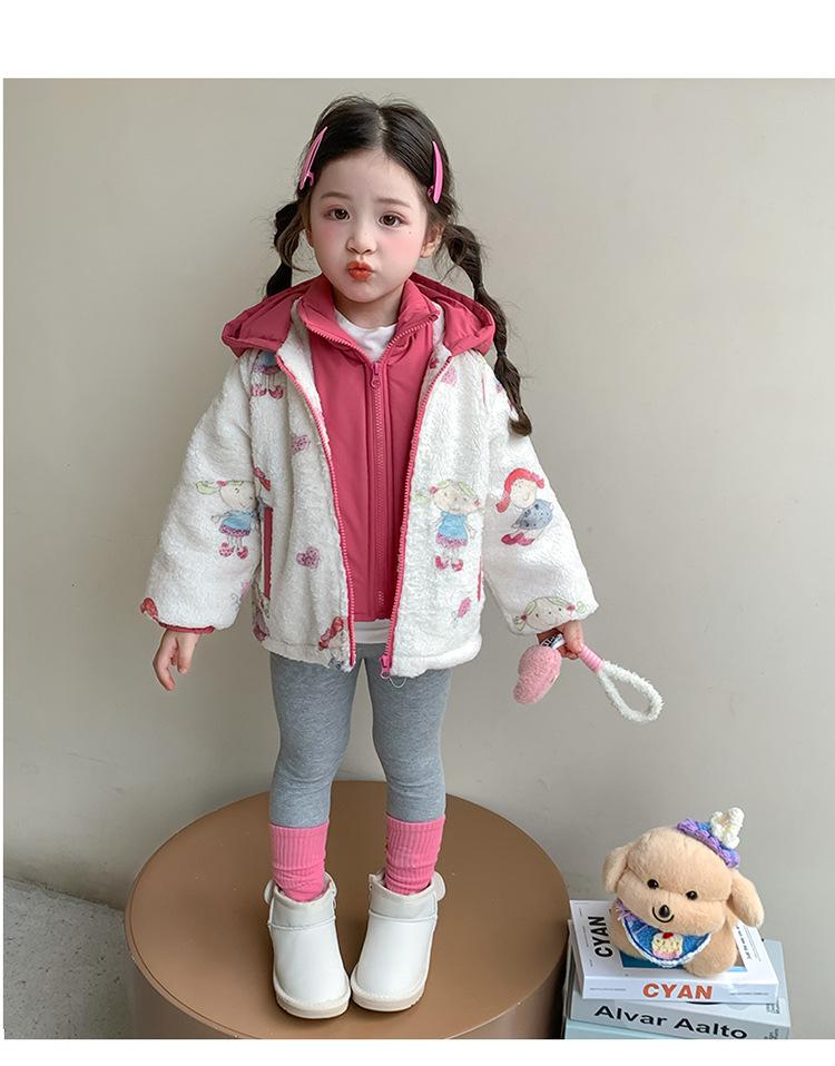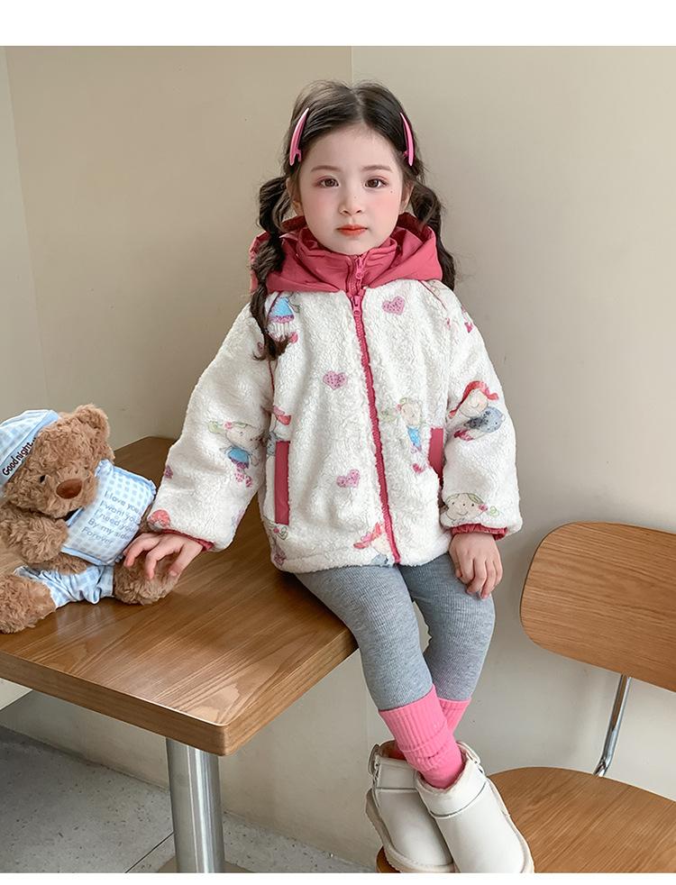 Abrigo de Felpa para Niñas con Forro Polar y Engrosamiento, Moderno, con Capucha de Dibujos Animados, Ropa de Invierno para Niños, Top Cálido de Lana de Cordero para Bebé Niña