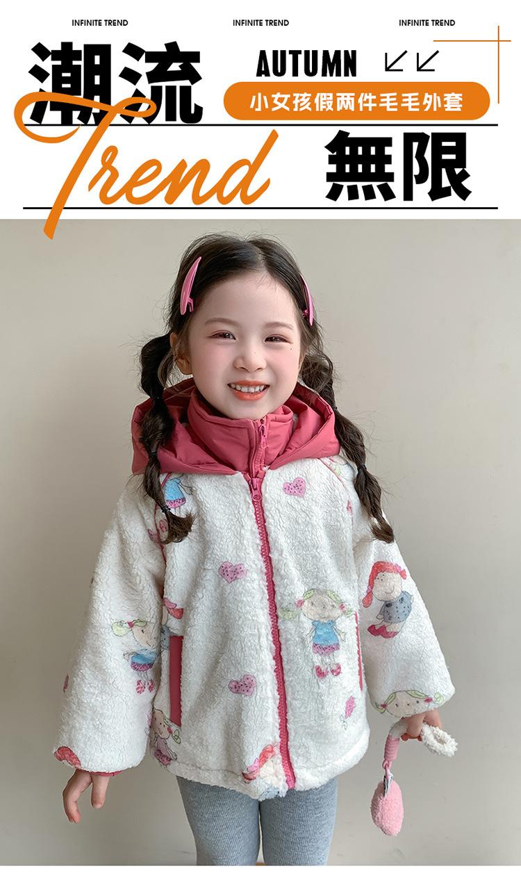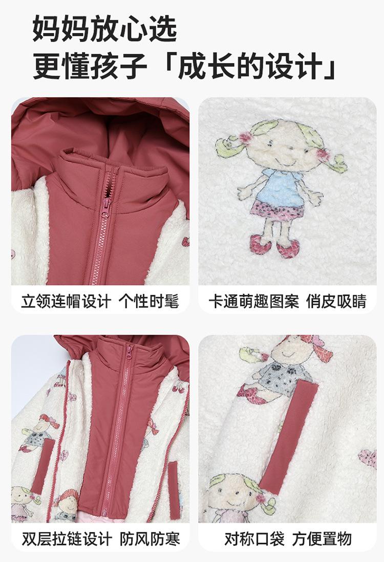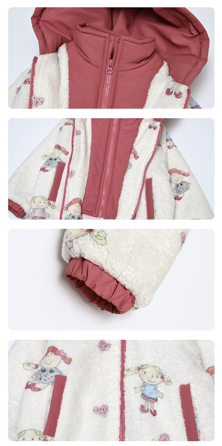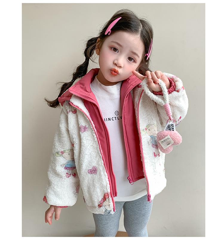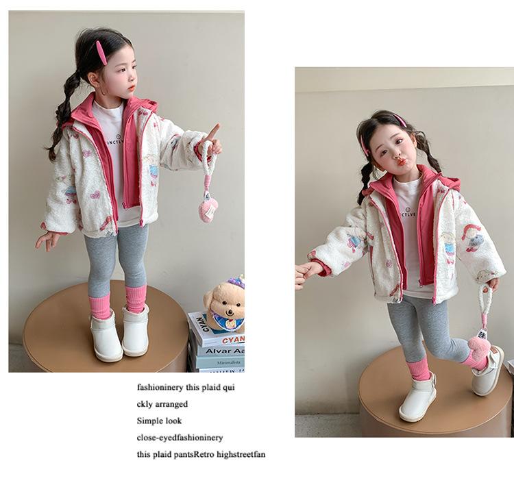 Abrigo de Felpa para Niñas con Forro Polar y Engrosamiento, Moderno, con Capucha de Dibujos Animados, Ropa de Invierno para Niños, Top Cálido de Lana de Cordero para Bebé Niña