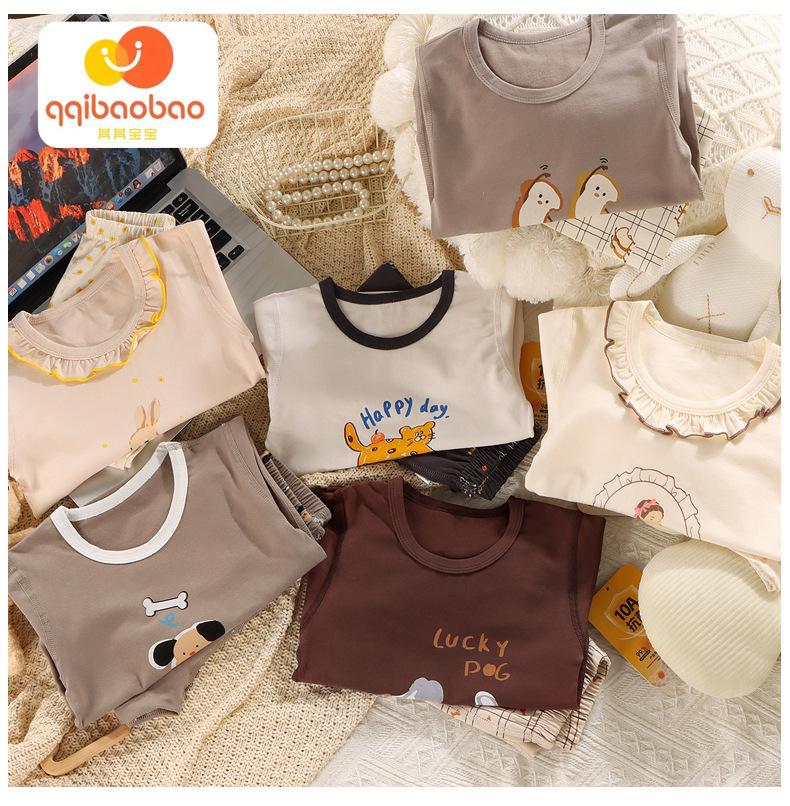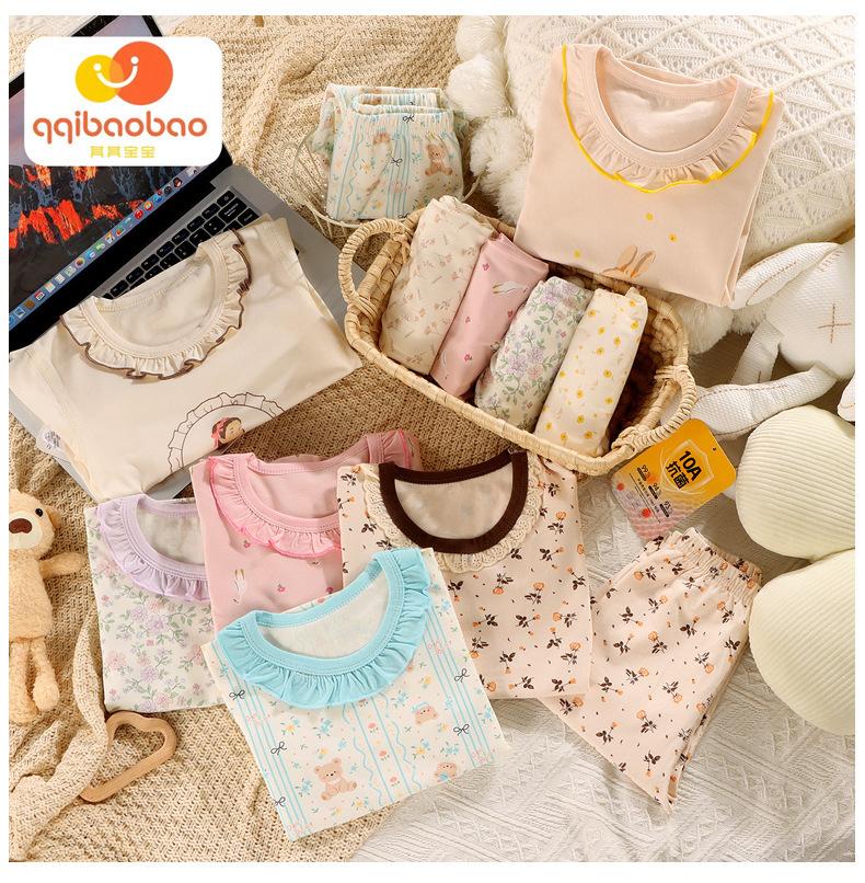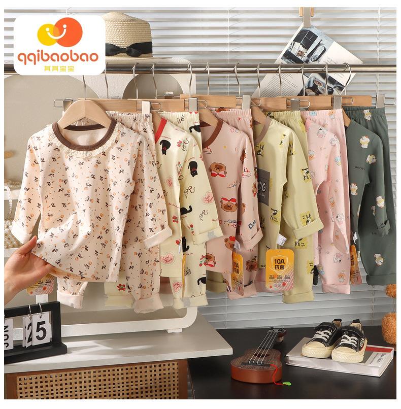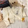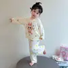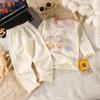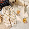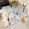 Conjunto de Algodón Puro para Niños Ropa de Otoño de Dibujos Animados para Niñas Pantalones de Otoño Ropa de Casa Pijama de Manga Larga para Bebés Niños Niñas Traje para Aire Acondicionado
