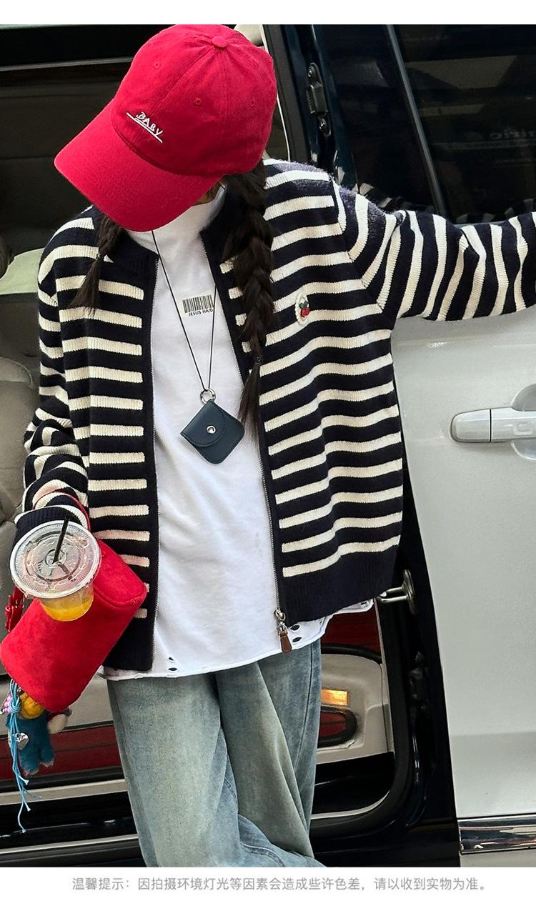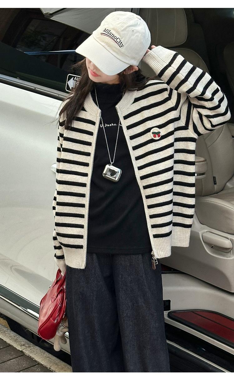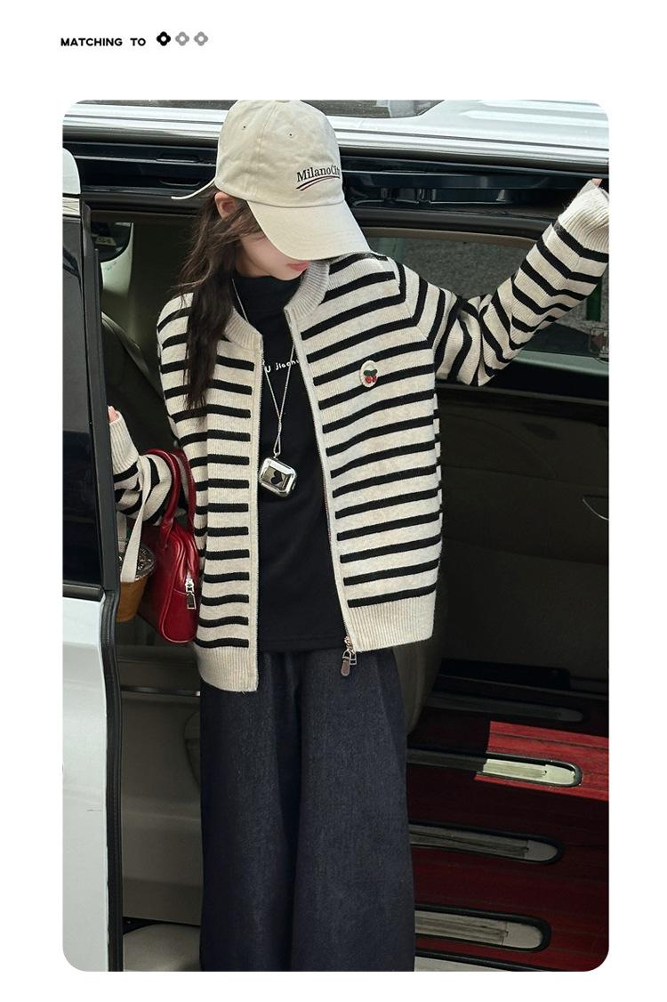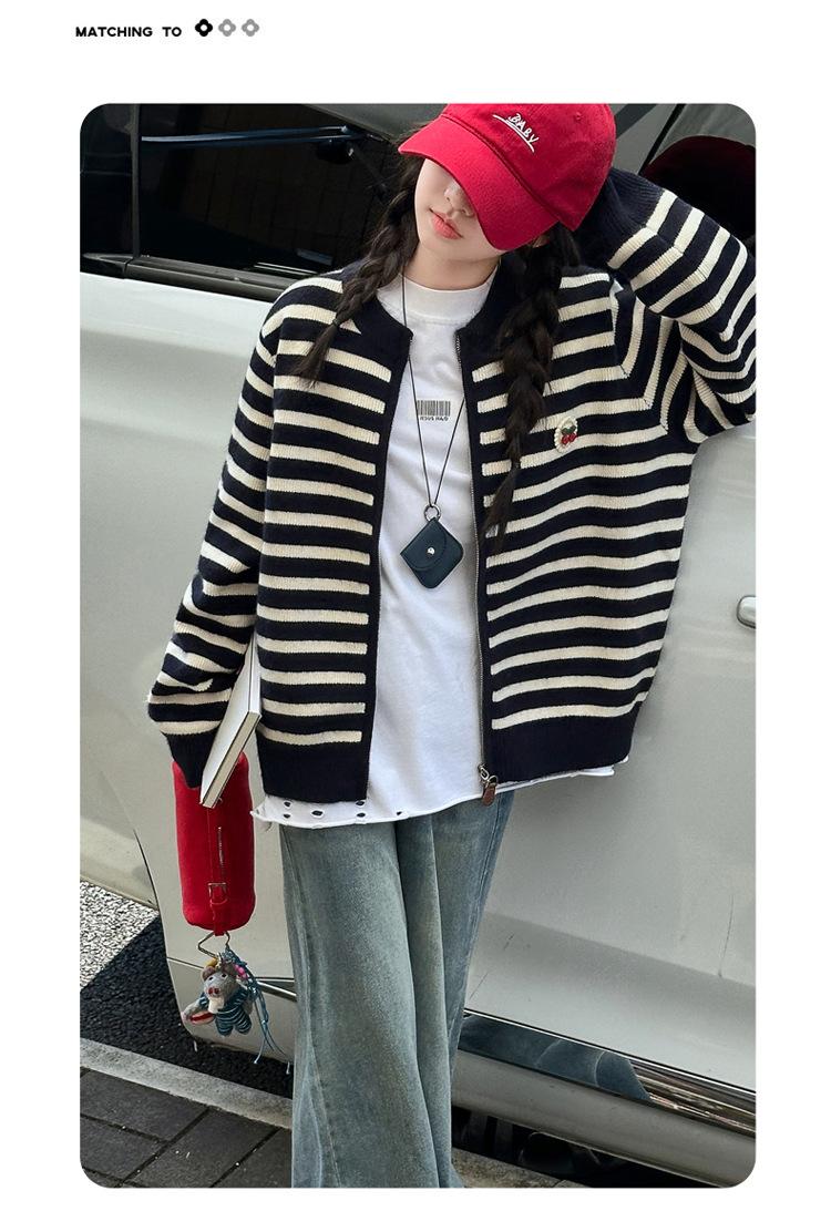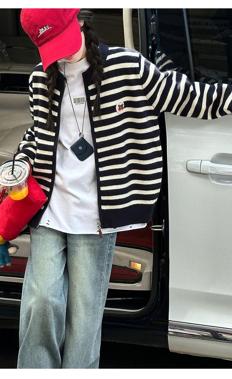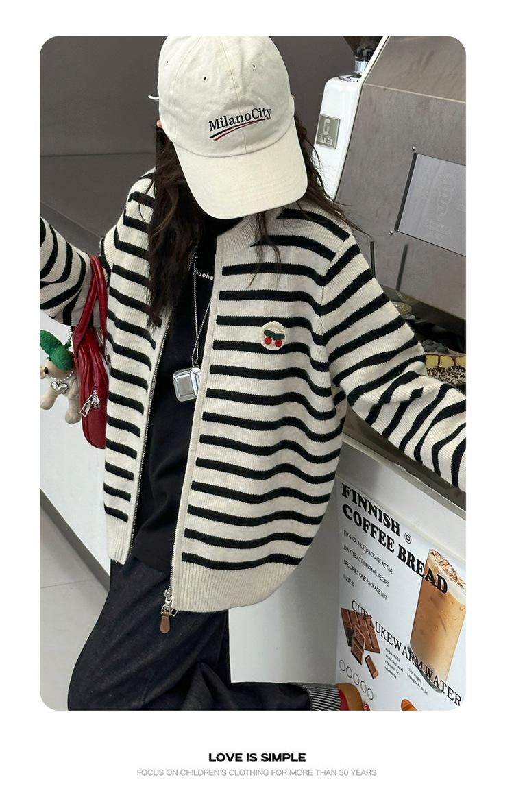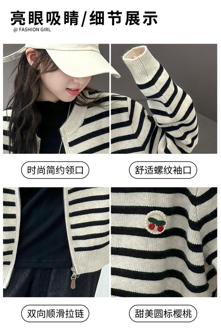 Abrigo para niña estilo primavera y otoño 2025 nuevo suéter de punto a rayas de moda para niños ropa de otoño para niña top de cuello redondo marea