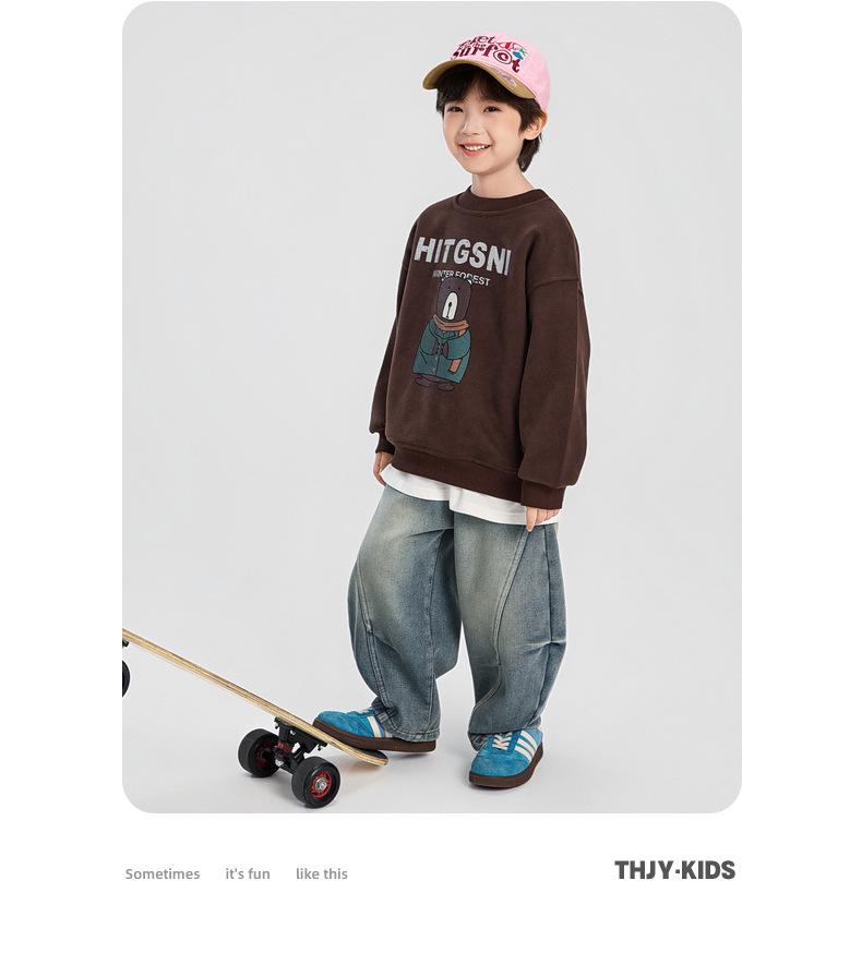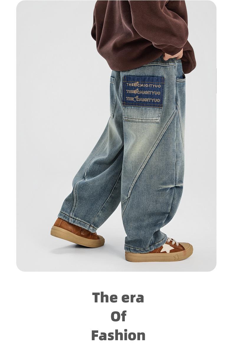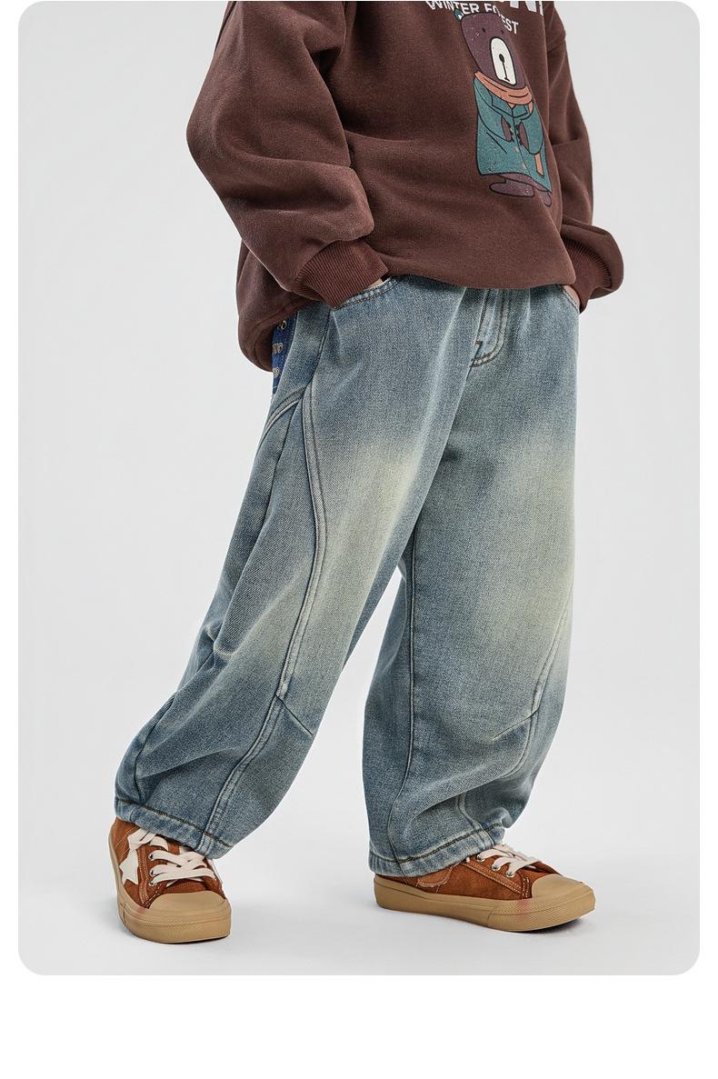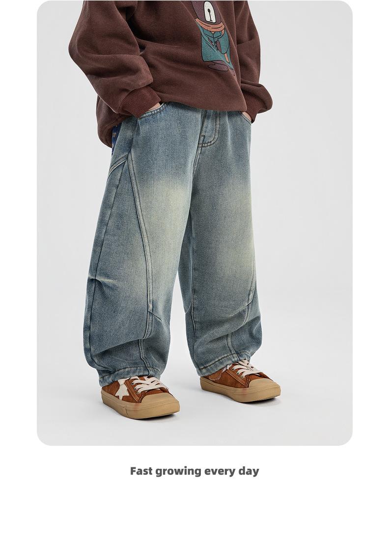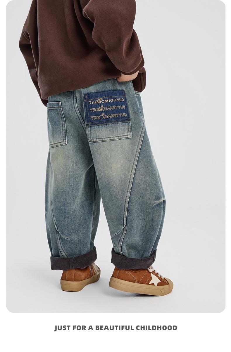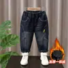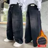 Jeans para niño con forro polar Ropa de invierno 2025 Nuevo estilo de otoño e invierno Niños Medianos a Grandes Niños Engrosado Una pieza Polar Pantalones Largos para Niño