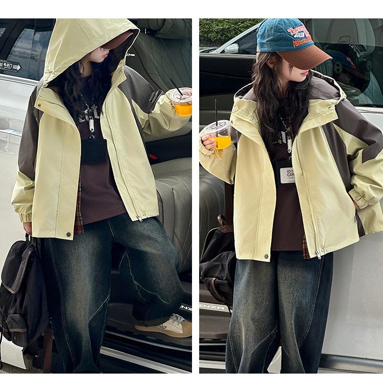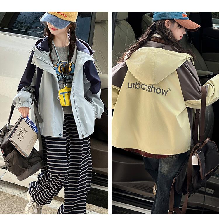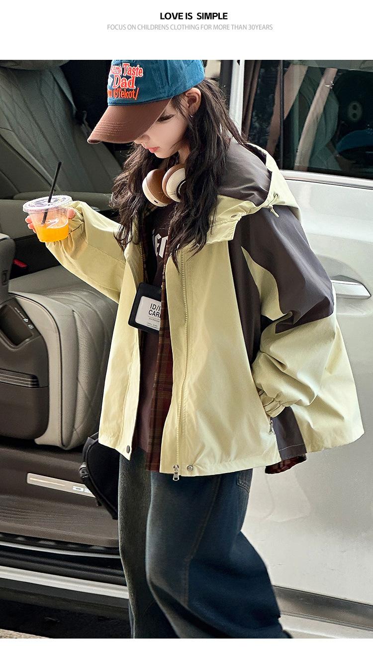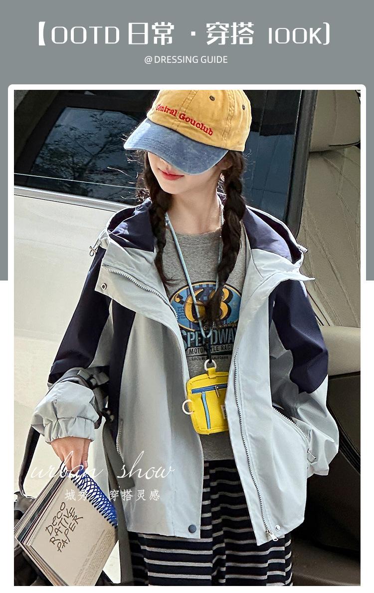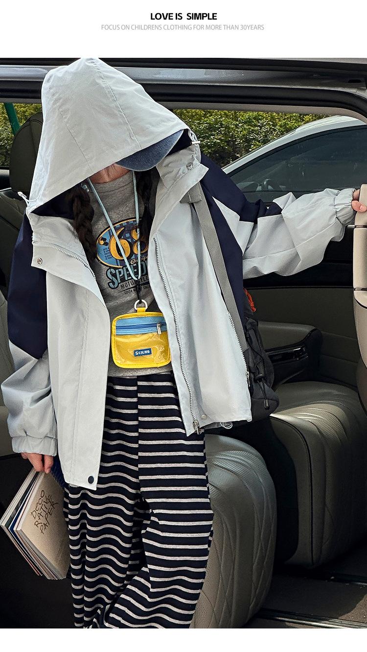 Chaqueta Cortavientos con Capucha para Niños 2025 Primavera Nuevo Estilo Niños Niñas Cortavientos Color Block Gabardina Marea